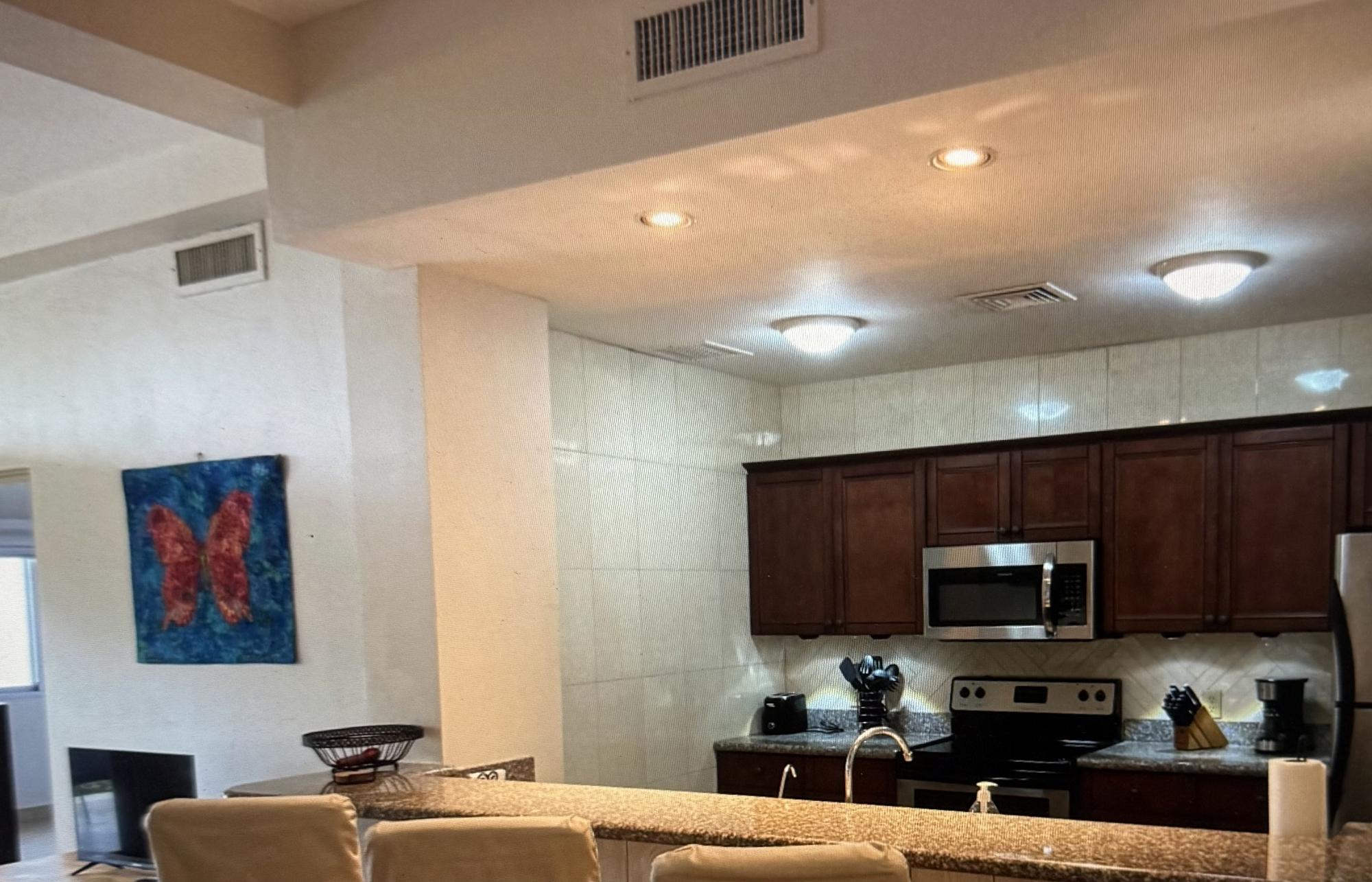 Tucked away on the Pacific Coast of Panama with 15 miles of Beach Front and Volcanic Sandy Beaches is Playa La Barqueta which is also know for their spectacular sunsets and turtle releases. This Condo comes fully furnished and is only 25mins away from David. This Corner unit is located on the first floor (Ground) which makes it very easily accessible from the outside common areas. The very large swimming pool and beach are only a stone through away from your front door. The Pool Deck has many seating areas for you to relax and enjoy. The Condo has a Generous layout of 140M2 (1500ft2). Upon entering the unit, you will walk in the open concept living room dining room area that also has a breakfast bar over looking the kitchen area. You will not be able to keep your eyes off the large sliding glass doors that lead out to your own private terrace where you can relax, bbq or just enjoy the view that never gets old. The Master bedroom has ocean views and a large en-suite with walk in closet. There are two other guest rooms that share a nice size bathroom between them. Your laundry room is off the kitchen, separated by a door.
