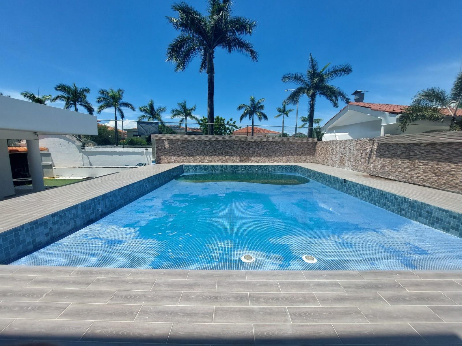 English: Location: Costa del Este, Residencial Begonias Lot size: 972 m2 Construction area: 850 m2 of construction Description: Luxury single-family residence with exclusive finishes. It has a large front patio and a large backyard with a pool. Upstairs: •(1) Spectacular master bedroom that measures approximately 70 m2 and has space for a separate living room, a large private balcony, 2 walk-in closets (one for her and one for him) and a spectacular bathroom. The master bathroom is completely covered in marble and has a whirlpool tub separate from the shower. •(3) Three large secondary bedrooms, each with its own bathroom and walk-in closet. • Very large family room with separate spaces for play and study. Downstairs: • Impressive double-height entrance hall • Large living and dining room • Family den or office • Large family room with a fine custom-made bar, 2 living rooms and an auxiliary dining room. Spectacular wine cellar clad in marble, stone, wood, and onyx. • Modern kitchen with exquisite furnishings • Guest half bathroom • Maid's bedroom and bathroom • Large storage room that can be converted into a second maid's or chauffeur's quarters • Covered laundry room with a second kitchen and breakfast area for service personnel. Also, another uncovered laundry space. • Large covered terraces in three rooms with a built-in bar • Full bathroom for the pool area • Fully fenced pool with its own engine room • Two reserve water tanks with a pumping and water filtration system for the entire house • Large backyard • Front garden • Carport • 3 covered parking spaces