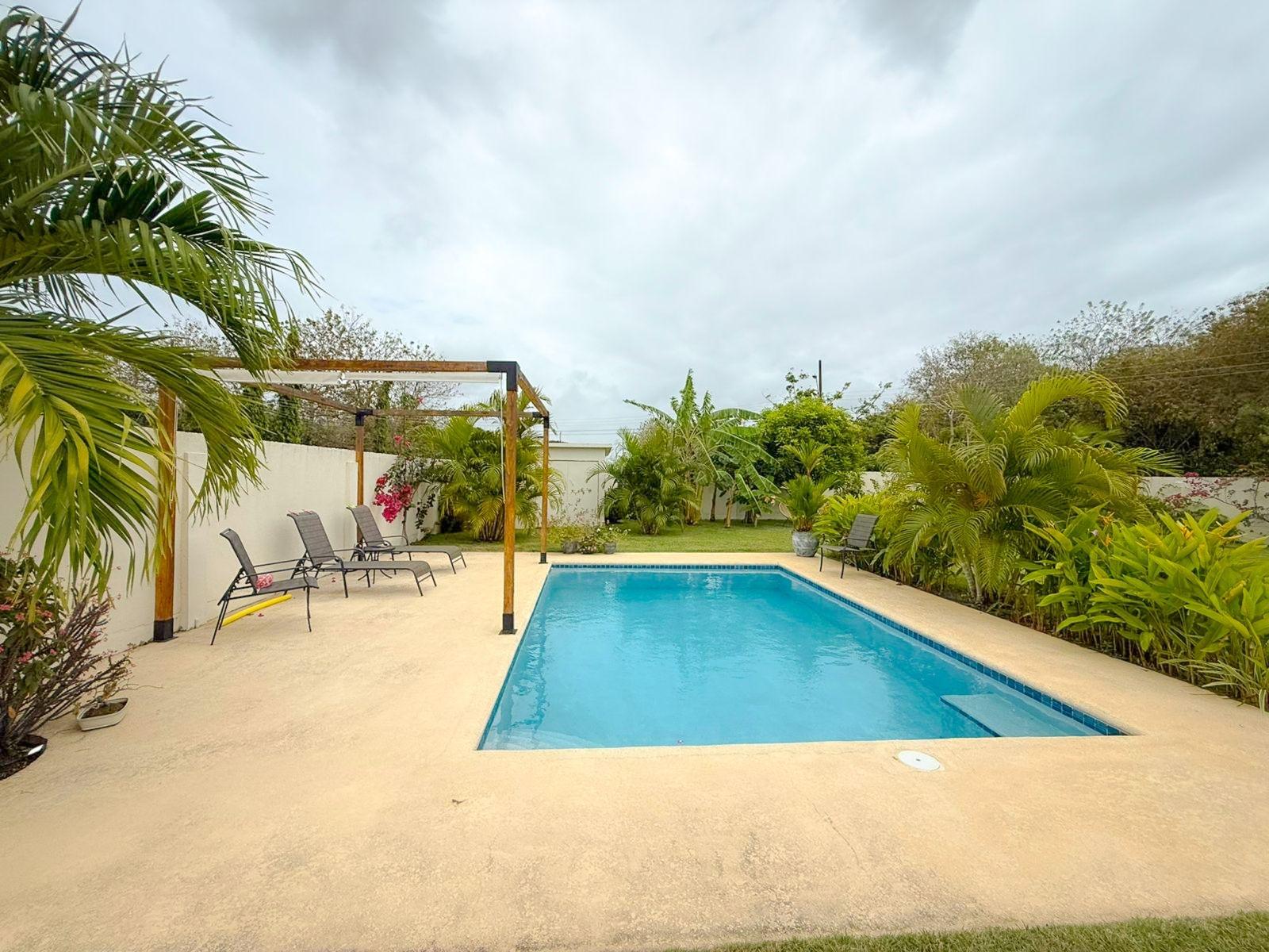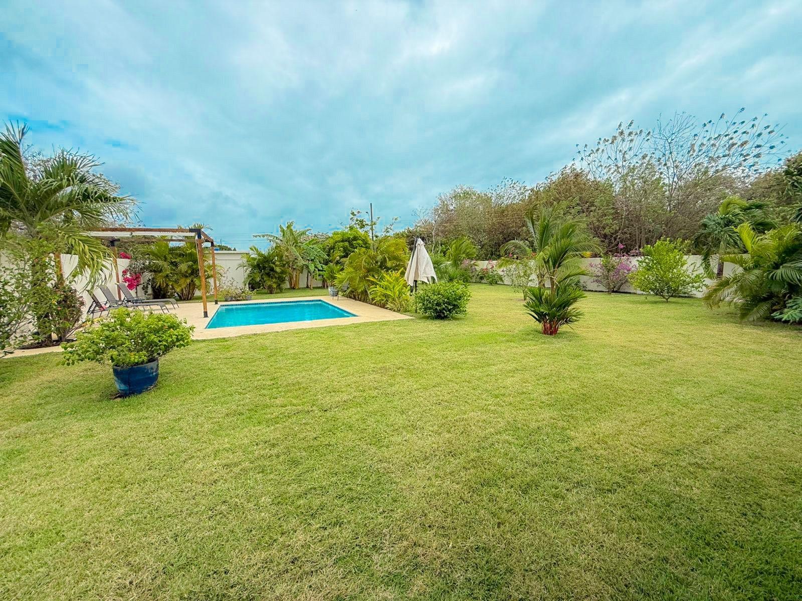 This smart home sits on a 1,000 m² lot with spacious interiors and covered terrace offering comfort, privacy, and functional outdoor living. The property features high ceilings, natural light, a large terrace, water reserve, pool, and a private patio with multiple fruit trees, creating a fresh and natural environment. Located 300m (5 minutes walking) from an international school and just 5 minutes by car from the beach, this home combines space, modern living, and a convenient location—ideal for families seeking a relaxed lifestyle near the coast.