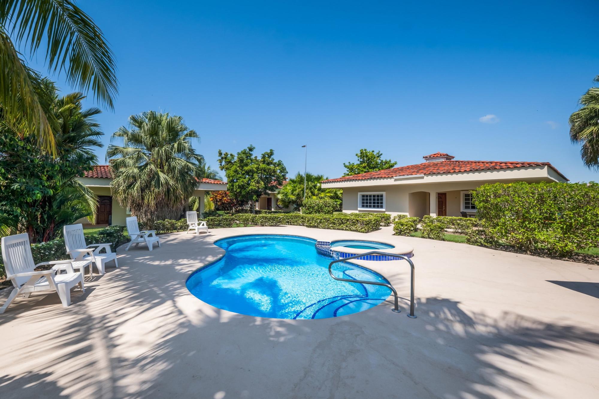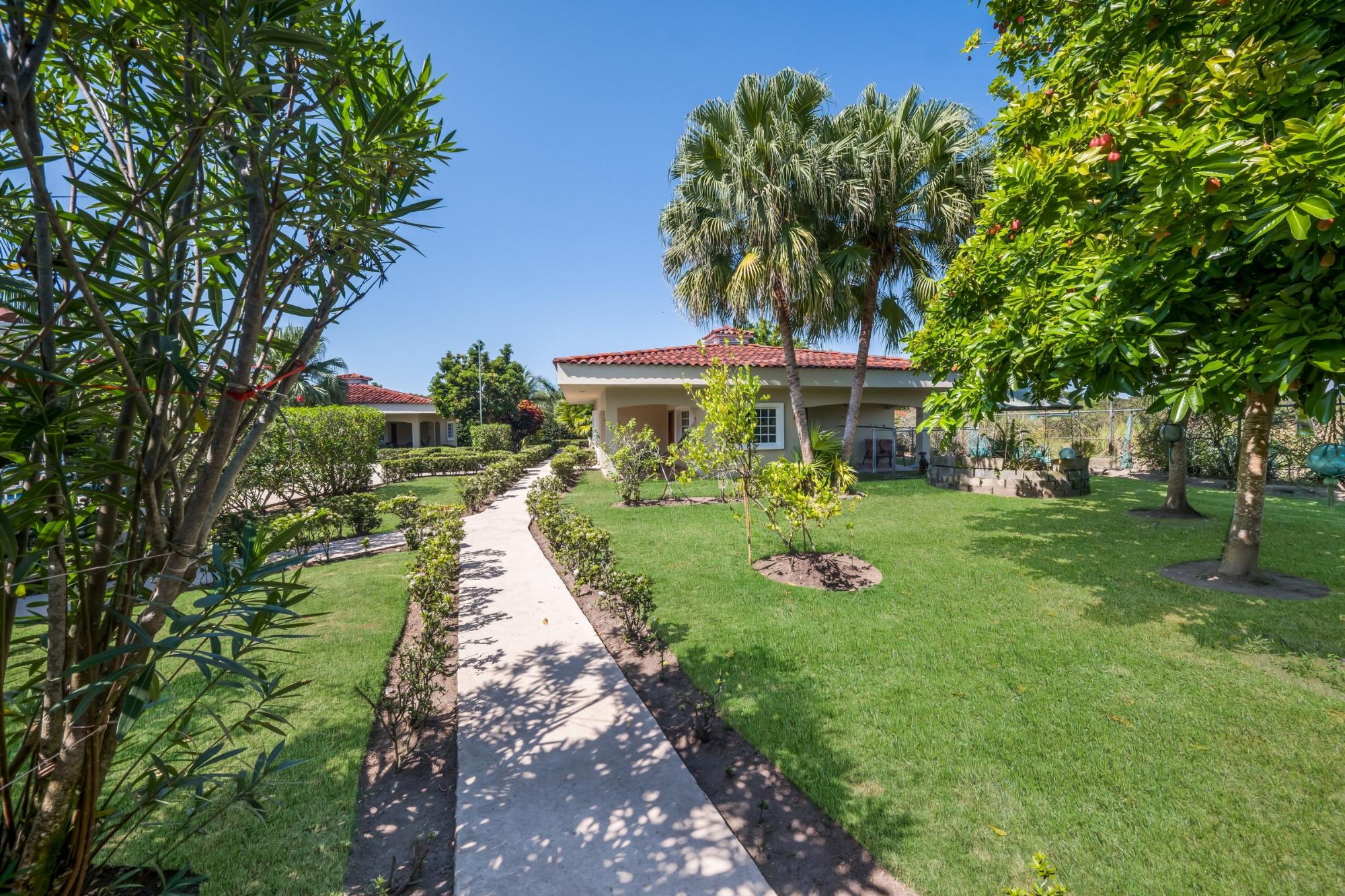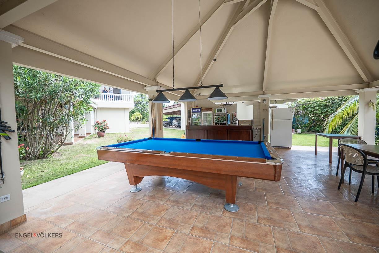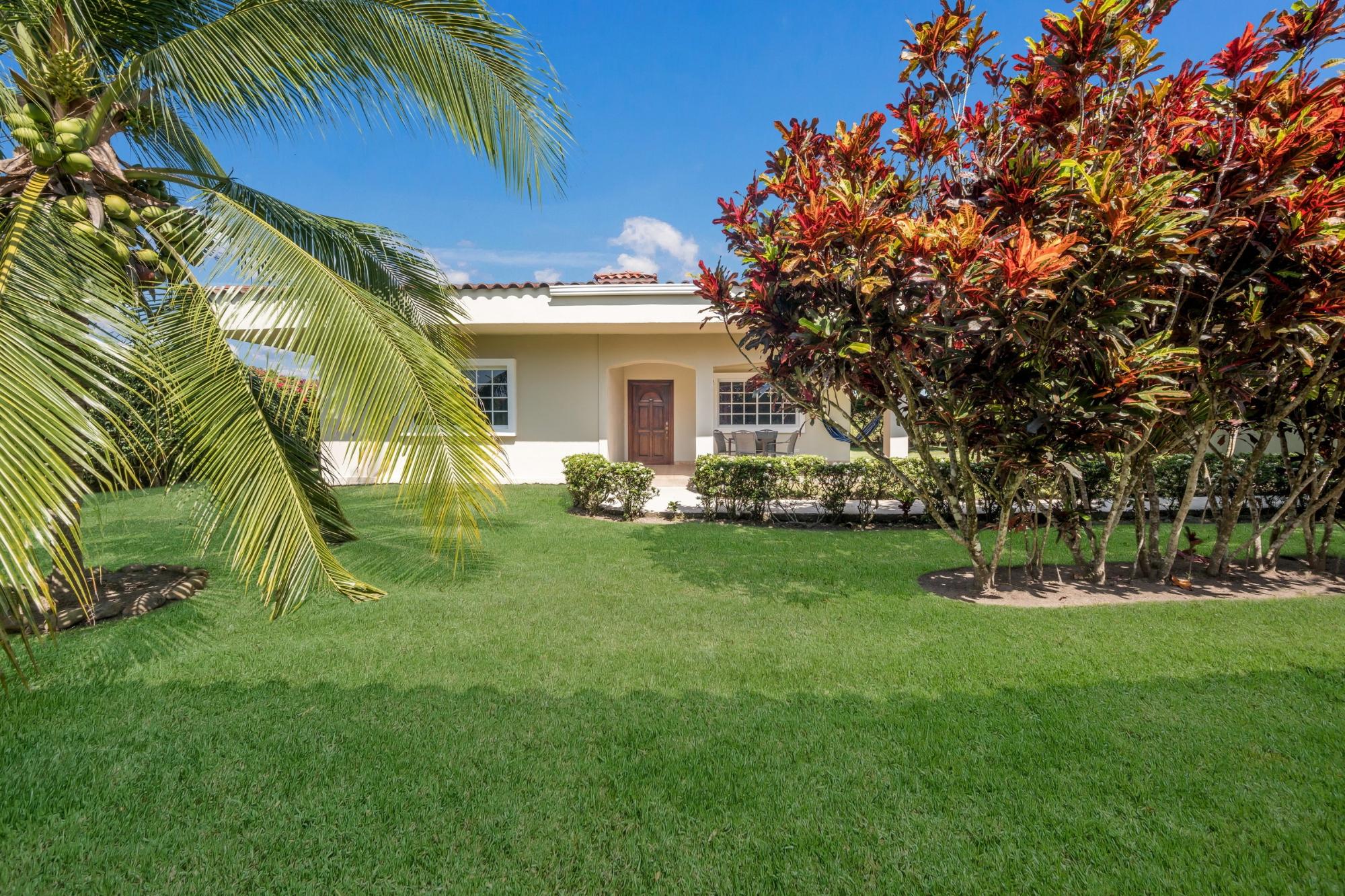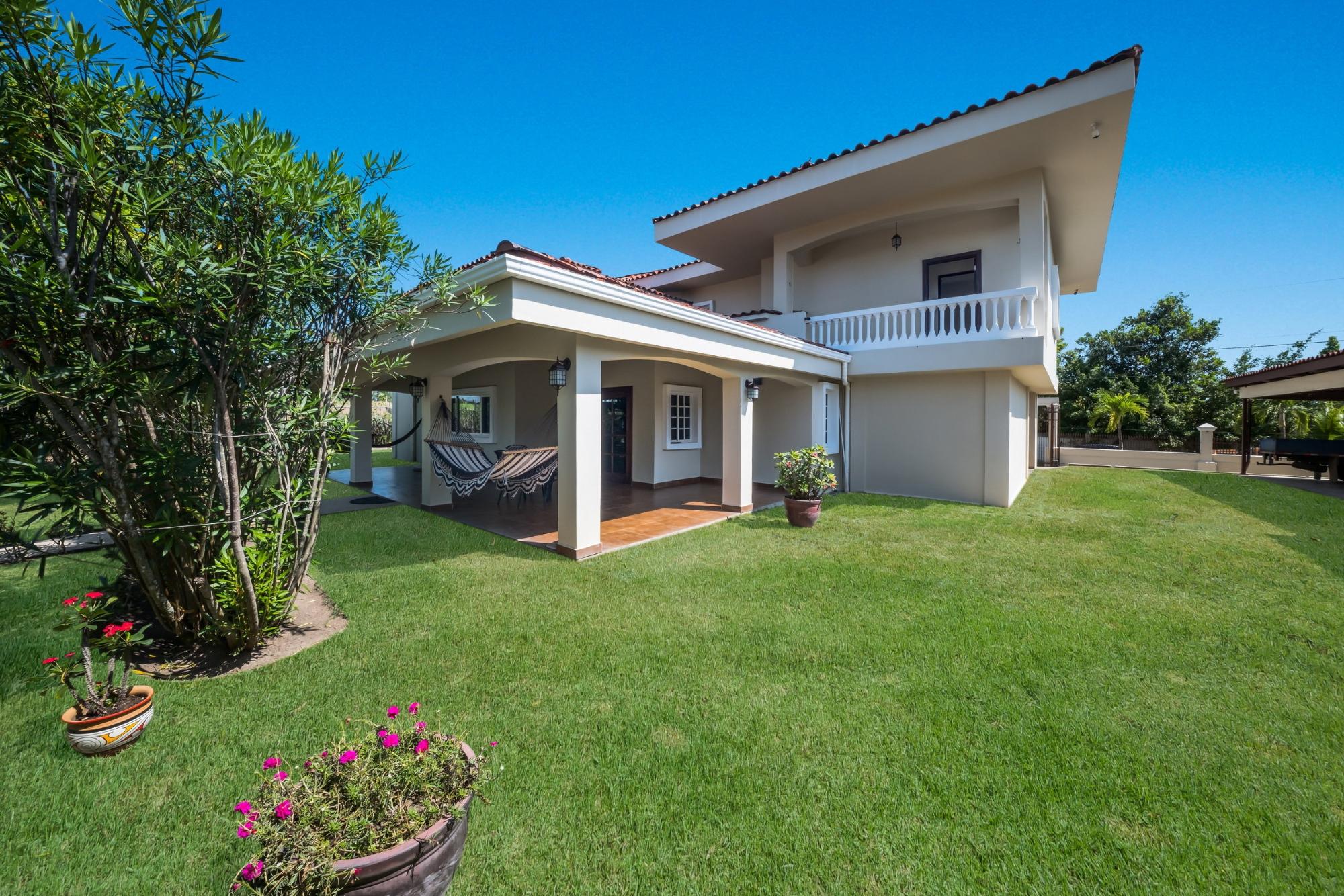 Discover your dream home in Santa Clara, Rio Hato – a property that perfectly blends modern luxury, comfort, and the natural beauty of Panama’s Pacific Coast. This stunning home offers spacious interiors, elegant finishes, and expansive outdoor spaces, making it the ideal location for relaxing family getaways or hosting unforgettable gatherings. Located just minutes from the beach, this property promises a lifestyle of tranquility and exclusivity. The property features a total land area of 3,033 m² and a main house of 380 m², fully furnished and equipped. The main house has 3 bedrooms, 3.5 bathrooms, a den, living room, kitchen, and office. The common area includes a gazebo with a grill, refrigerator, sink, and a large seating area, as well as a pool with outdoor showers and bathroom. Additionally, the property includes three guest houses, each measuring 118 m², furnished and equipped with 2 bedrooms, 2 bathrooms, living room, and kitchen. The construction is made of cement, concrete and M2 panels, providing excellent insulation, minimal maintenance and a robust structure. The property is equipped with solar panels that supply power to the main house and common areas, eliminating electricity costs. The solar system can also supply power to the guest houses if needed. Each house, including the guest houses and common areas, has its own electricity meter. The property also has a private water well with irrigation system, a comprehensive drainage system and a security system installed throughout the property. In addition, it has an electric generator, high-speed fiber optic internet with Tigo and pressure and well water pumps.