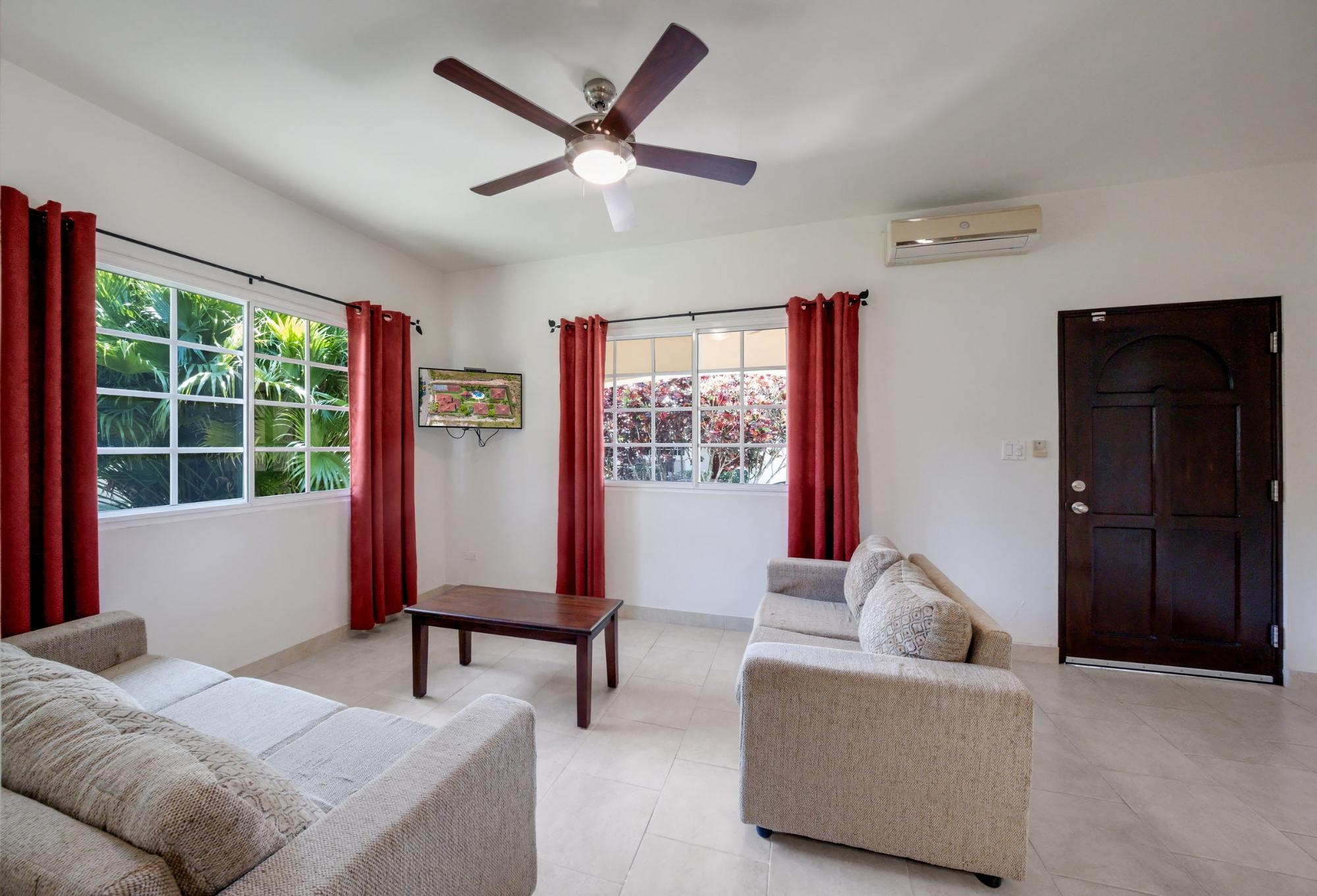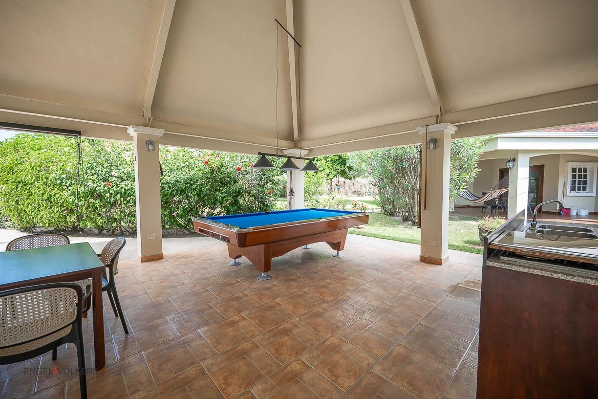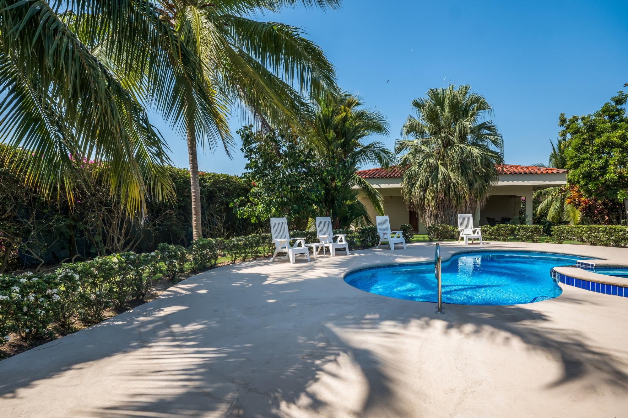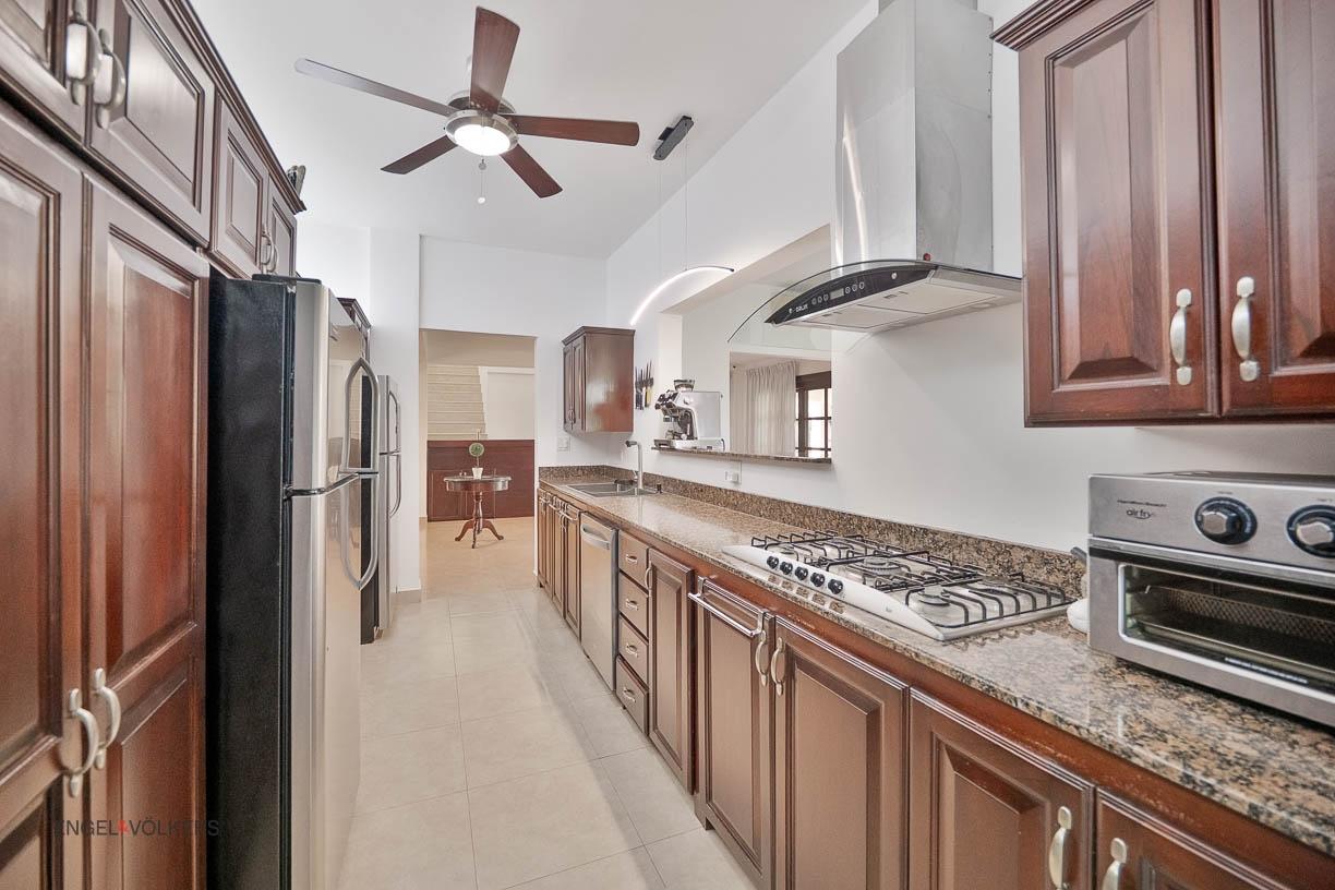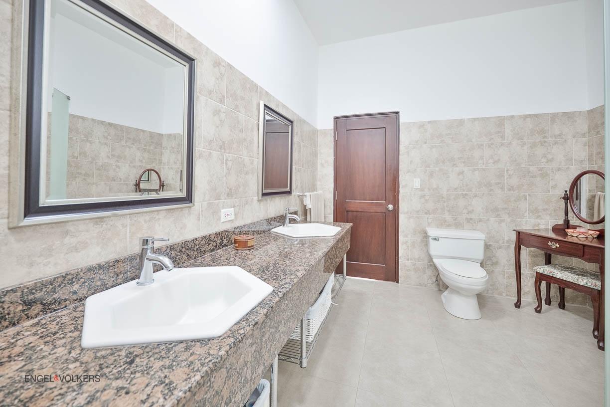 Discover your dream home in Santa Clara, Rio Hato – a property that perfectly blends modern luxury, comfort, and the natural beauty of Panama’s Pacific Coast. This stunning home offers spacious interiors, elegant finishes, and expansive outdoor spaces, making it the ideal location for relaxing family getaways or hosting unforgettable gatherings. Located just minutes from the beach, this property promises a lifestyle of tranquility and exclusivity. The property features a total land area of 3,033 m² and a main house of 380 m², fully furnished and equipped. The main house has 3 bedrooms, 3.5 bathrooms, a den, living room, kitchen, and office. The common area includes a gazebo with a grill, refrigerator, sink, and a large seating area, as well as a pool with outdoor showers and bathroom. Additionally, the property includes three guest houses, each measuring 118 m², furnished and equipped with 2 bedrooms, 2 bathrooms, living room, and kitchen. The construction is made of cement, concrete and M2 panels, providing excellent insulation, minimal maintenance and a robust structure. The property is equipped with solar panels that supply power to the main house and common areas, eliminating electricity costs. The solar system can also supply power to the guest houses if needed. Each house, including the guest houses and common areas, has its own electricity meter. The property also has a private water well with irrigation system, a comprehensive drainage system and a security system installed throughout the property. In addition, it has an electric generator, high-speed fiber optic internet with Tigo and pressure and well water pumps.