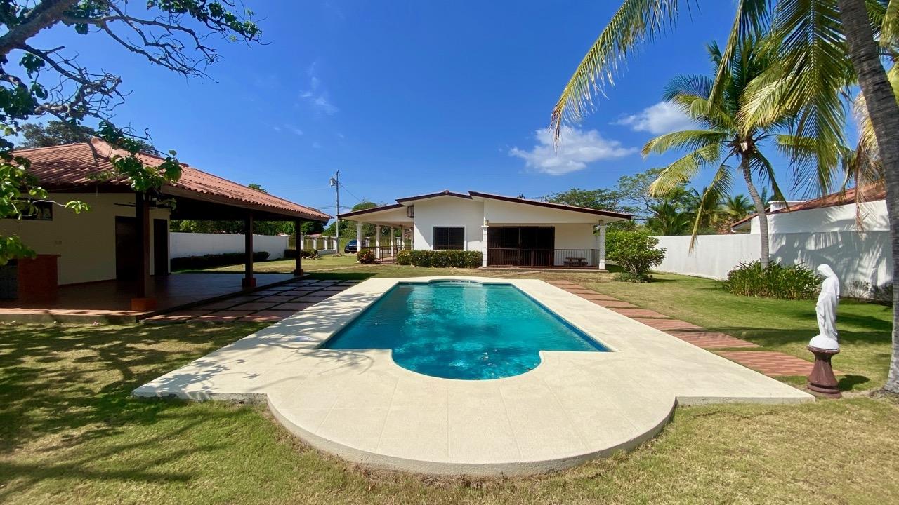 Beach house with pool located in a quiet area of Coronado, very close to the ocean. THE LOCATION In the sector of Punta Prieta, an exclusive area of Coronado, here is a very nice house with 3 bedrooms and a large swimming pool, only 300 meters from Coronado Beach. THE PROPERTY This beach house sits on a 1,120 square meters titled land, fenced and gated. It's a nice landscaped garden, with flowers, palm trees and some large grass areas. It gives a lot of space for children, and adults, to play around and run. With a total of 350 square meters of construction, the distribution of this beach house is as follow: •Living room •Dinning room •Open kitchen with bar •Master bedroom (25 m2) with walk in closet, private bathroom and roofed terrace •Second bedroom (20 m2) •Third bedroom (15 m2) •Full bathroom •Large roofed terrace •Swimming pool •Pool house with barbecue, bar, restroom and outside shower •Garden storage. Ceiling fans and air conditioner are installed in the living area and all bedrooms. This beach house is in very good condition, well maintained. Fully furnished, ready to move in, this house is the perfect place for you to own a nice and comfortable house close to the ocean in one of the most exclusive beach community of Panama.
