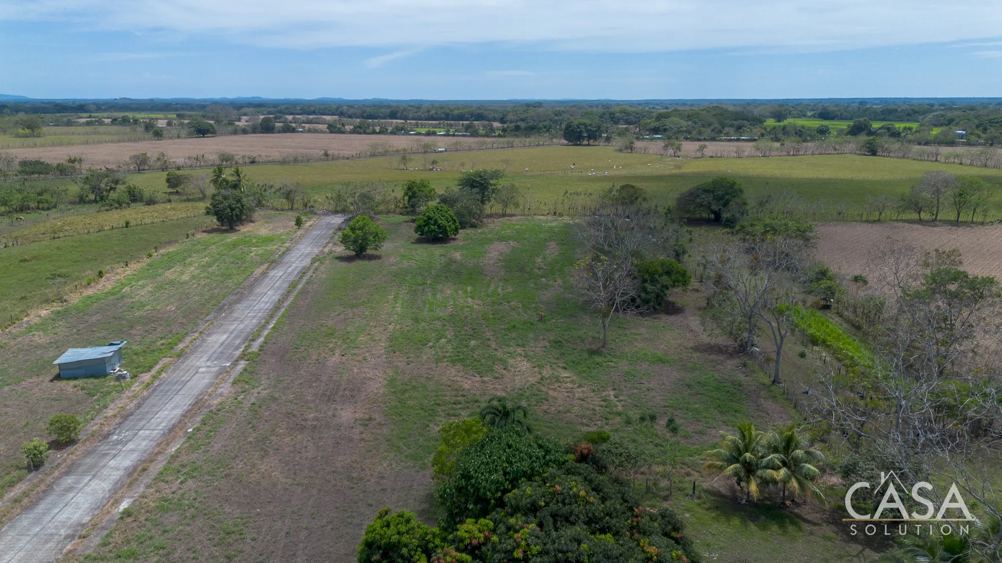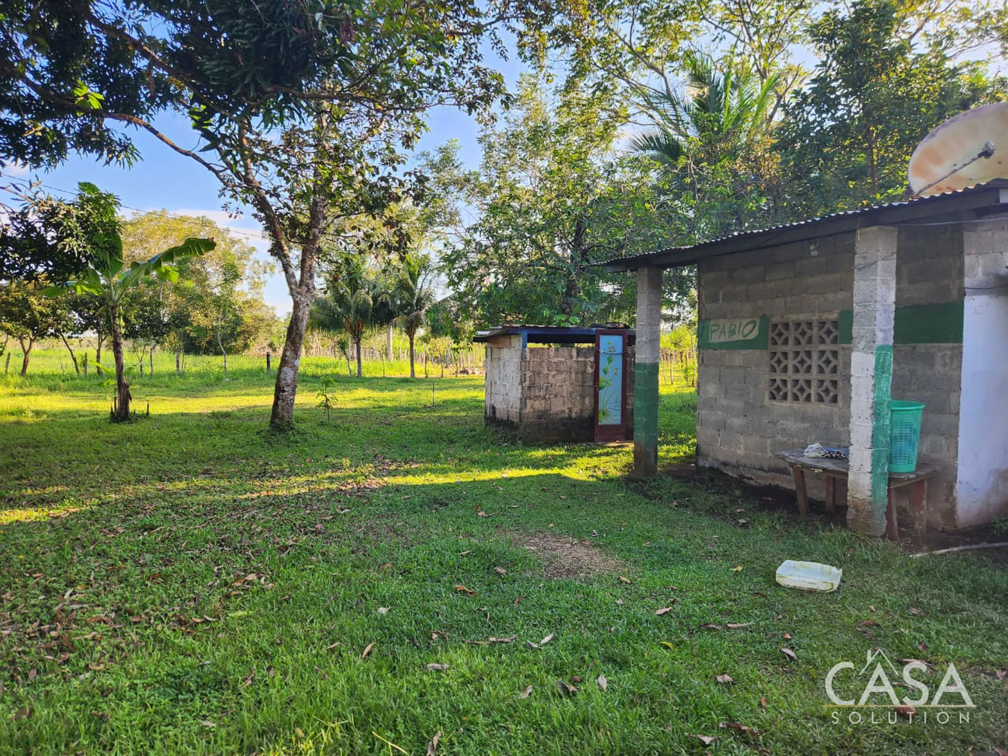 The property feels open, green, and functional, with enough room to expand the footprint, add gardens, additional structures, or create a more complete layout.