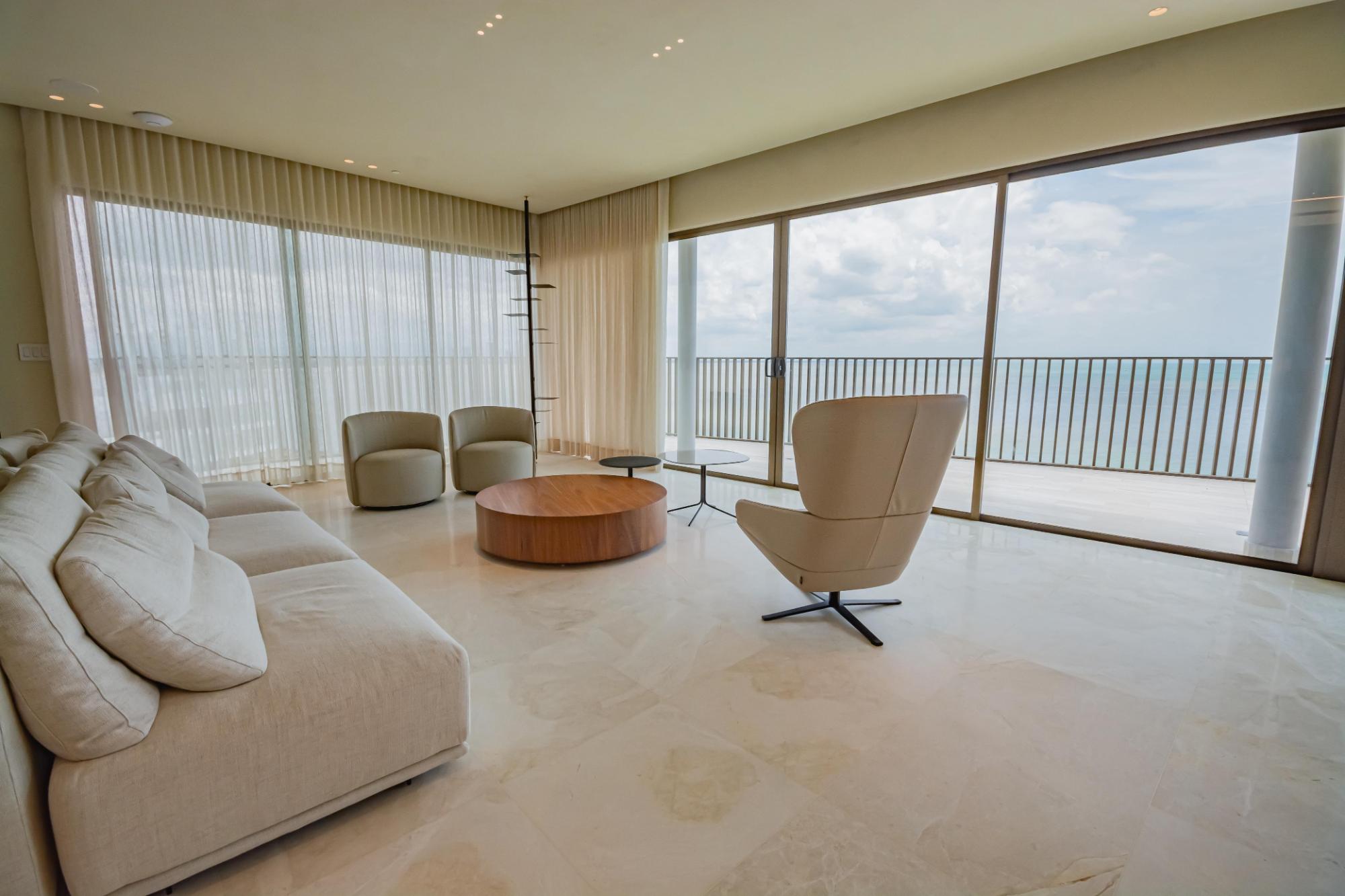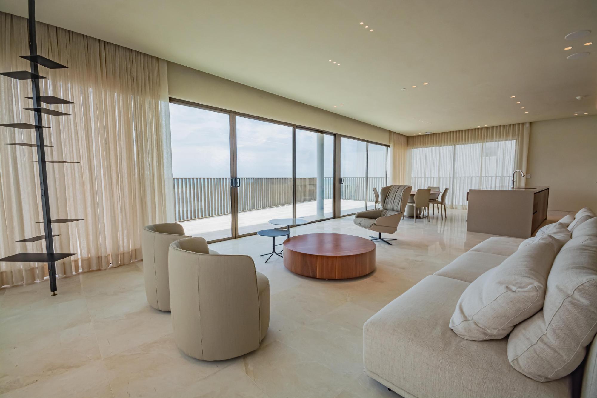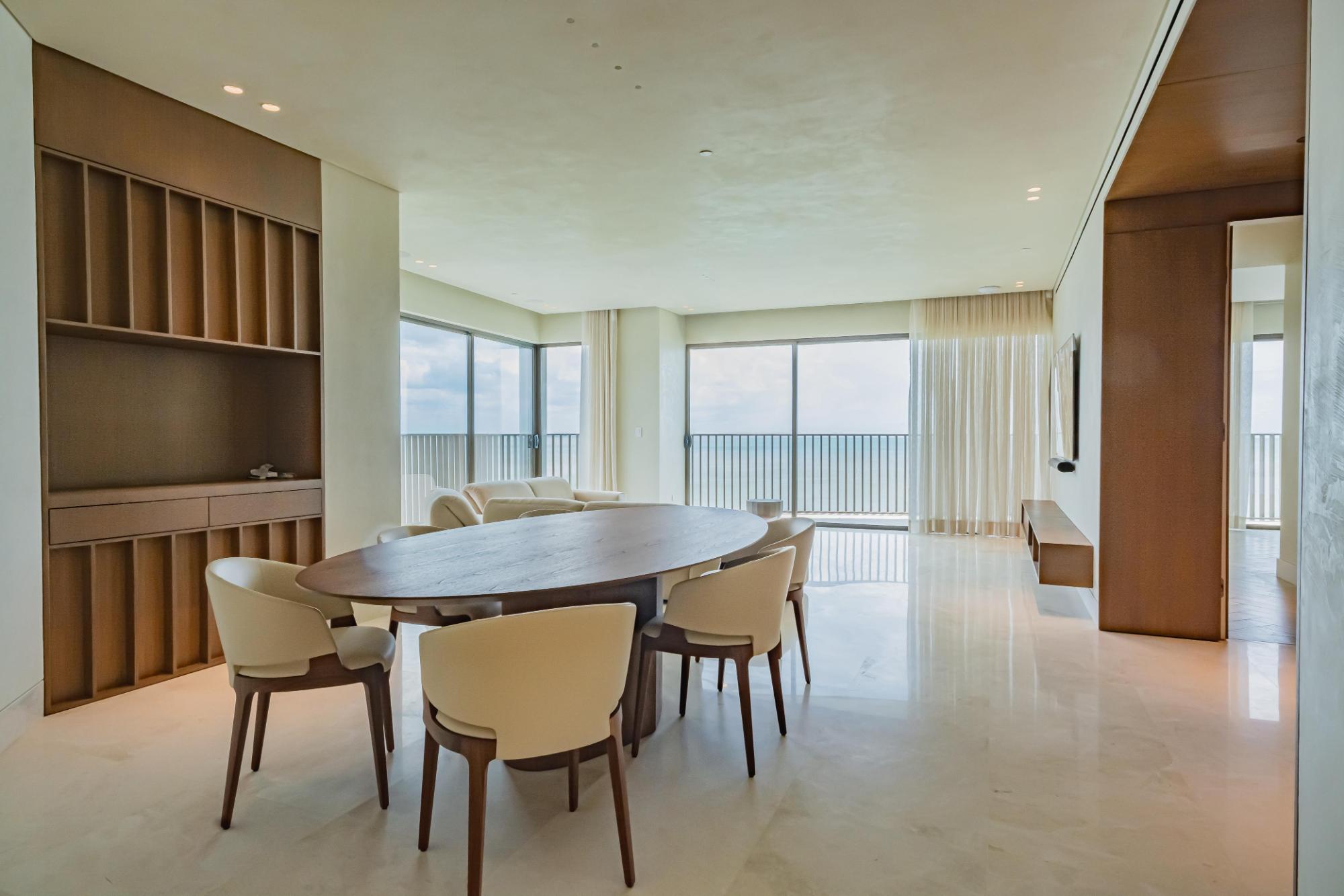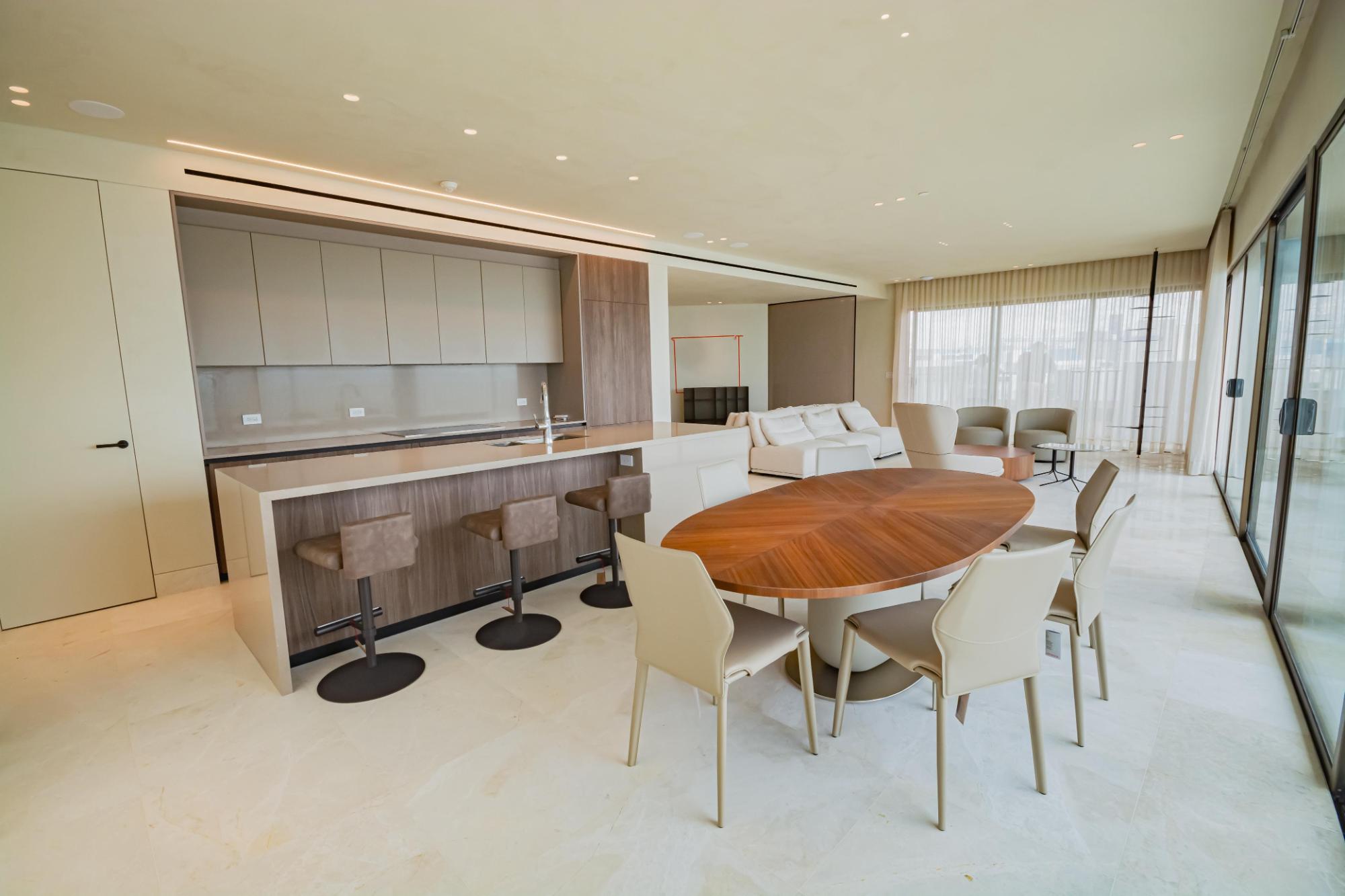 Discover this stunning duplex penthouse for sale in the prestigious Ocean Reef community. This one-of-a-kind two-story penthouse is a masterpiece of custom upgrades and interior design, offering an unparalleled living experience. Featuring 3 bedrooms plus a maid’s quarters, and 3.5 bathrooms, this spacious residence is perfect for those seeking luxury and comfort. The home boasts two independent kitchens, both equipped with top-of-the-line Miele appliances, catering to all your culinary needs. One of the standout features is the wrap-around balcony, providing panoramic ocean and city views that create a serene and picturesque backdrop to your daily life. The expansive outdoor space is perfect for relaxing and entertaining, offering breathtaking views from every angle.