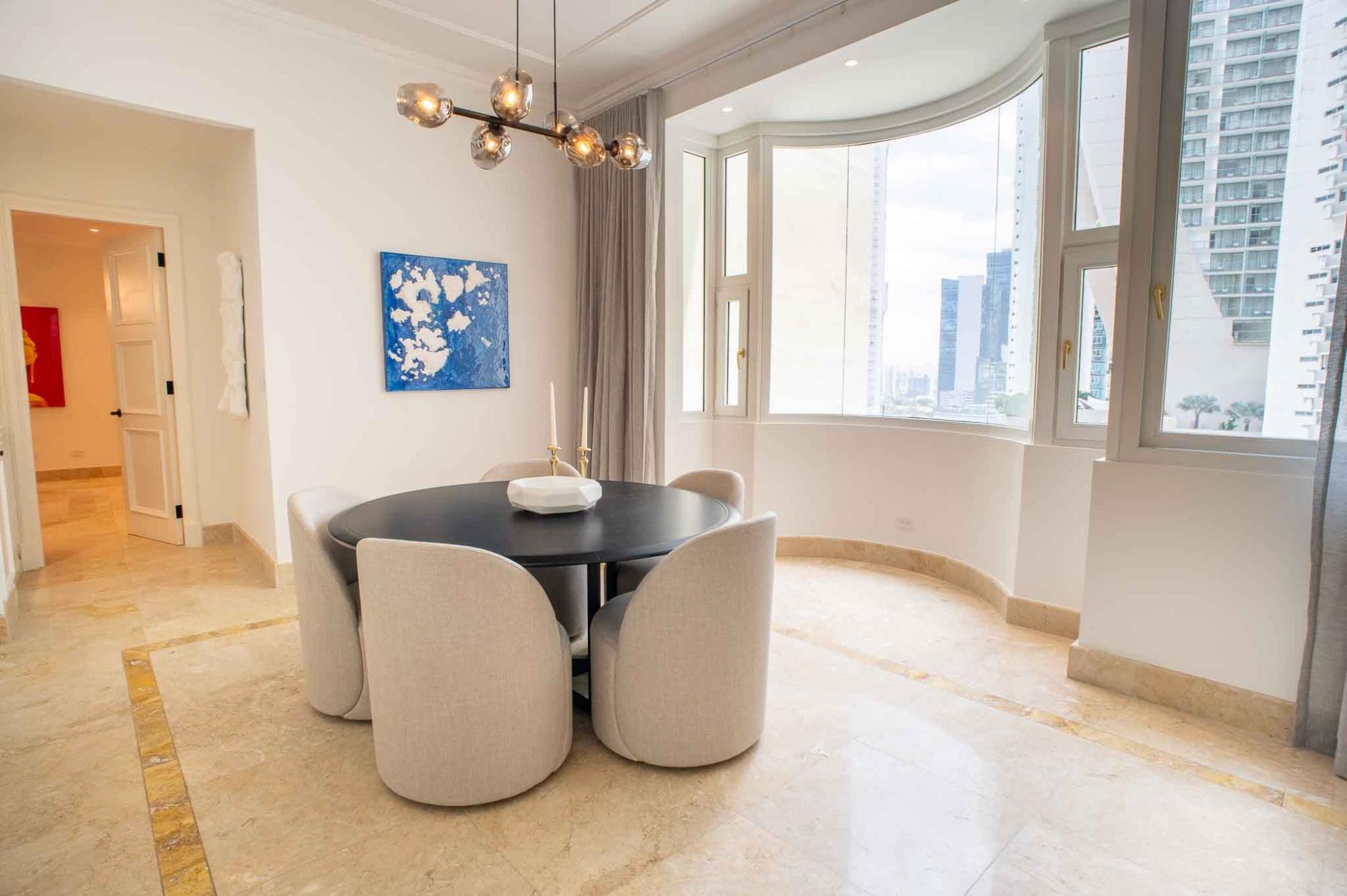 ABOUT THE PROPERTY This one-of-a-kind, luxury residence in the Bellagio Panama is a true masterpiece of design and elegance. Located in the heart of Punta Pacifica, one of Panama City’s most prestigious neighborhoods, this custom-designed suite boasts over $1 million in upgrades and is filled with exceptional features that offer the height of luxury living. The apartment spans an entire floor and features over 4,000 square feet of interior space, complete with expansive ocean views and sophisticated design elements. From the moment you step inside, you’re greeted with an abundance of natural light streaming through floor-to-ceiling windows, offering breathtaking views of the Pacific Ocean and the Punta Pacifica skyline. The designer kitchen is equipped with top-of-the-line appliances, custom cabinetry, and hand-crafted woodwork, making it as functional as it is stylish. Every inch of this residence exudes opulence, from the imported marble floors to the motorized roller window shades, to the Jacuzzi tub and outdoor terrace bar—perfect for entertaining or relaxing in style.