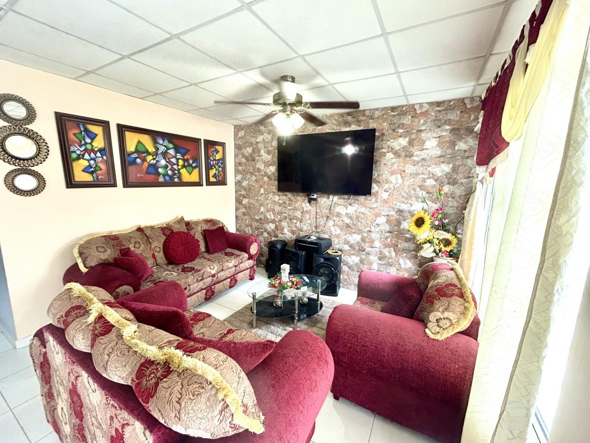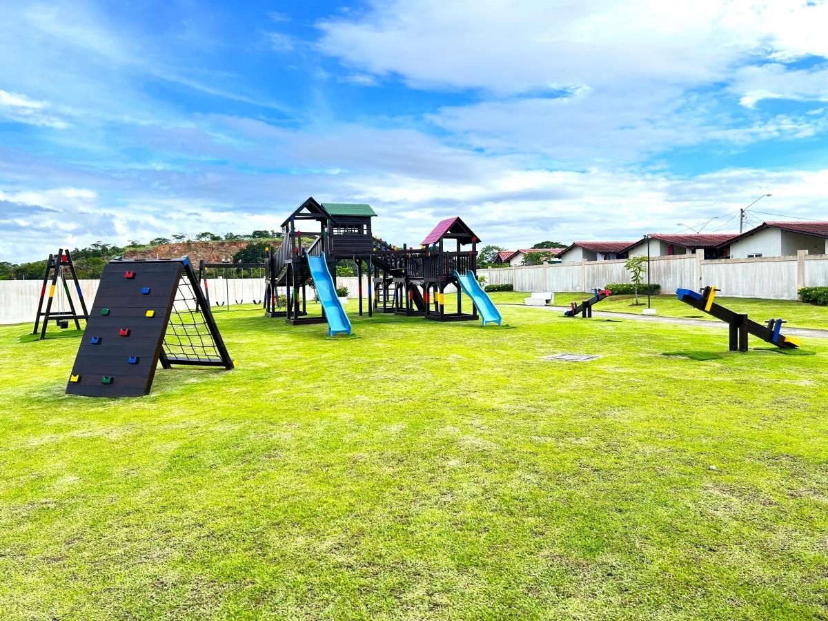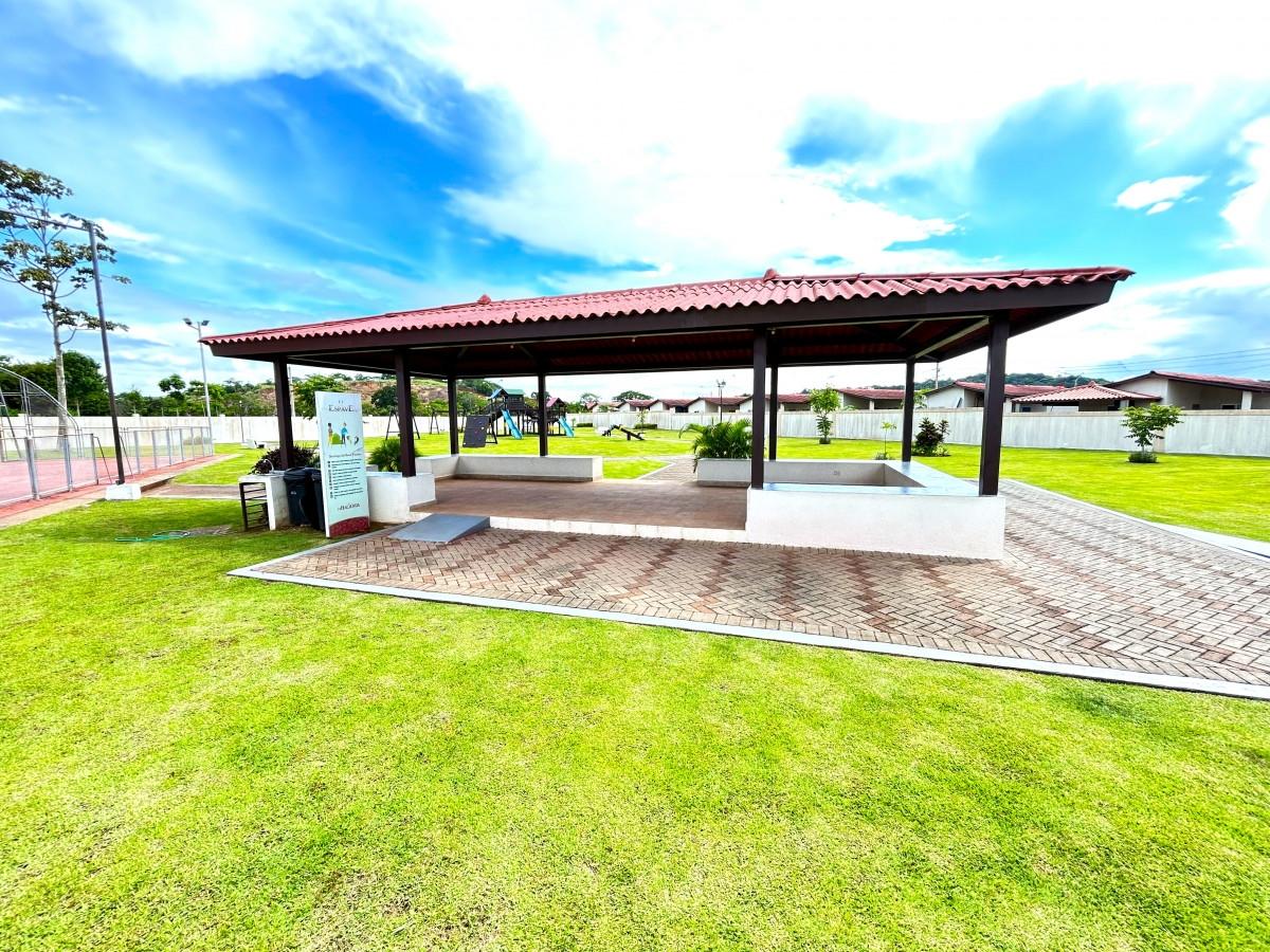 Just 5 minutes from Wesland Mall and the Arraiján-La Chorrera highway, and near to supermarkets, restaurants, gas stations, and more... P.H. Espavé has 24/7 security and offers recreational amenities including a basketball court, gazebo, and children's playground. The house has three (3) bedrooms, two (2) bathrooms, a living room, dining room, kitchen, laundry room, terrace, and a parking space. It is fenced.