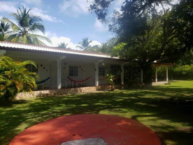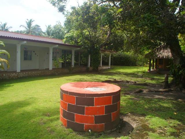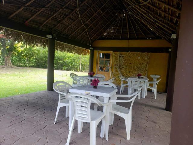 Very well preserved with green area and clean and accessible surroundings. It has 3 buildings, distributed the first building is for the concierge or guard, the second building is distributed with 3 rooms with their private bathroom and air conditioners, recreation area with pool table and ping pong. The third building is a restaurant in the shape of a bohio.