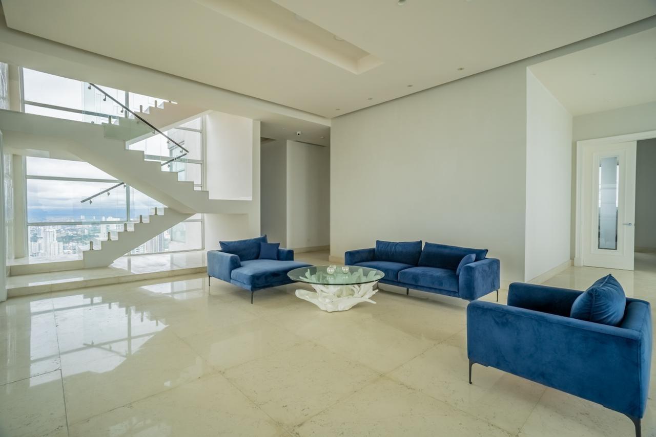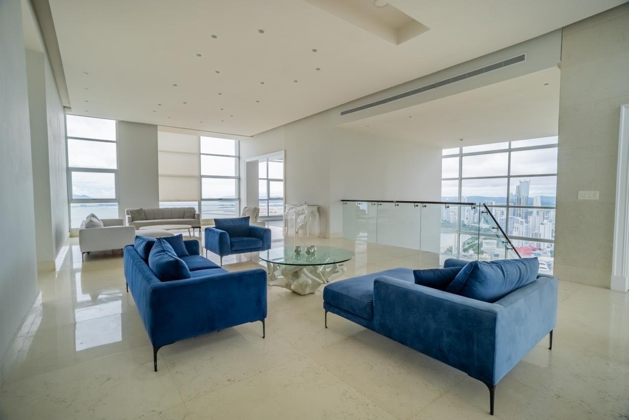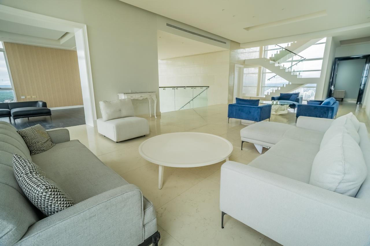About the Apartment This extraordinary four-level penthouse redefines luxury living, spanning an impressive 1,150 square meters of exquisite design and detail. Every level reveals an atmosphere of grandeur, combining open spaces, high ceilings, and stunning panoramic views. Level 1 – Private Retreat With 3.75-meter-high ceilings, this floor offers 4 spacious bedrooms, each with its own ensuite bathroom and Italian-designed closets. A fully equipped laundry room and a technical control room provide effortless convenience. The service elevator opens directly to this level through a multi-V door, ensuring total privacy. A large family room completes this space, ideal for relaxation or entertainment. Level 2 – Grand Living Spaces At 4.5 meters in height, this level welcomes you through a private lobby with three elevators. The expansive modern kitchen is equipped with VIKING appliances—including a refrigerator, ice maker, stove, oven, and microwave—designed for the most discerning chefs. The dining room comfortably seats 14 guests and features a private breakfast area. A sophisticated den with hardwood flooring, a spacious living area, and floor-to-ceiling windows showcases breathtaking city views, blending elegance with comfort. Level 3 –Exclusive Rooftop Sanctuary An unmatched rooftop oasis designed for entertainment and relaxation. Featuring a BBQ area with gas connection, built-in sound system, private bathroom, and intelligent lighting control, this rooftop provides unobstructed panoramic views of Panama City’s most iconic landmarks: Cerro Ancón, the Bridge of the Americas, Centennial Bridge, Amador Causeway, Casco Antiguo, and Cint Costera.