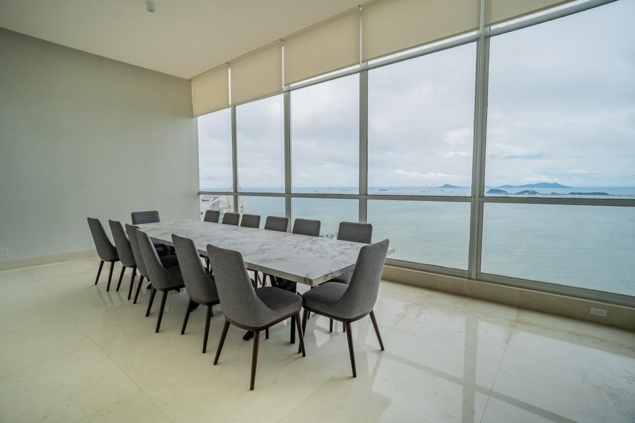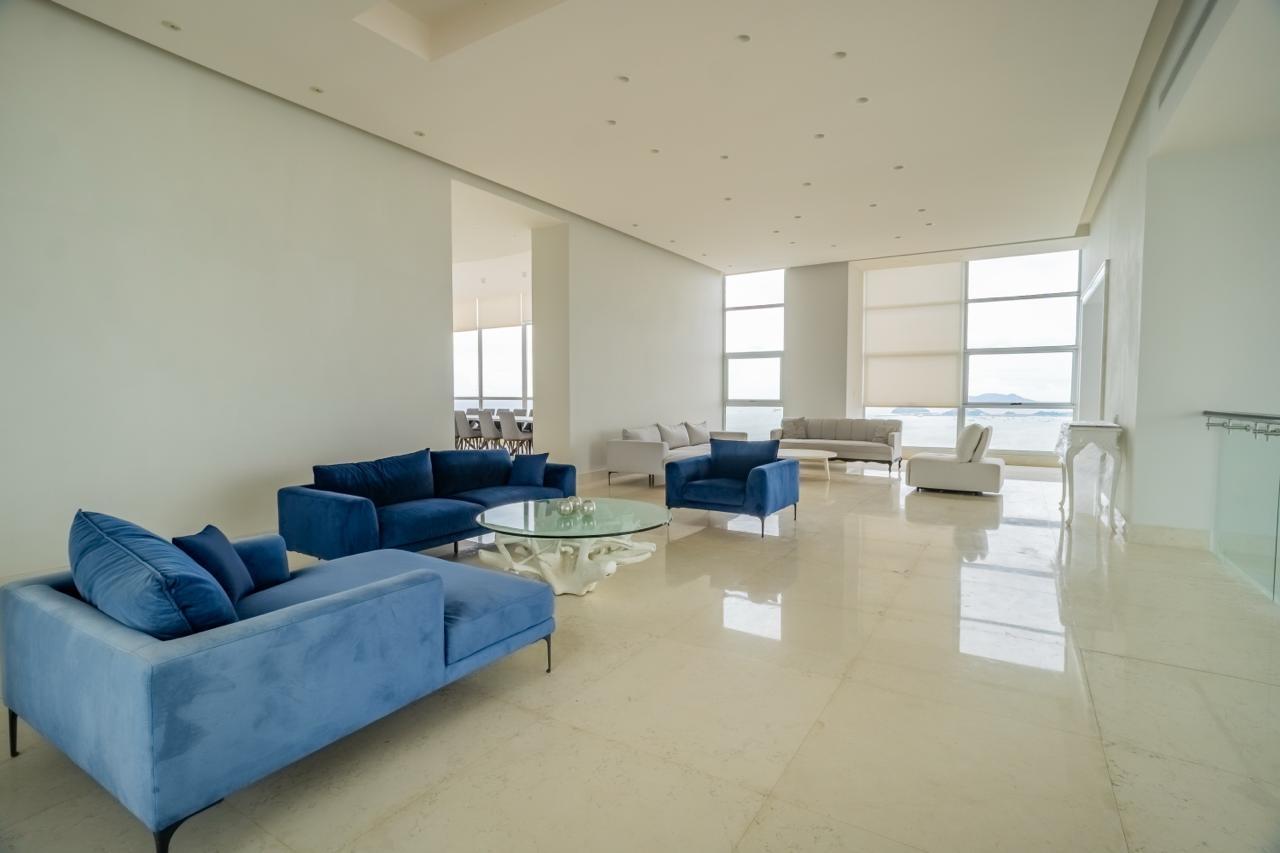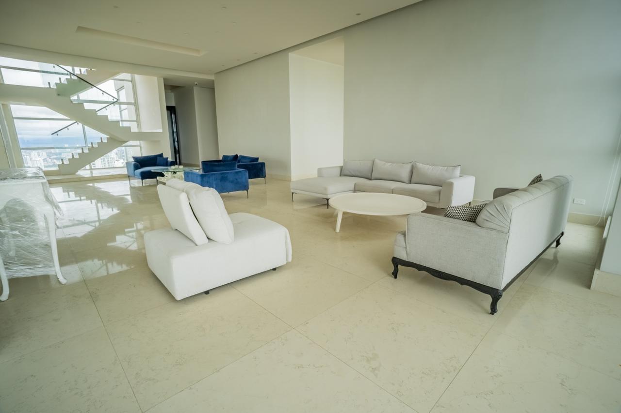 About the Apartment This extraordinary four-level penthouse redefines luxury living, spanning an impressive 1,150 square meters of exquisite design and detail. Every level reveals an atmosphere of grandeur, combining open spaces, high ceilings, and stunning panoramic views. Level 1 – Private Retreat With 3.75-meter-high ceilings, this floor offers 4 spacious bedrooms, each with its own ensuite bathroom and Italian-designed closets. A fully equipped laundry room and a technical control room provide effortless convenience. The service elevator opens directly to this level through a multi-V door, ensuring total privacy. A large family room completes this space, ideal for relaxation or entertainment. Level 2 – Grand Living Spaces At 4.5 meters in height, this level welcomes you through a private lobby with three elevators. The expansive modern kitchen is equipped with VIKING appliances—including a refrigerator, ice maker, stove, oven, and microwave—designed for the most discerning chefs. The dining room comfortably seats 14 guests and features a private breakfast area. A sophisticated den with hardwood flooring, a spacious living area, and floor-to-ceiling windows showcases breathtaking city views, blending elegance with comfort. Level 3 –Exclusive Rooftop Sanctuary An unmatched rooftop oasis designed for entertainment and relaxation. Featuring a BBQ area with gas connection, built-in sound system, private bathroom, and intelligent lighting control, this rooftop provides unobstructed panoramic views of Panama City’s most iconic landmarks: Cerro Ancón, the Bridge of the Americas, Centennial Bridge, Amador Causeway, Casco Antiguo, and Cint Costera.