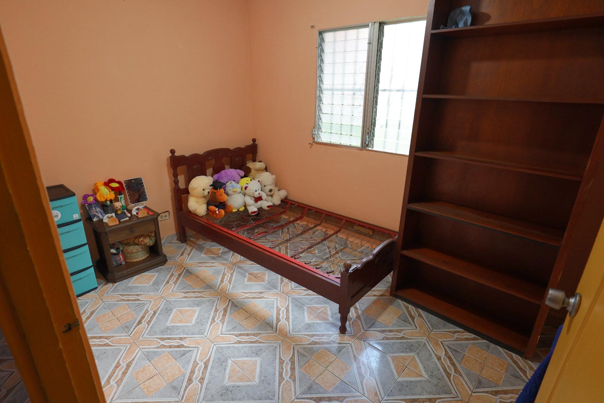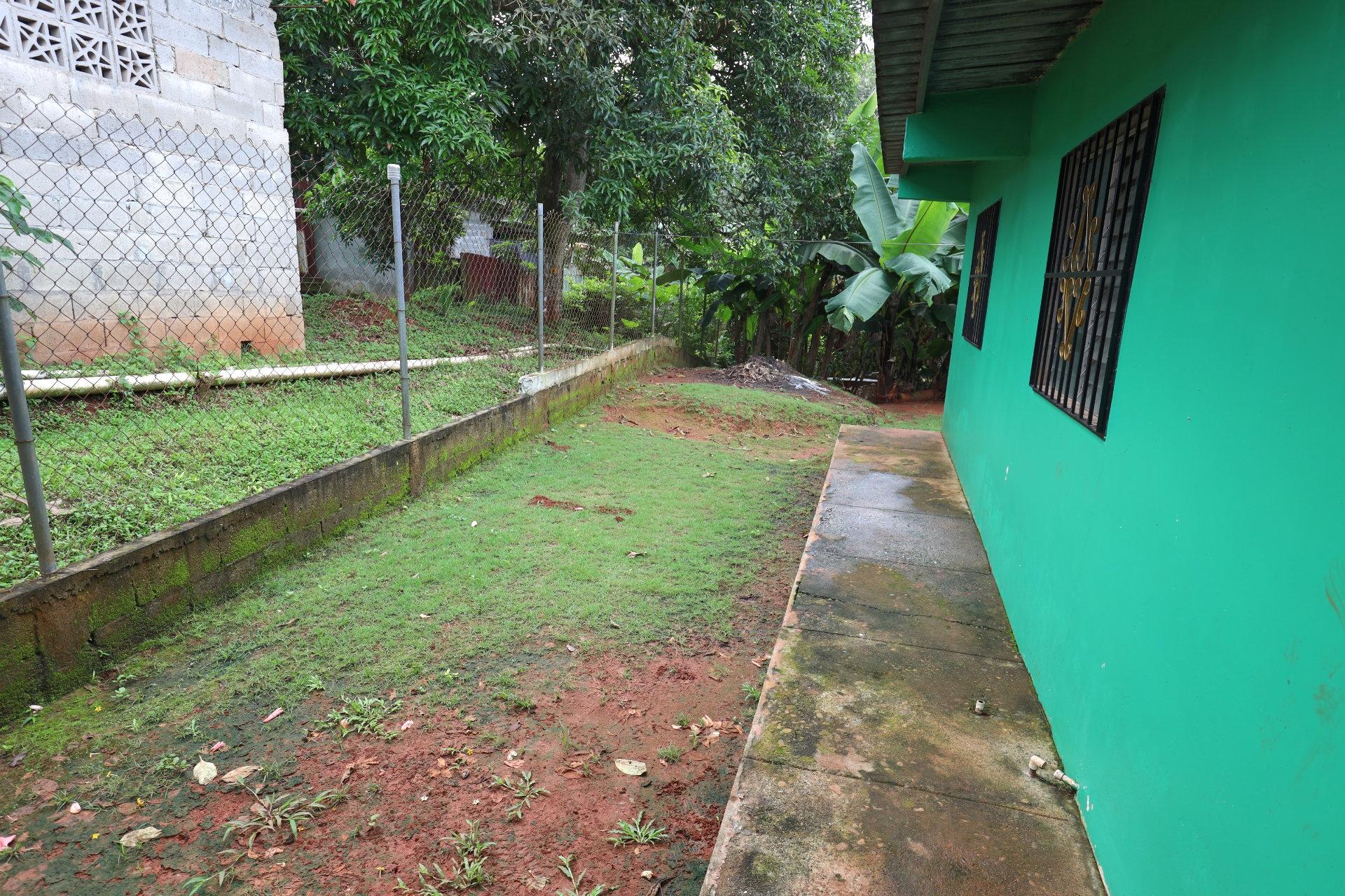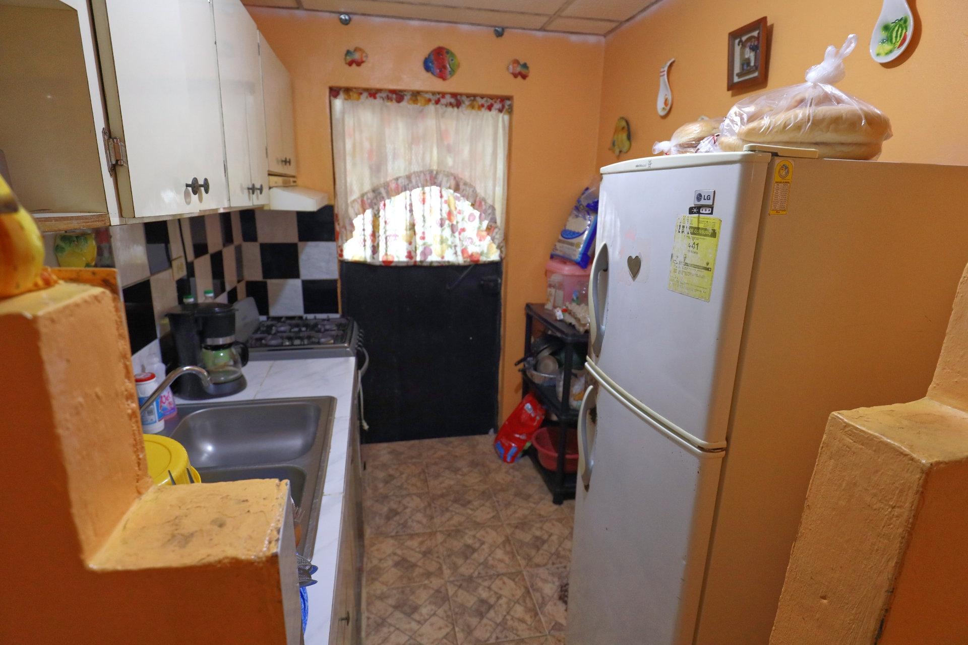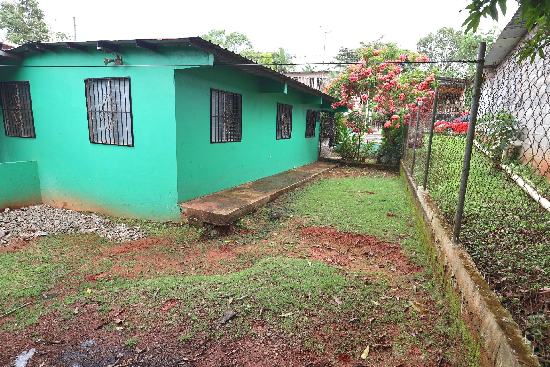 It has a fence throughout the property, 3 bedrooms, living-dining room, closed parking, garden, backyard.