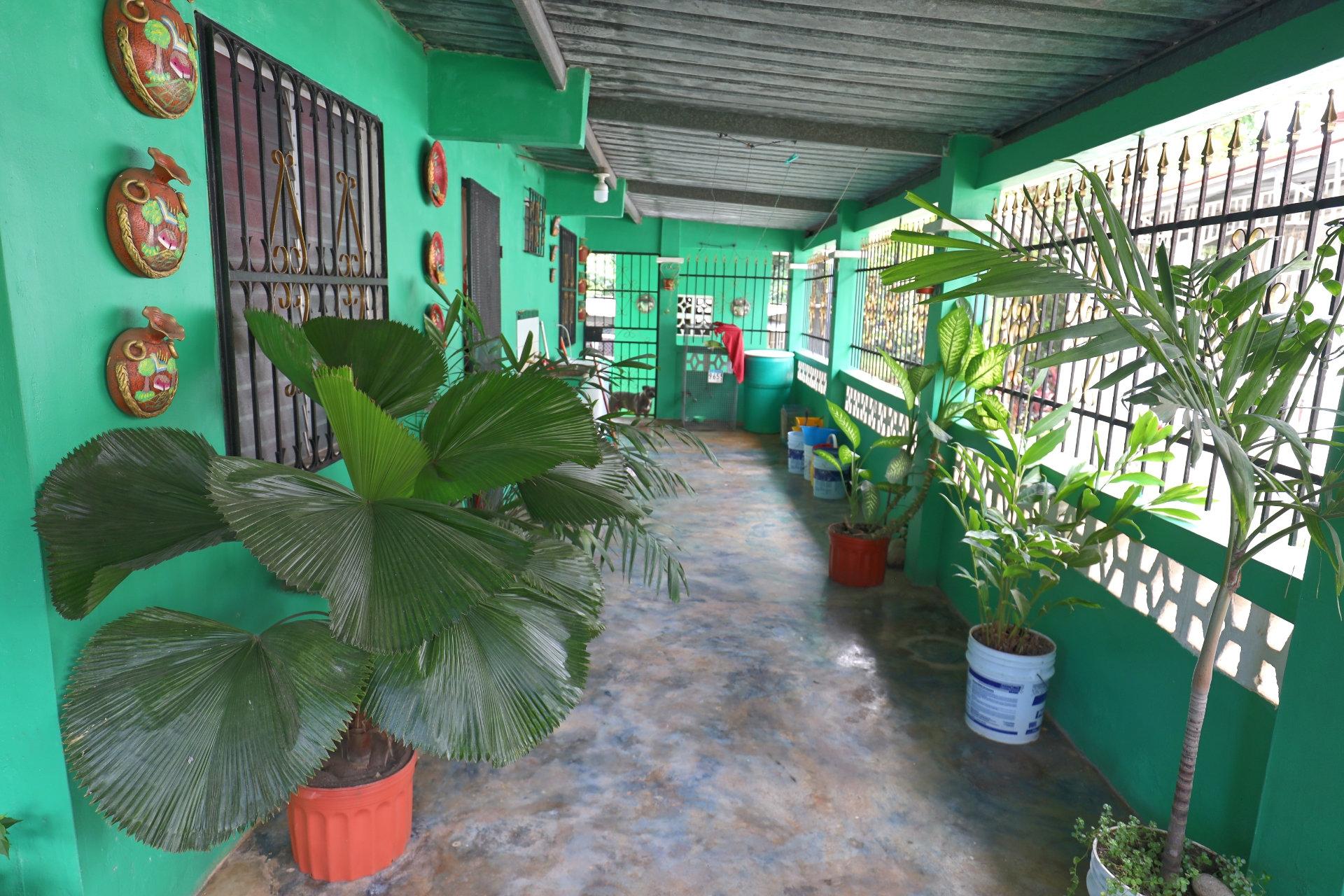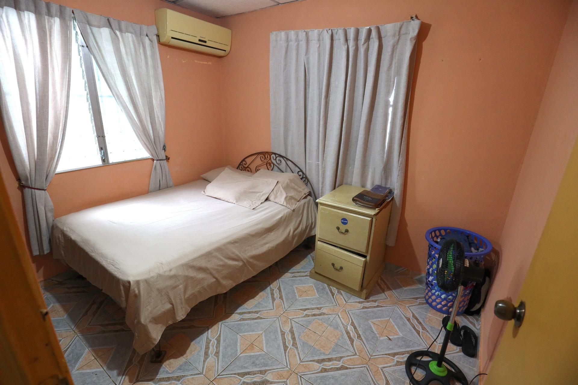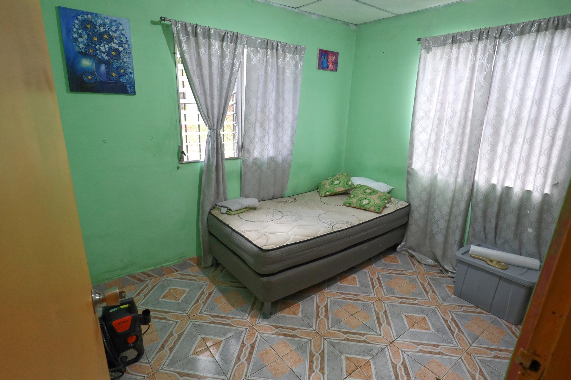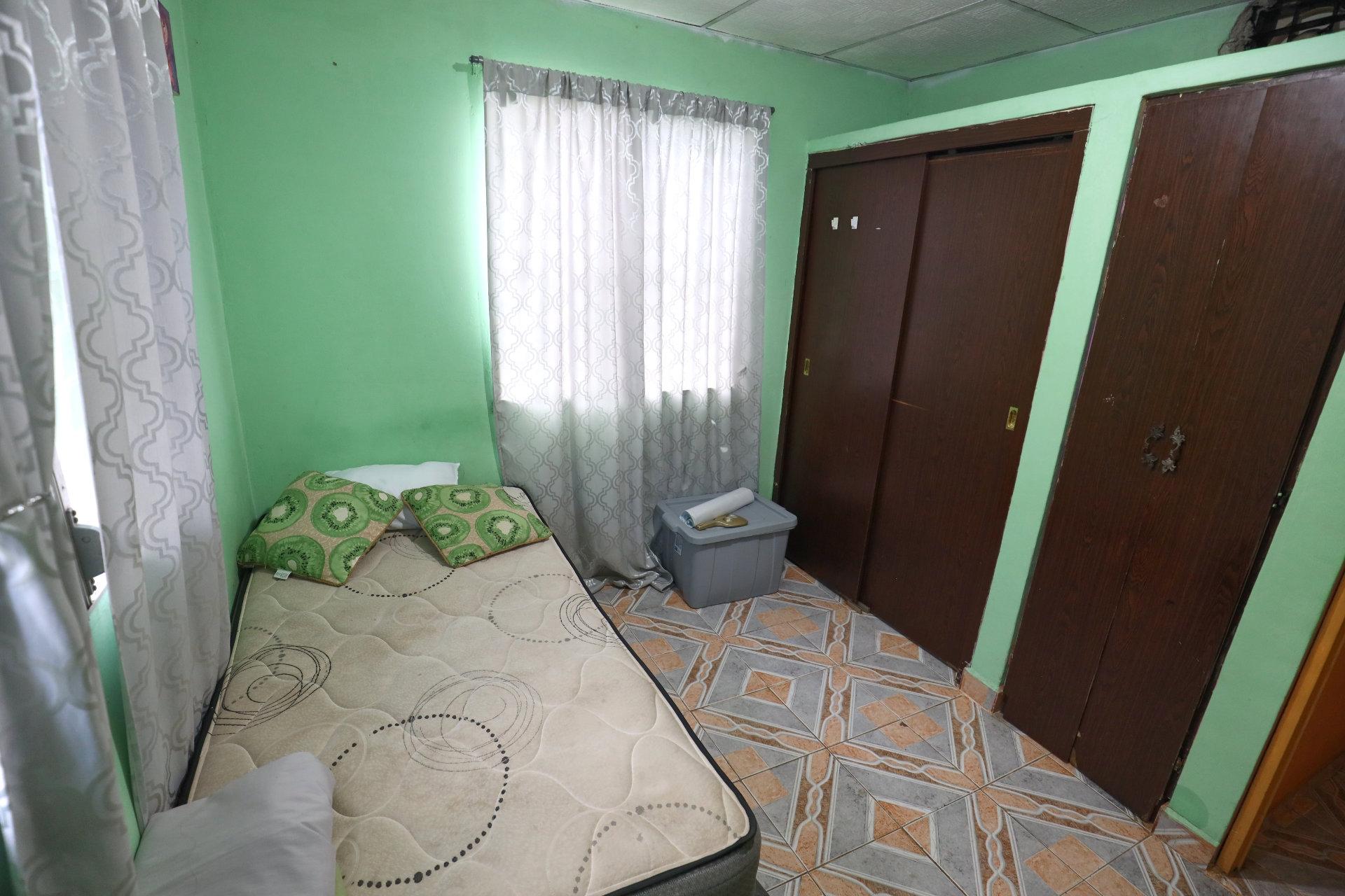 It has a fence throughout the property, 3 bedrooms, living-dining room, closed parking, garden, backyard.