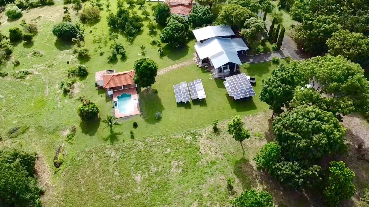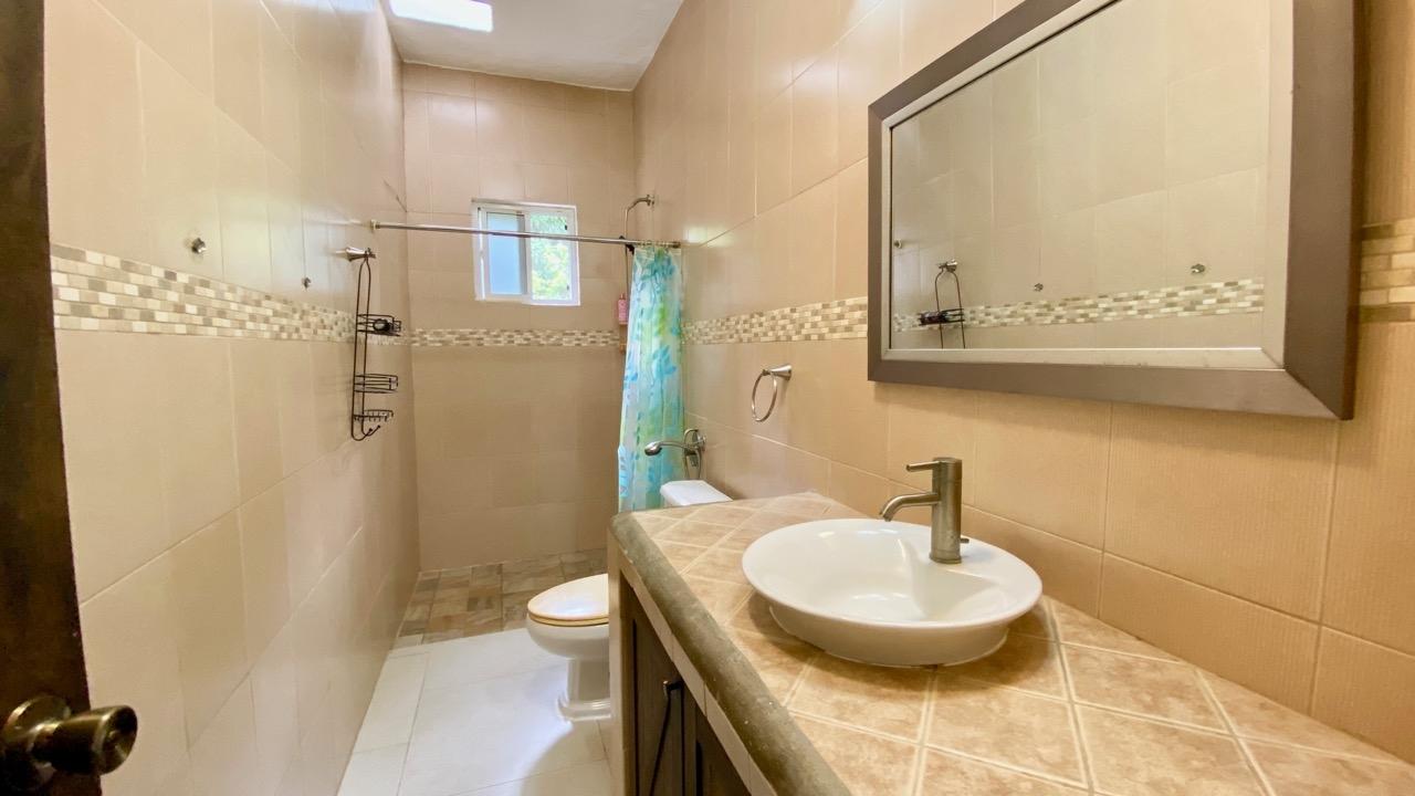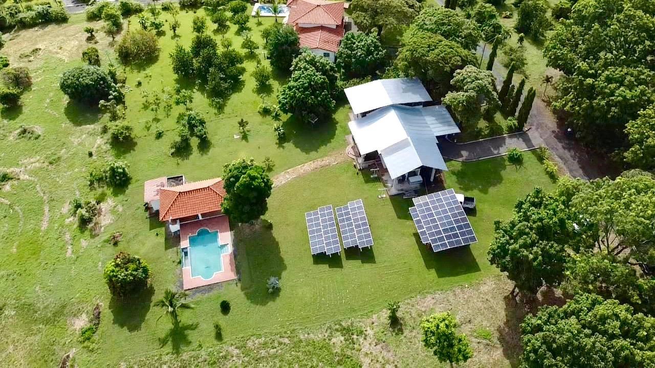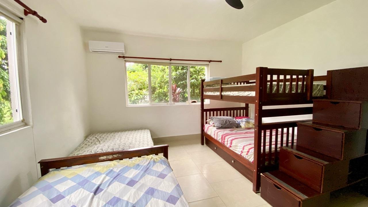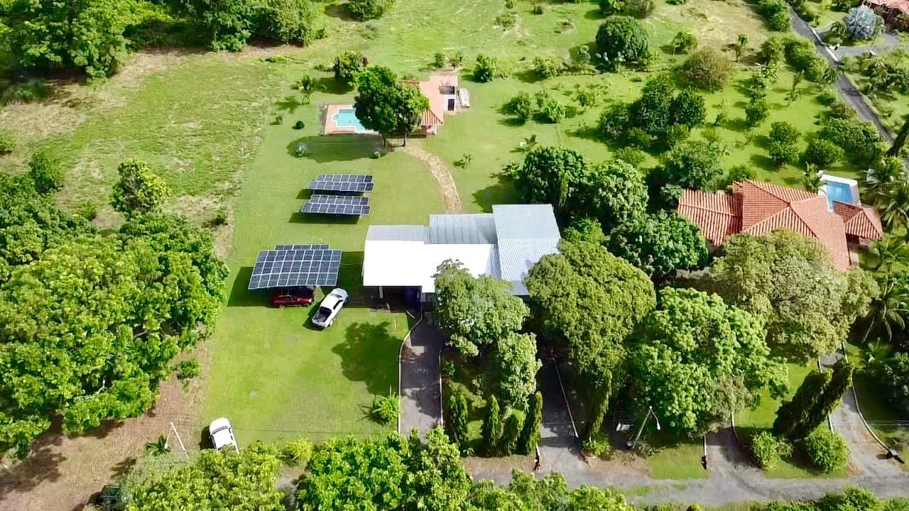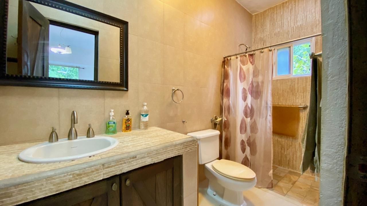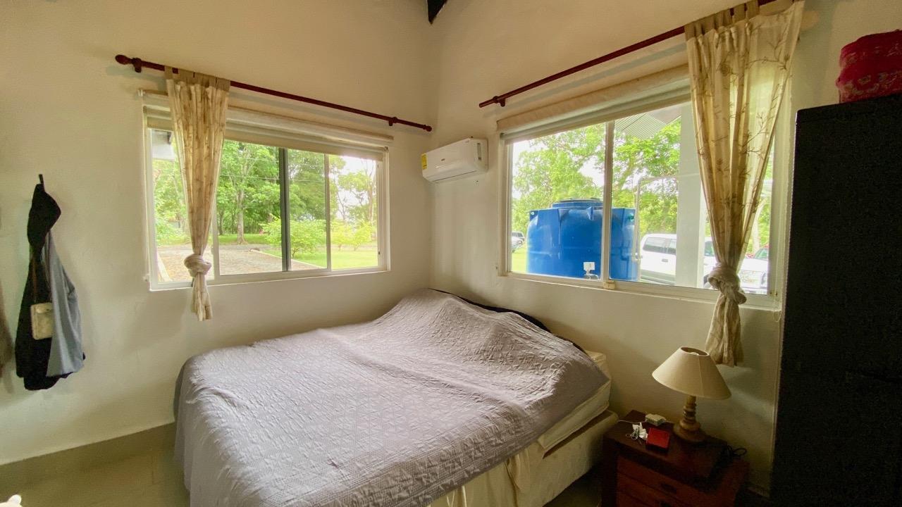 Colonial 3-bed house, with a nice pool and a large landscaped land, about 10 minutes away from Coronado. It's located in the complex Las Quintas de Cabuya, on the way to the village of Cabuya. Very friendly complex with about 20 houses, surrounded by mountains, offering some nice views and a sweet breeze all along the year. Small social area with pool and gazebos. House with colonial style, high ceilings made of solid dark wood. Built 2014. Approximately 200m2 area and 3,400m2 of garden, with fruit trees, this property enjoys a privileged location, in a dead end street. It has the following features: •Large living room, terrace access, •Open kitchen, fitted and equipped, with dining area, •1st Bedroom, with private bathroom and a mezzanine, AC & ceiling fan, •2nd Bedroom, also with private bathroom, AC & ceiling fan, •3rd Bedroom, AC & ceiling fan, •Separate full bathroom, •Covered terrace, •Outside restroom, •Pool and large gazebo with outside kitchen, brick oven, full bathroom and large storage, •Laundry room, •Garden shed, •60m2 lookout platform with water & electricity, •Many parking spaces. •Available for 55,000 USD a 20 feet refrigerated and insulated container with solar system, batteries and controls. The 3,400m2 garden is fully landscaped, with many fruits trees as papaya, piña, mango, banana, coconut, soursop, lemon, orange & mandarin. This colonial 3-bed house is a very good option for those who are looking for large family home, in a quiet and safe neighborhood. TAX EXEMPTION UNTIL 2034.