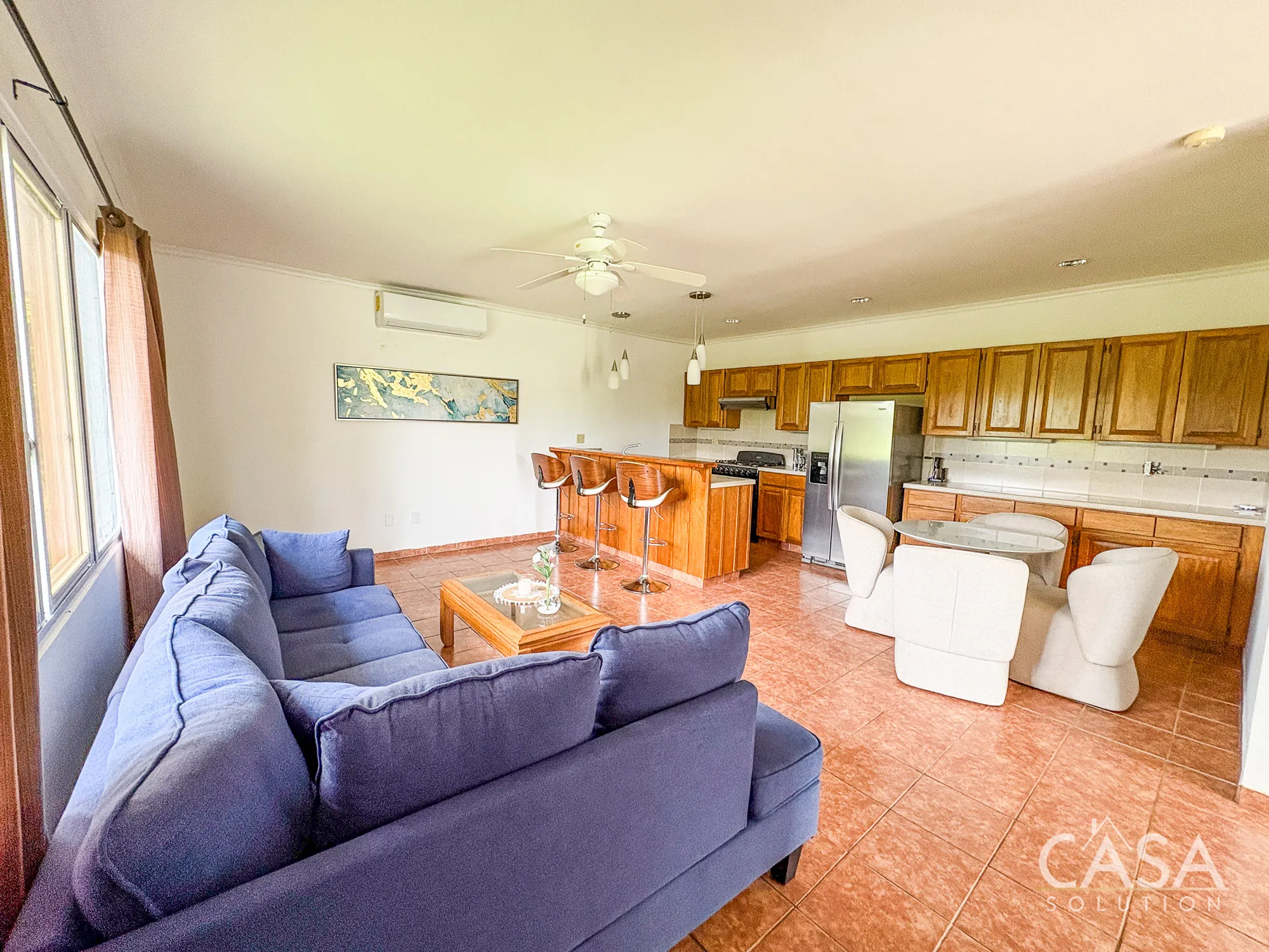 The condo is situated in the Sol & Mar community in Playa Las Lajas, within the San Félix district of Chiriquí Province. It’s about 12 km from the town center and 2 km from the nearest paved road. The location offers a peaceful setting while still being within driving distance of stores, restaurants, and basic services.