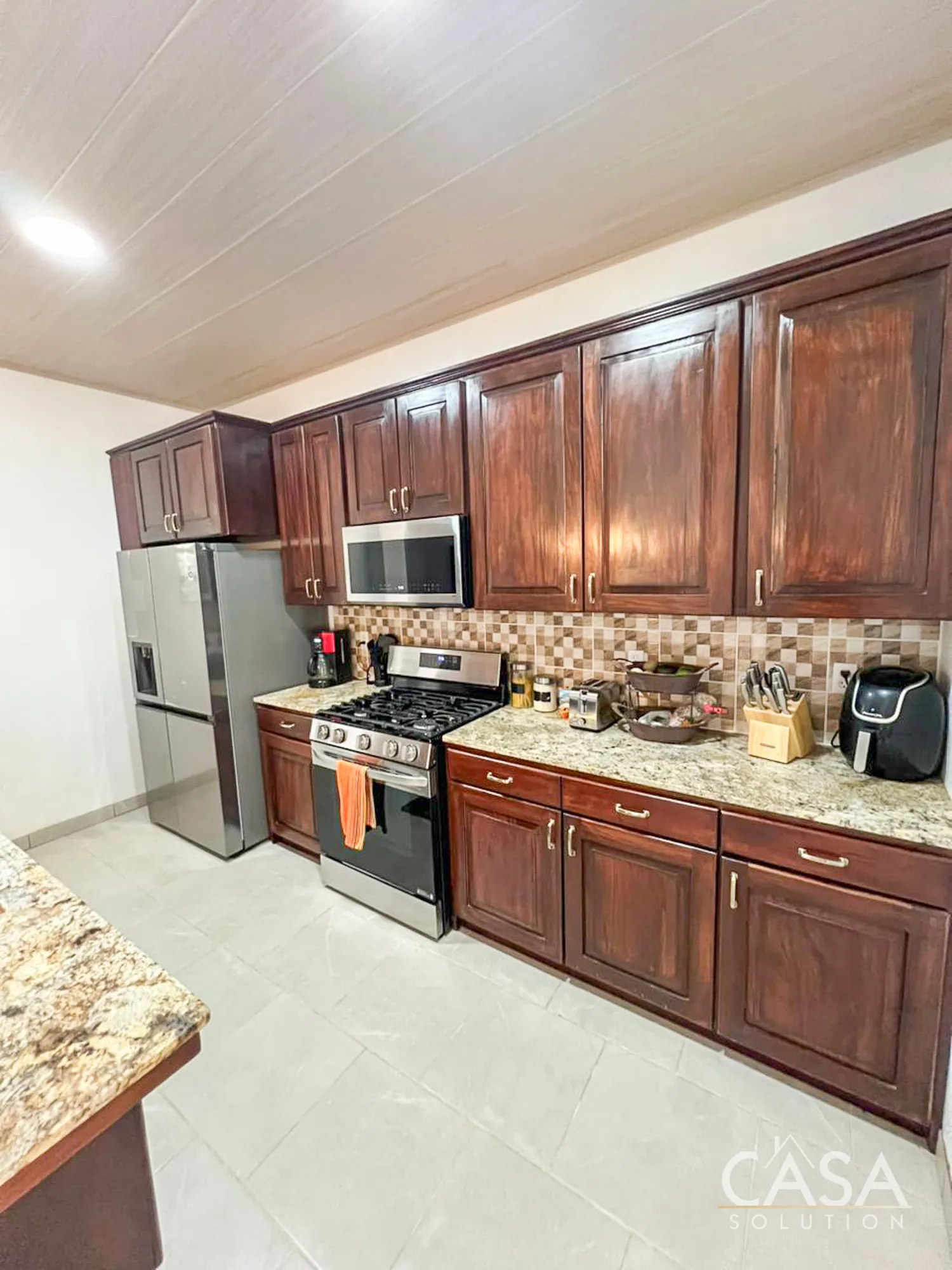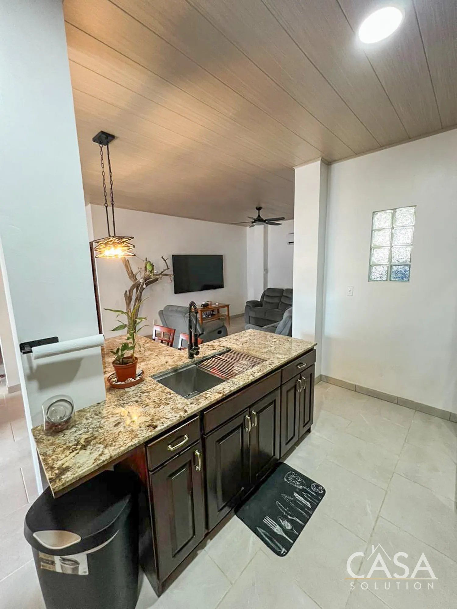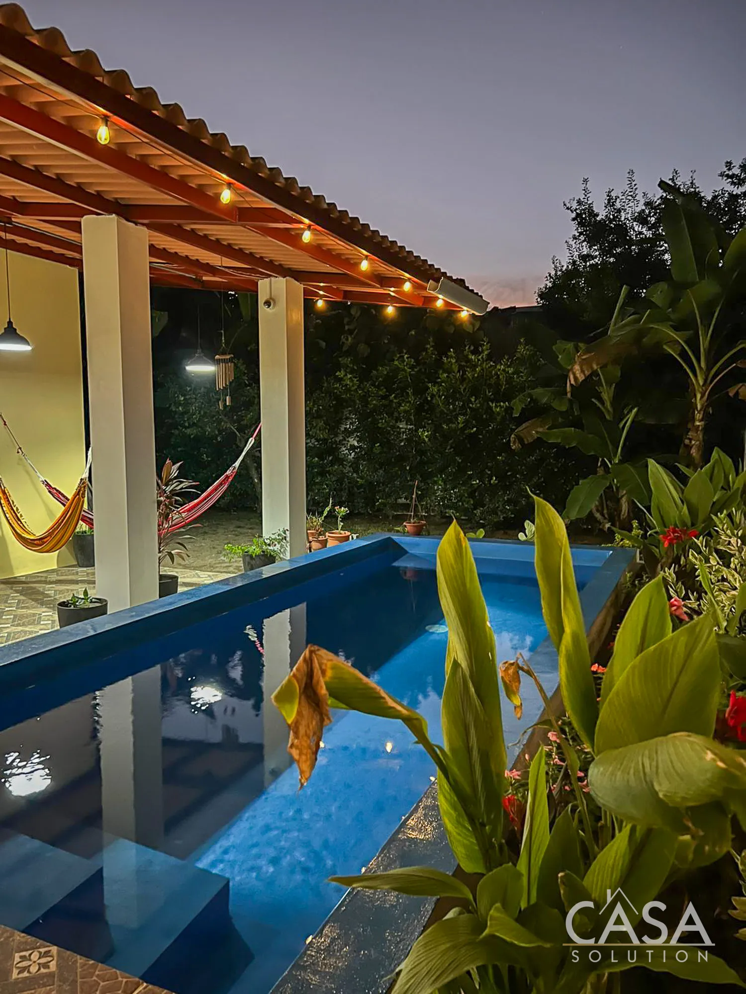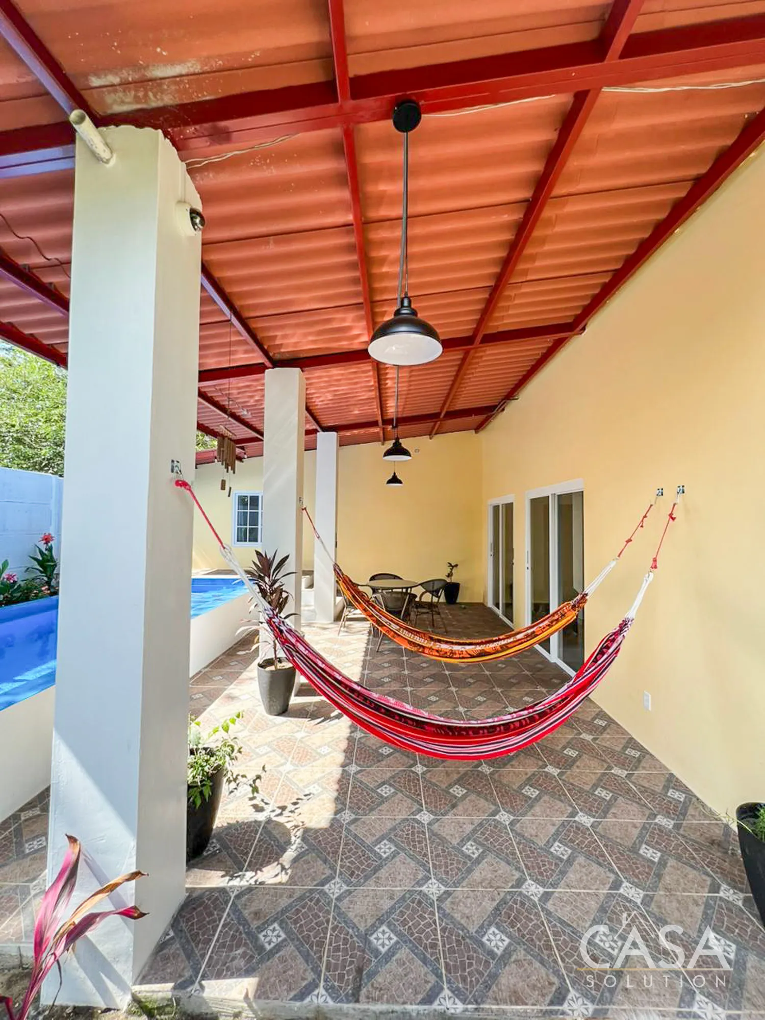 Please contact Casa Solution if you would like to view this property or have questions about this Furnished 2-bedroom home for sale in Puerto Armuelles, Chiriquí. Features include a pool, solar panels, garden with fruit trees, and gated access—just 3 minutes from the ocean