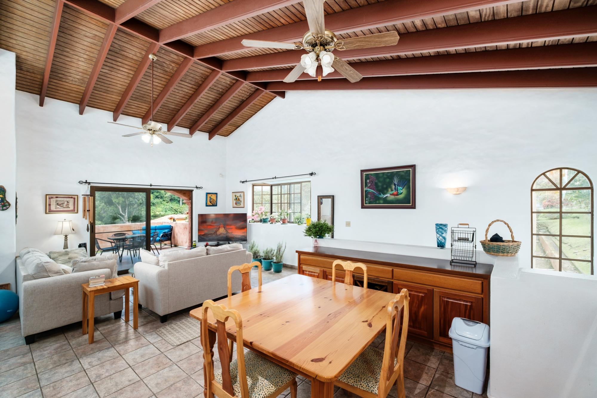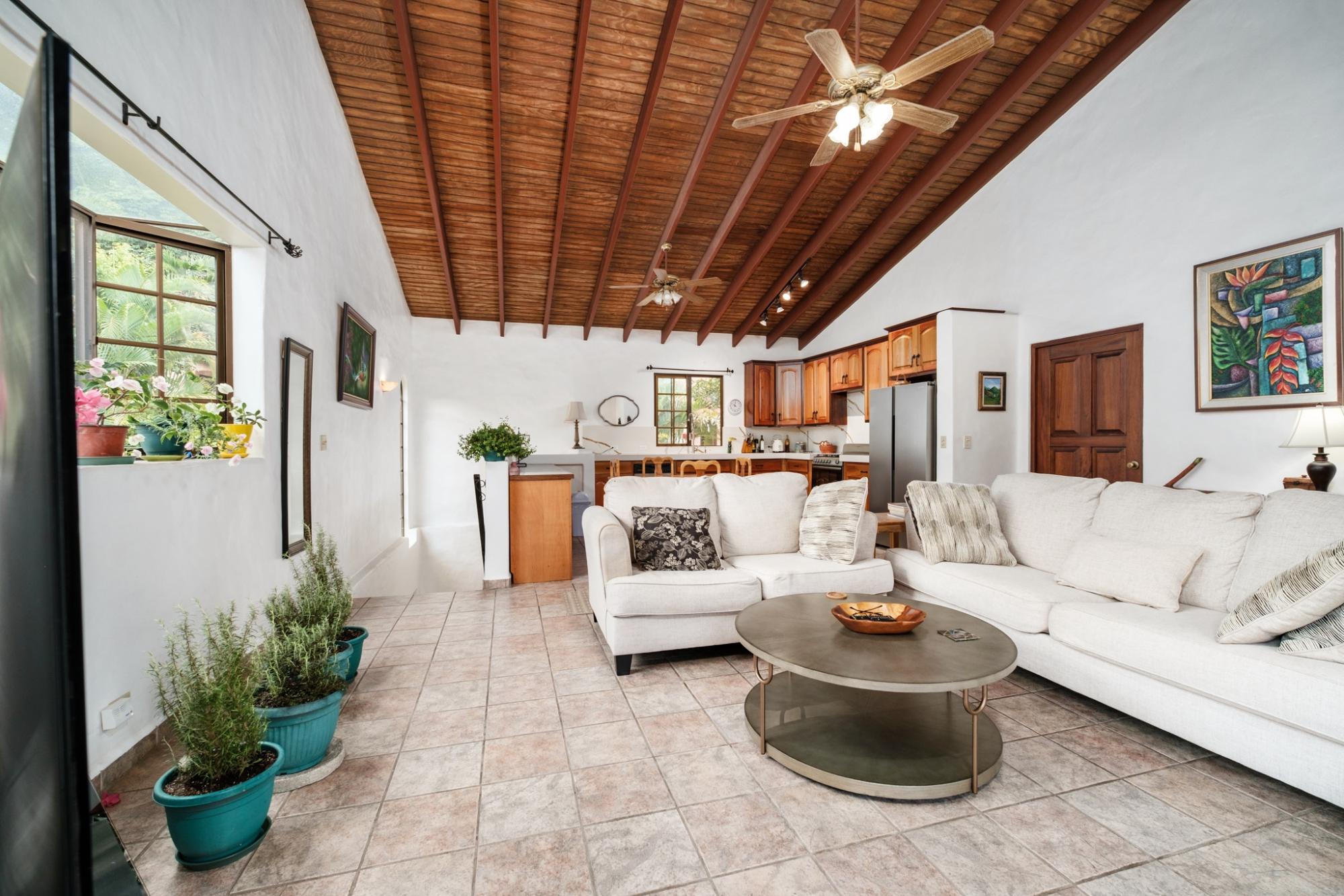 Located in Boquete’s premier gated community of Valle Escondido, this beautifully maintained two-level home offers 2 bedrooms, 2 bathrooms, and a flexible lower-level space ideal for guests, a studio, or an office. The main floor features hardwood ceilings, abundant natural light, and a large balcony with gorgeous mountain views. The home is fully furnished and in excellent condition. Whether you’re retiring, just starting out, or looking for a second home or rental, this is an excellent opportunity in a rising market. Valle Escondido offers 24-hour security, paved roads, underground utilities, and beautifully landscaped grounds. Optional amenities include golf, spa, gym, tennis, an indoor pool, and a restaurant. The location is central yet quiet and just a short walk to downtown Boquete's vibrant coffee shops, farmers market, and restaurants. Don’t miss this chance to grab a great deal before Boquete’s next real estate boom.