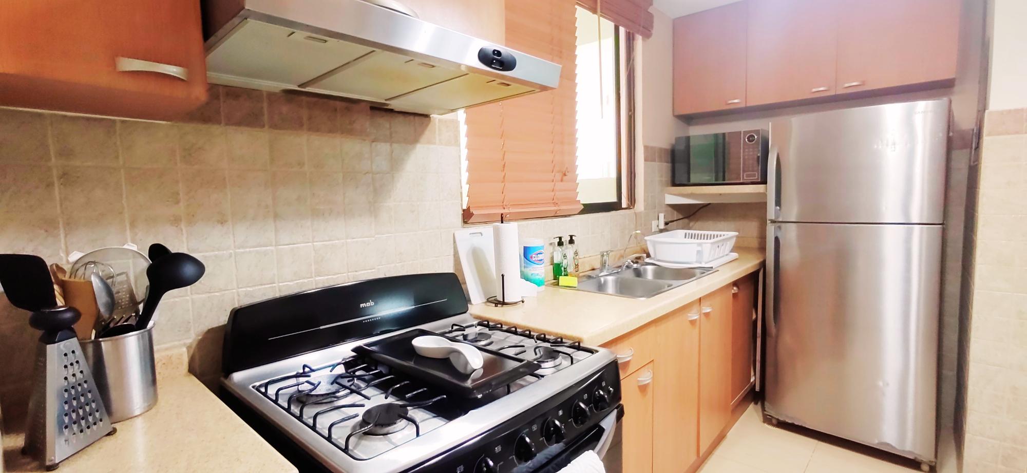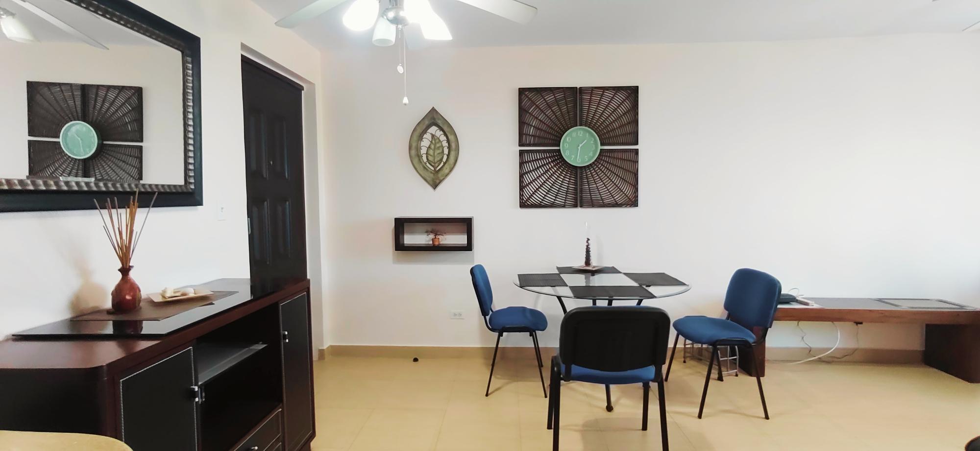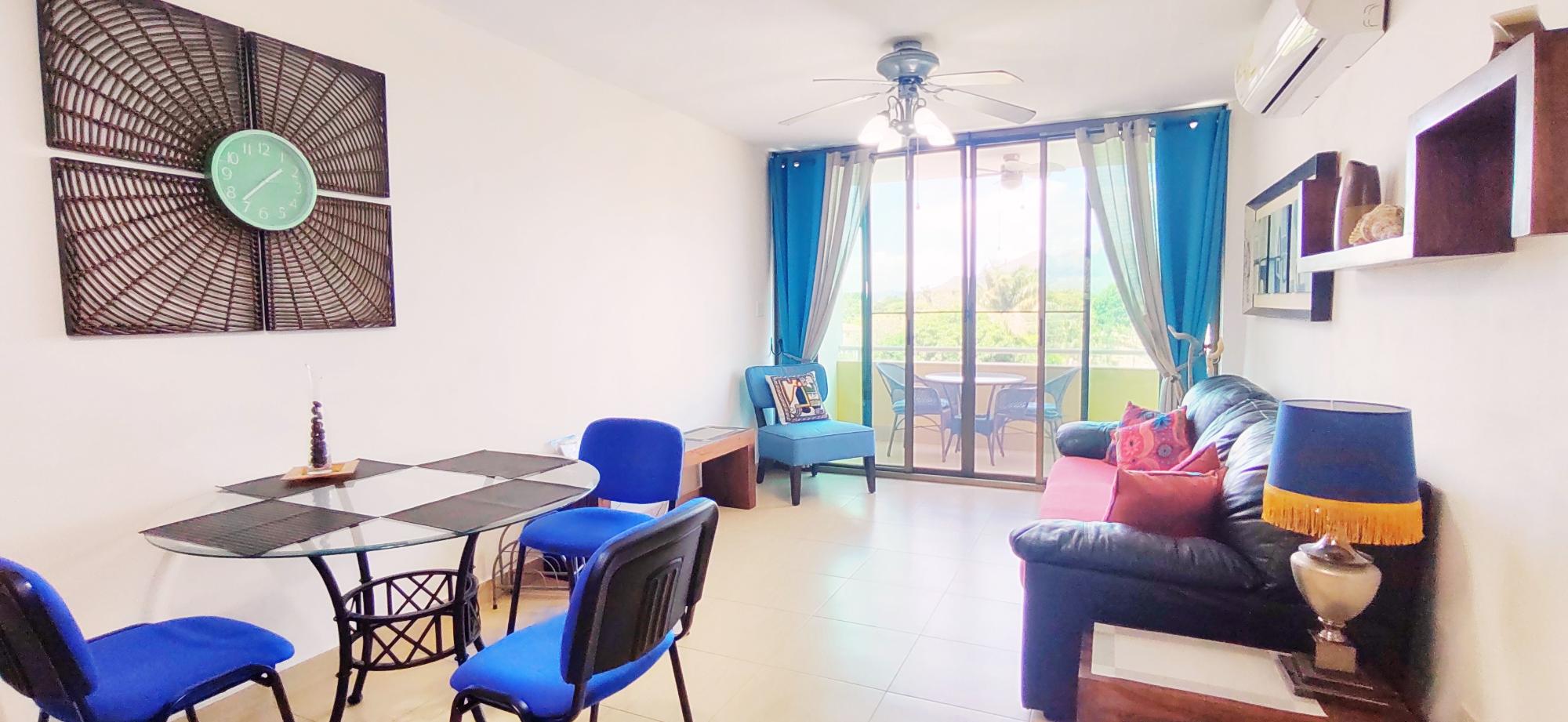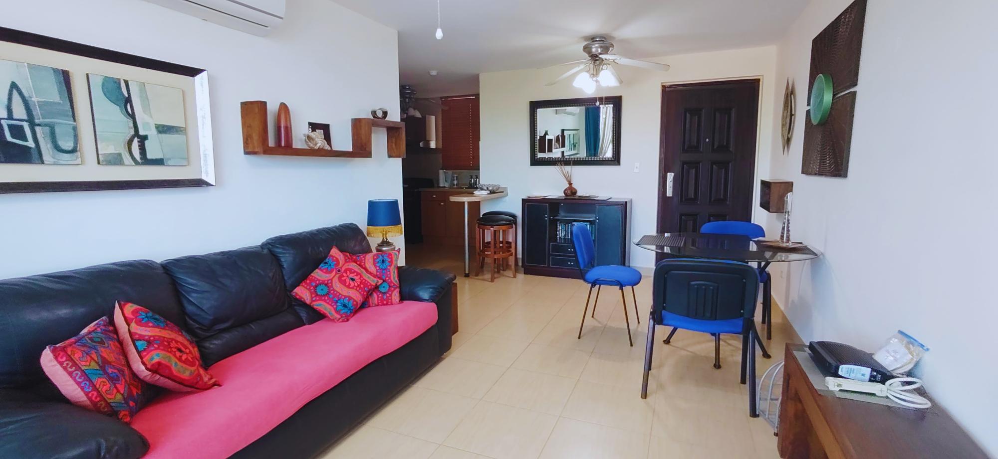 A fully furnished and move-in-ready apartment is offered for rent in the exclusive PH Gorgona Ocean Front, located just a one-minute walk from the beach. Designed for comfort and the ultimate coastal lifestyle, this unit features three spacious private balconies—one in each bedroom and one in the living area. These outdoor spaces offer unobstructed nature views and a partial ocean view, ensuring excellent cross-ventilation and abundant natural light throughout the home. Property Features: Layout: 2 spacious bedrooms, each with direct access to a private balcony. 1 modern bathroom. Integrated living and dining area leading to the third balcony. Furnishings: The apartment is fully furnished in a contemporary style with vibrant Caribbean accents. Kitchen: Fully equipped with laminate countertops, stainless steel stove and oven, two-door refrigerator, microwave, and wooden cabinetry. Laundry: Dedicated laundry area equipped with a washer/dryer combo. Views: Excellent views of lush green areas and mountains, complemented by a partial sea view from the balconies. Amenities at PH Gorgona Ocean Front: Swimming pools for adults and children. BBQ area and gazebo. 24/7 security and concierge services. Quick and easy beach access (1-minute walk).
