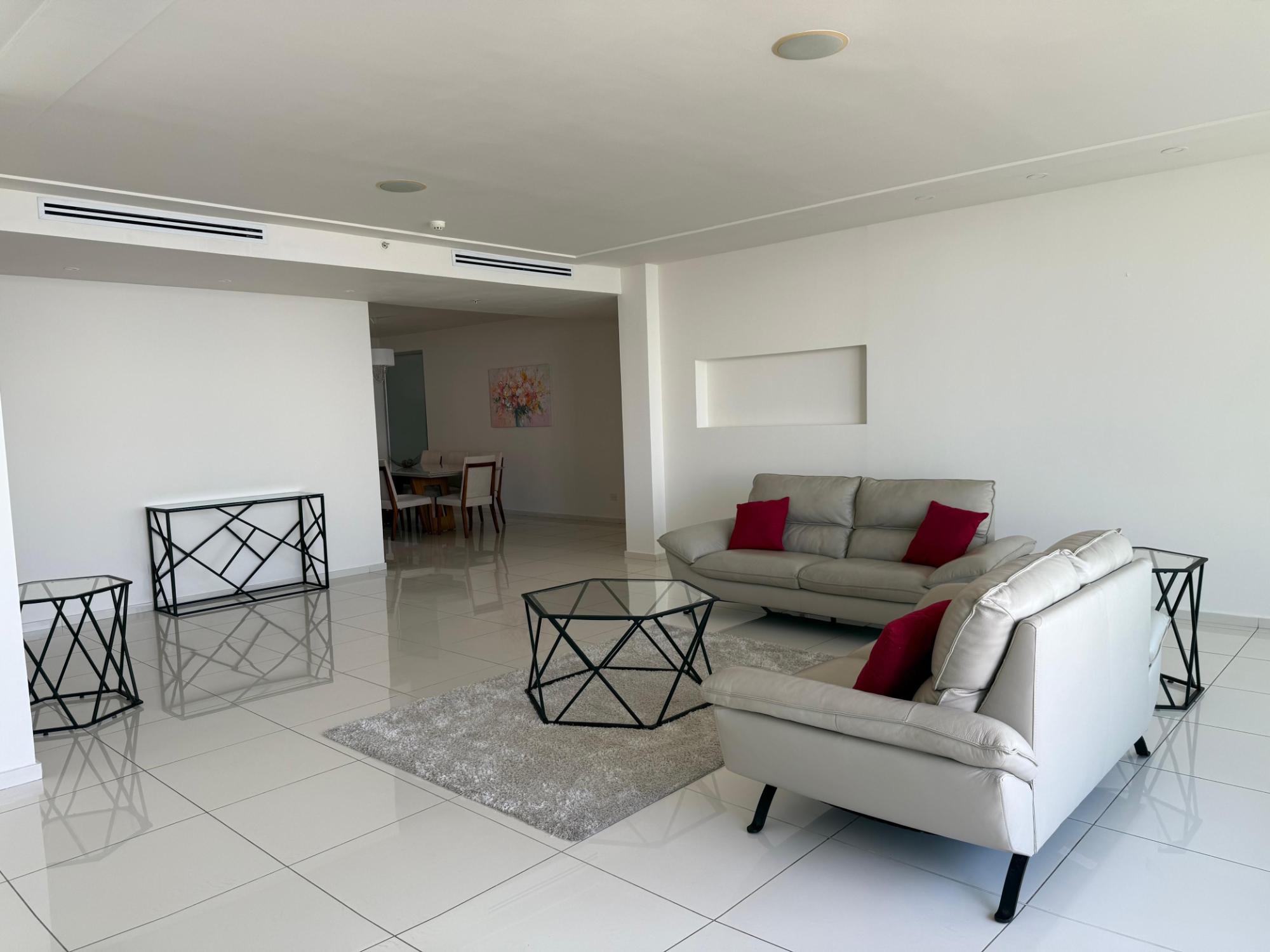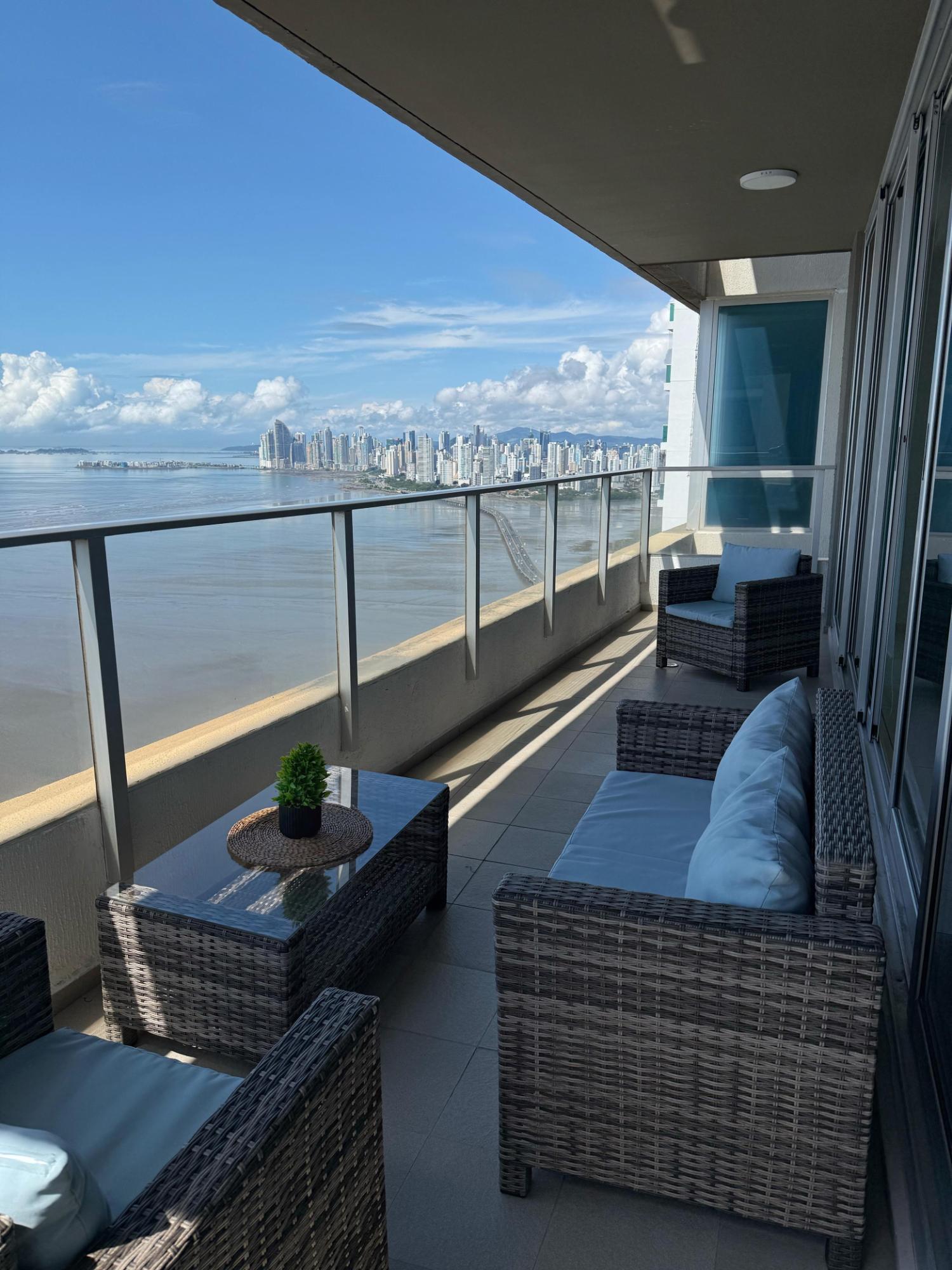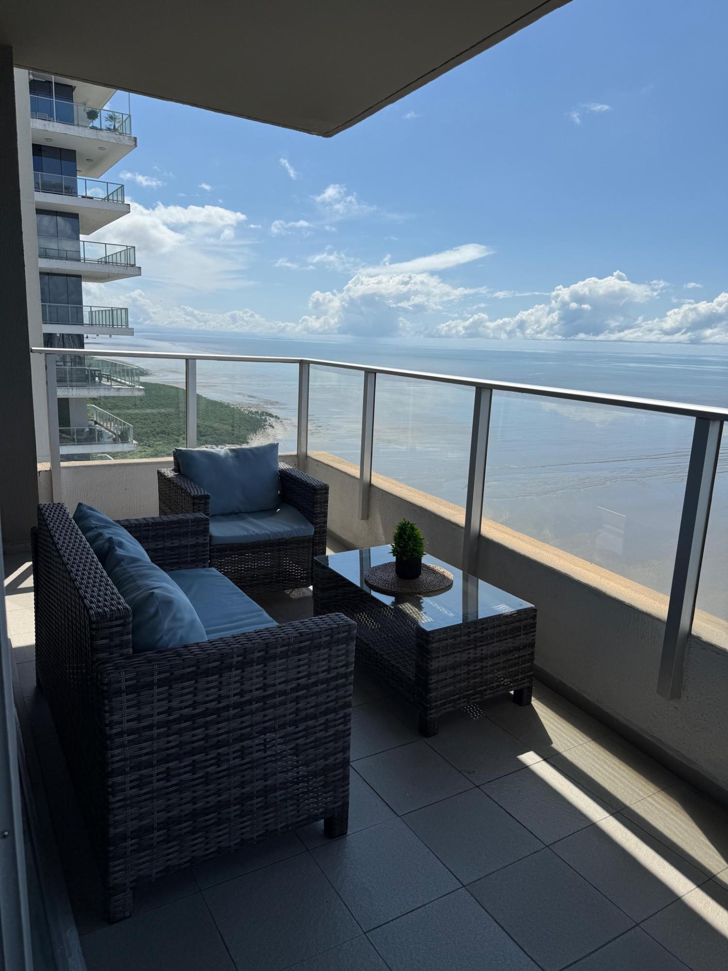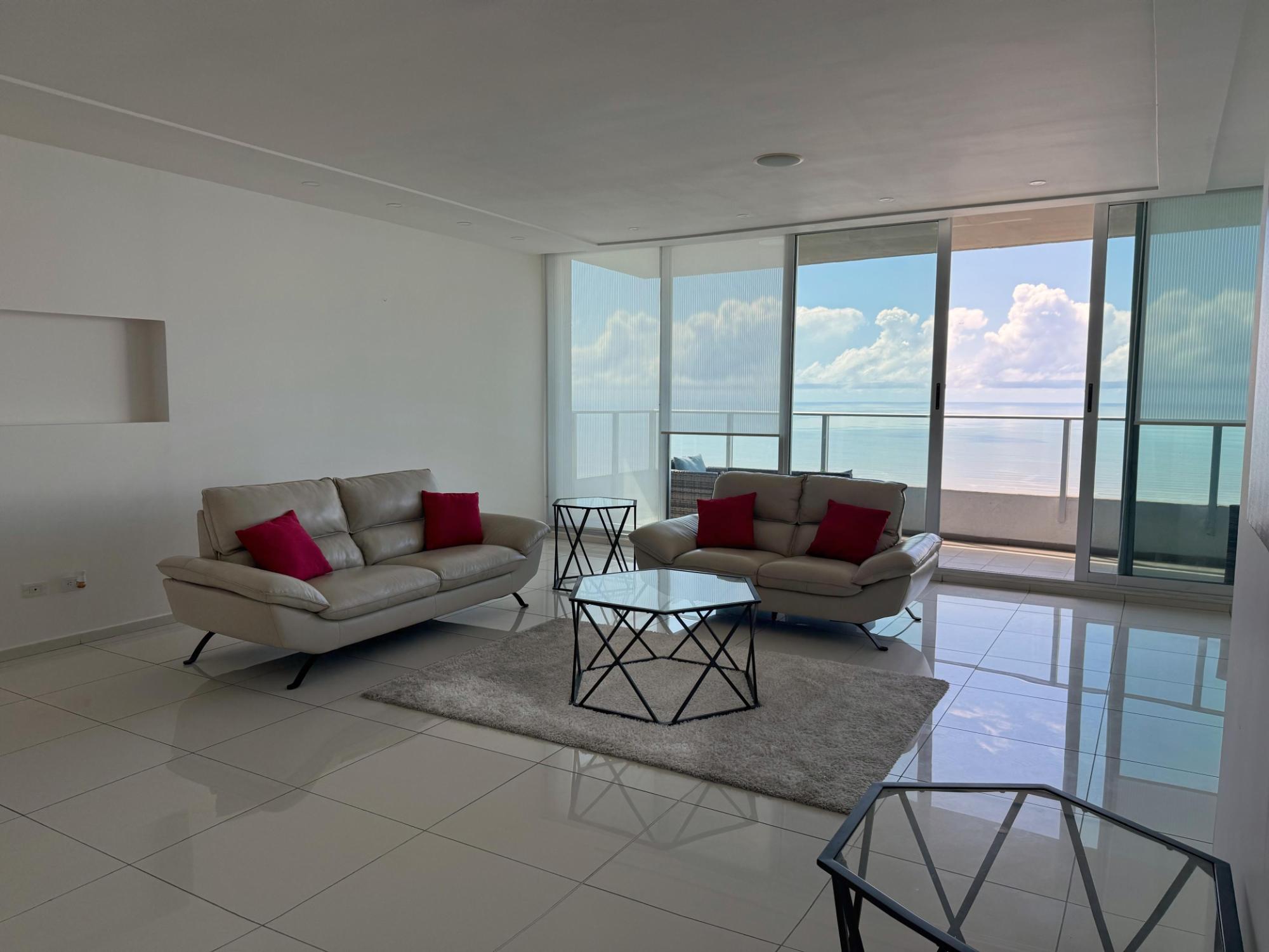 Ubicado en una de las zonas más exclusivas de la Ciudad de Panamá, con vista directa al mar, excelente diseño y distribución. Apartamento de 299 m2 con: • Recámara principal tipo suite con walk incloset, estar interior y jacuzzi, con vista al mar; • Dos recámaras secundarias amplias, cada una con baño privado y walk in closet; • Baño social; • Amplio den; • Estudio; • Balcón; • Sala; • Comedor; • Cocina con isla y desayunador; • Lavandería con tendedero; • Recámara y baño de servicio. • 2 estacionamientos dobles