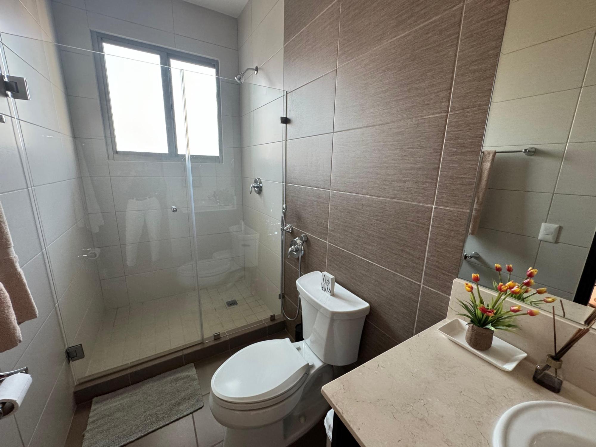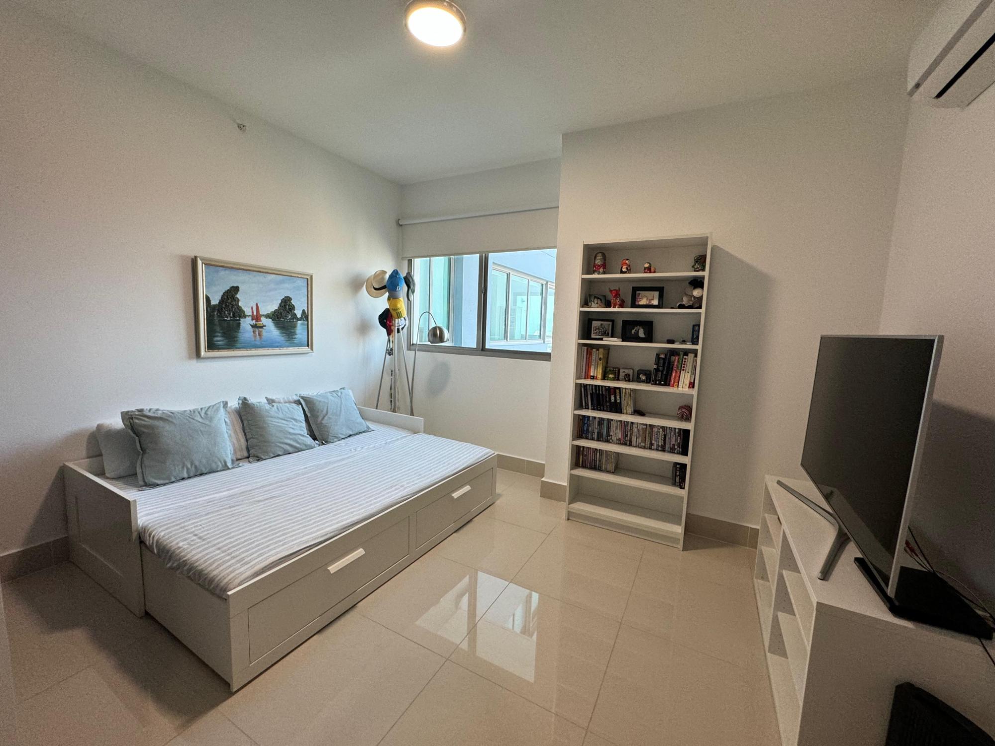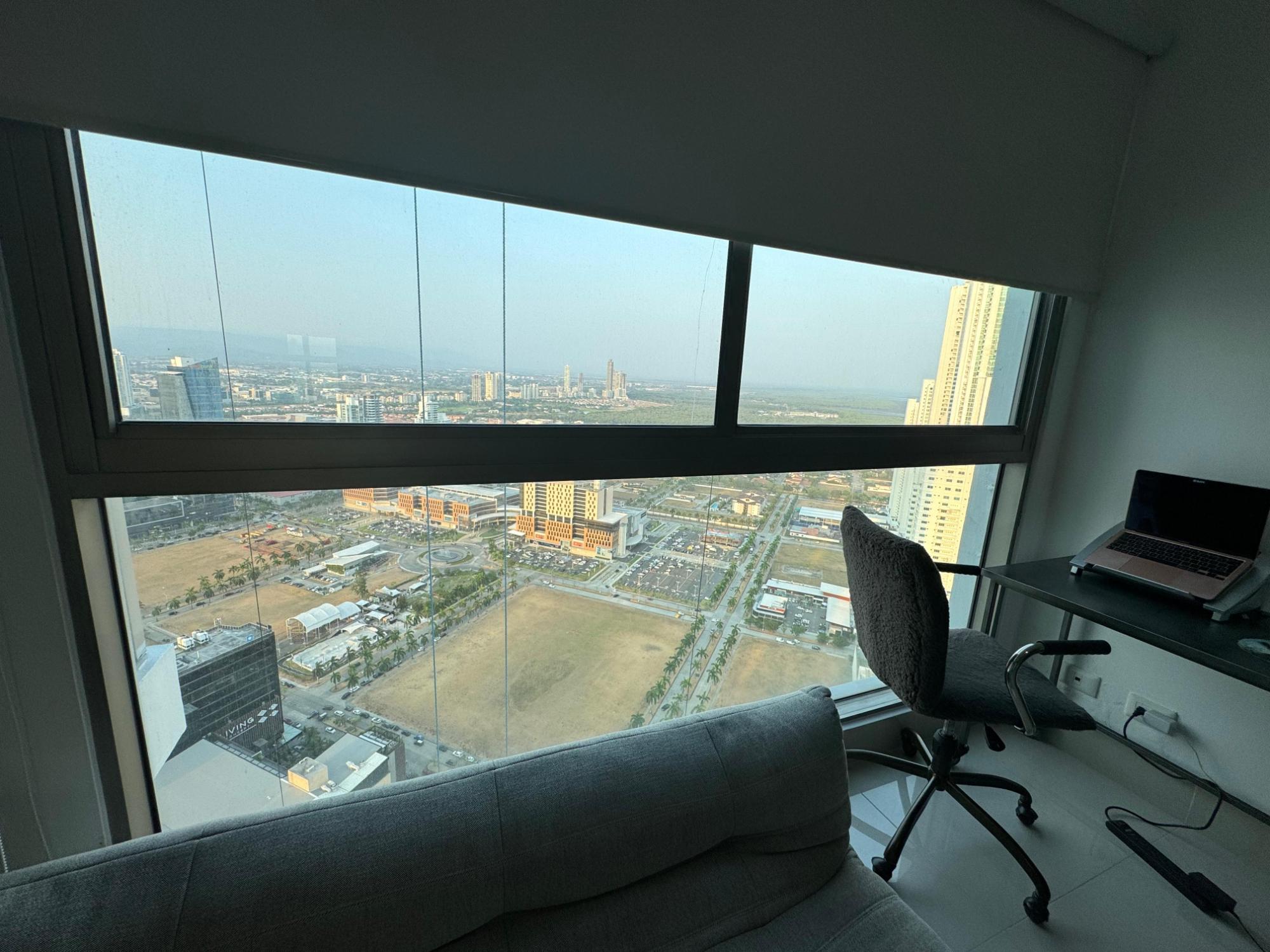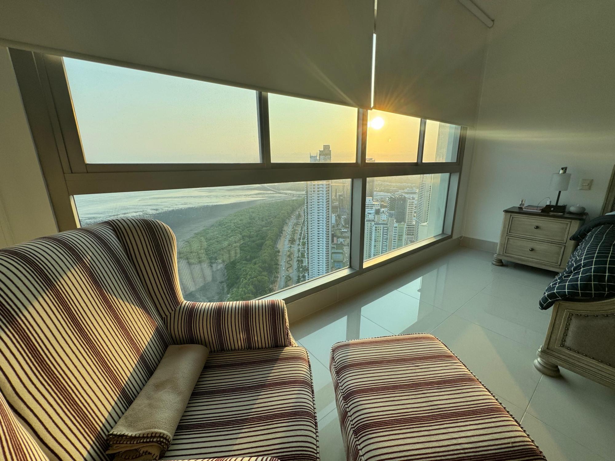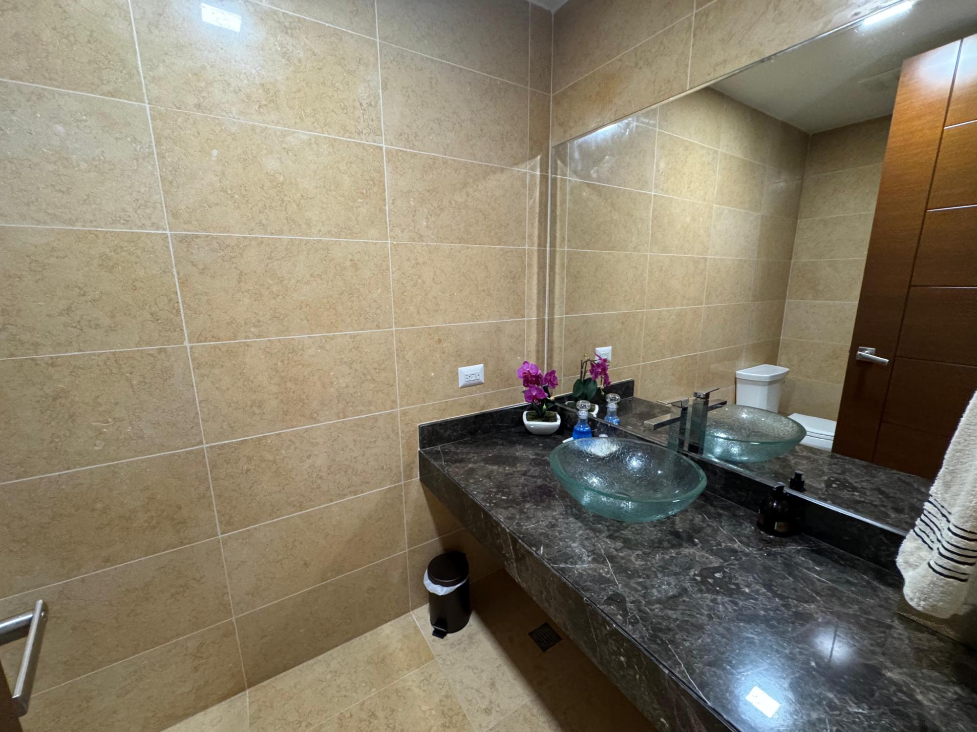 PH Paramount 313 square meters, 3 bedrooms, 3.5 bathrooms, living room, dining room, balcony with ocean and Marine Corridor views, laundry, 3 parking spaces, 1 storage room. It is rented furnished, with appliances, central air conditioning, and split units in bedrooms and kitchen.