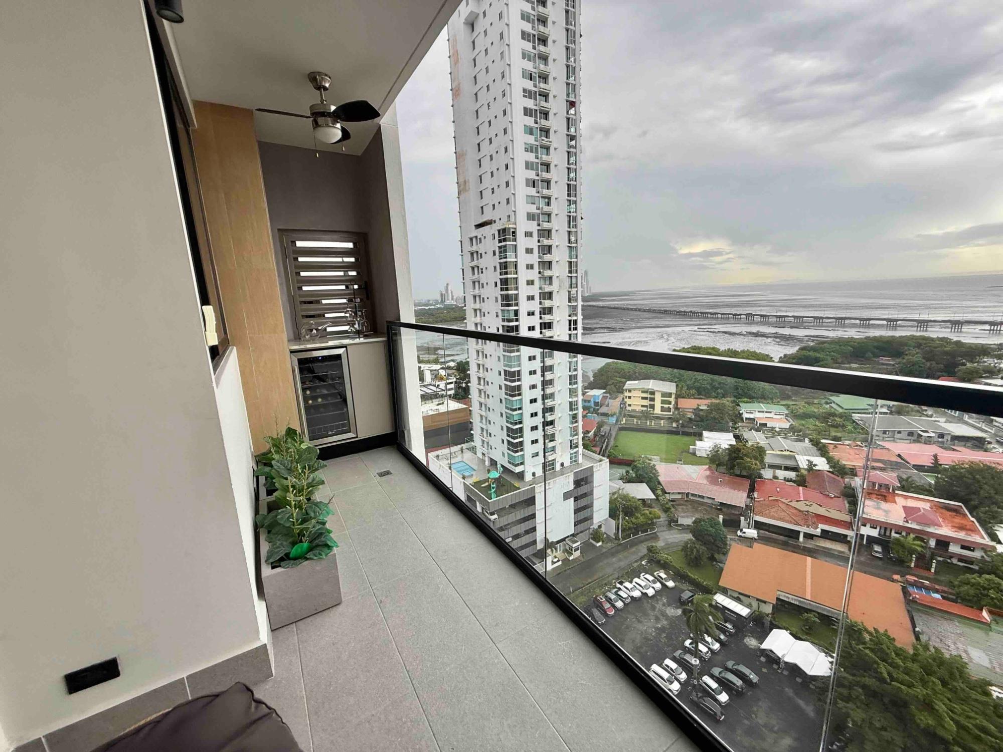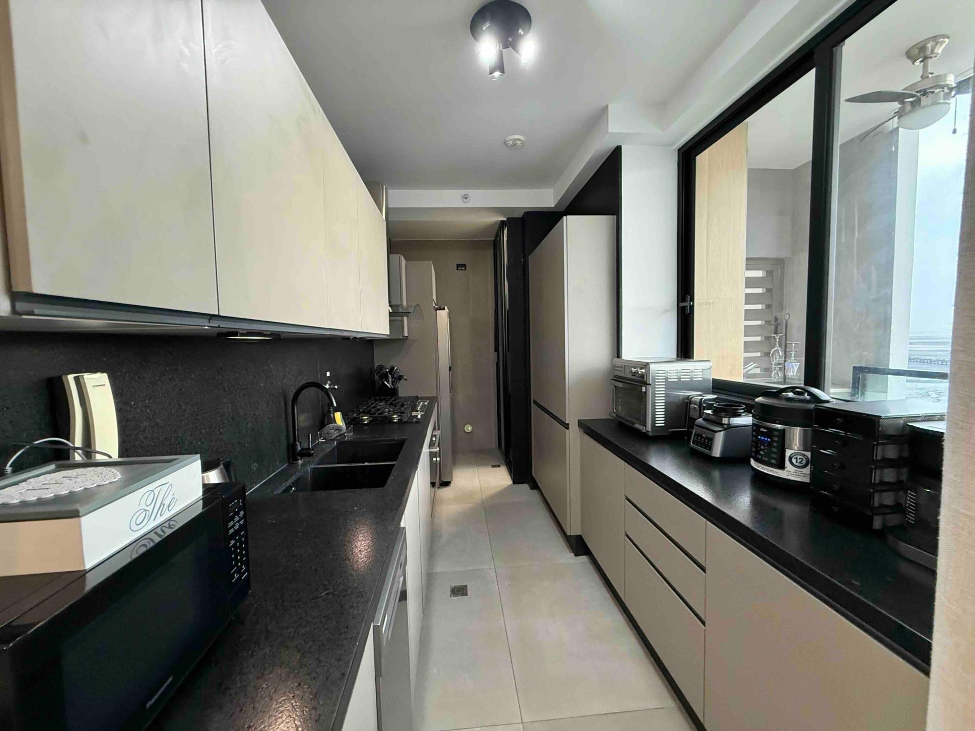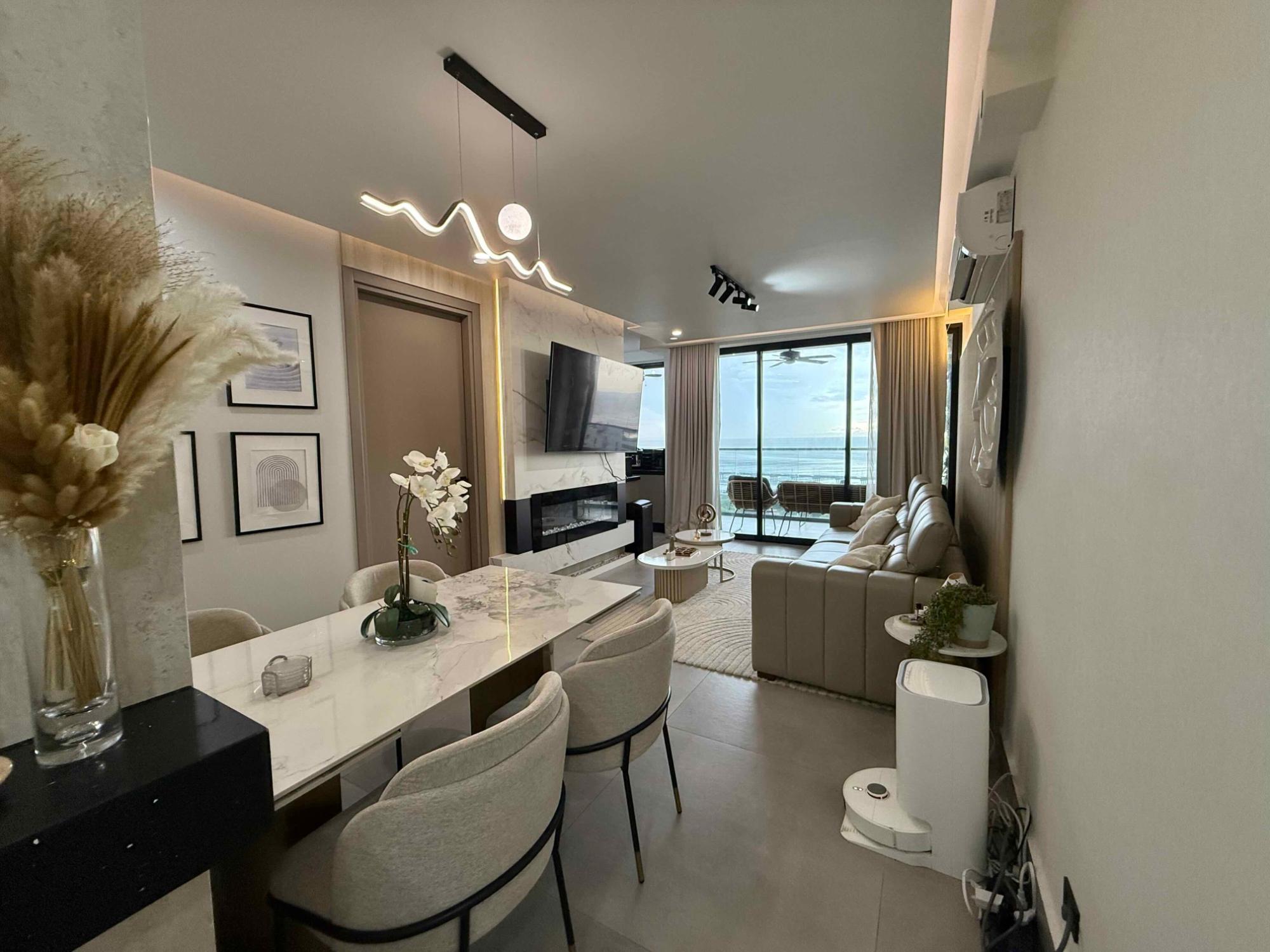 This apartment features 3 bedrooms, 2 bathrooms, a kitchen, a living/dining room, a balcony with ocean views, 2 parking spaces, and a storeroom. The building was constructed 3 years ago and offers numerous amenities, including an outdoor pool, gym, running track, tennis court, spa, movie theater, game room, billiards room, and a private social and coworking area.