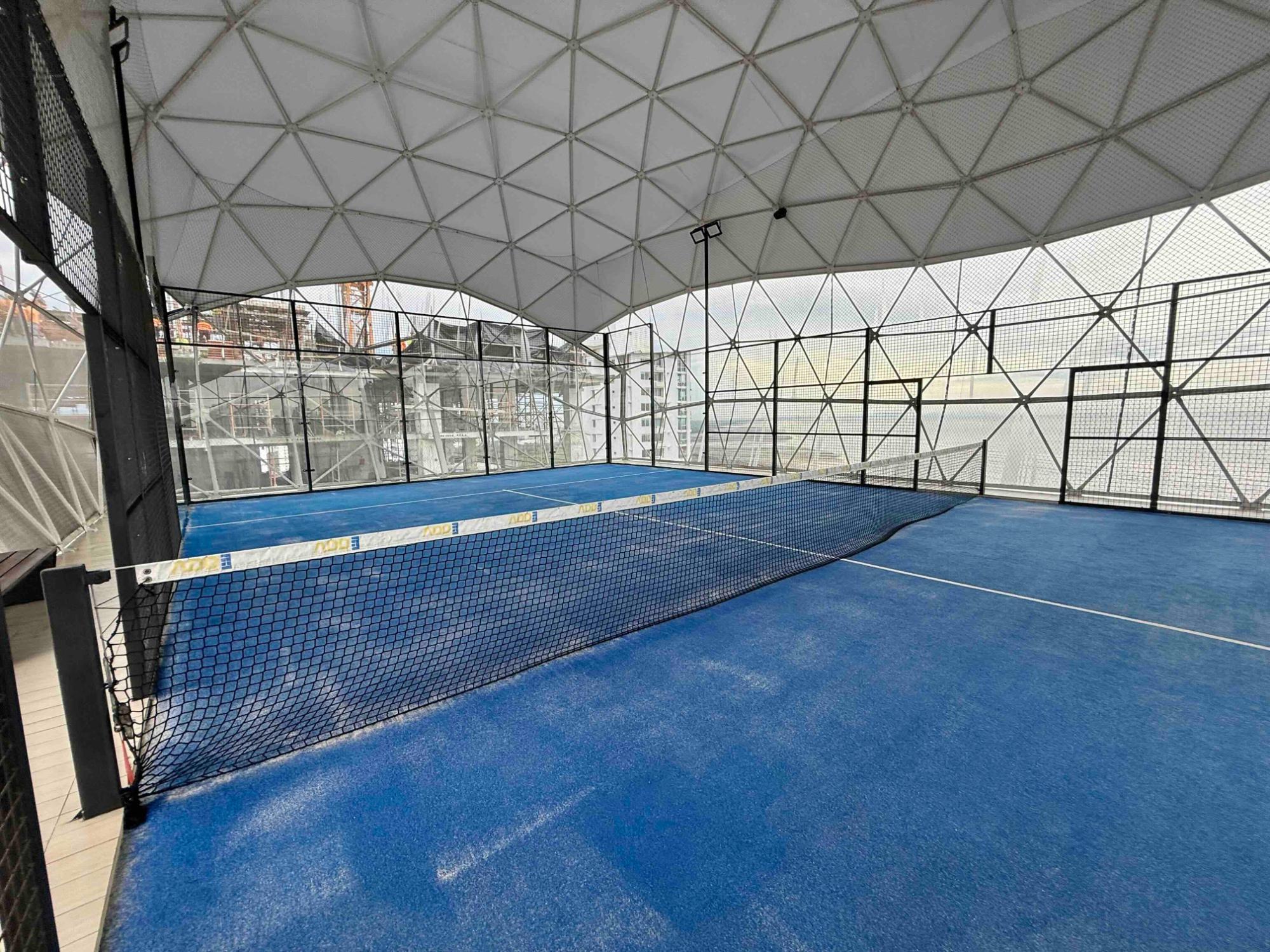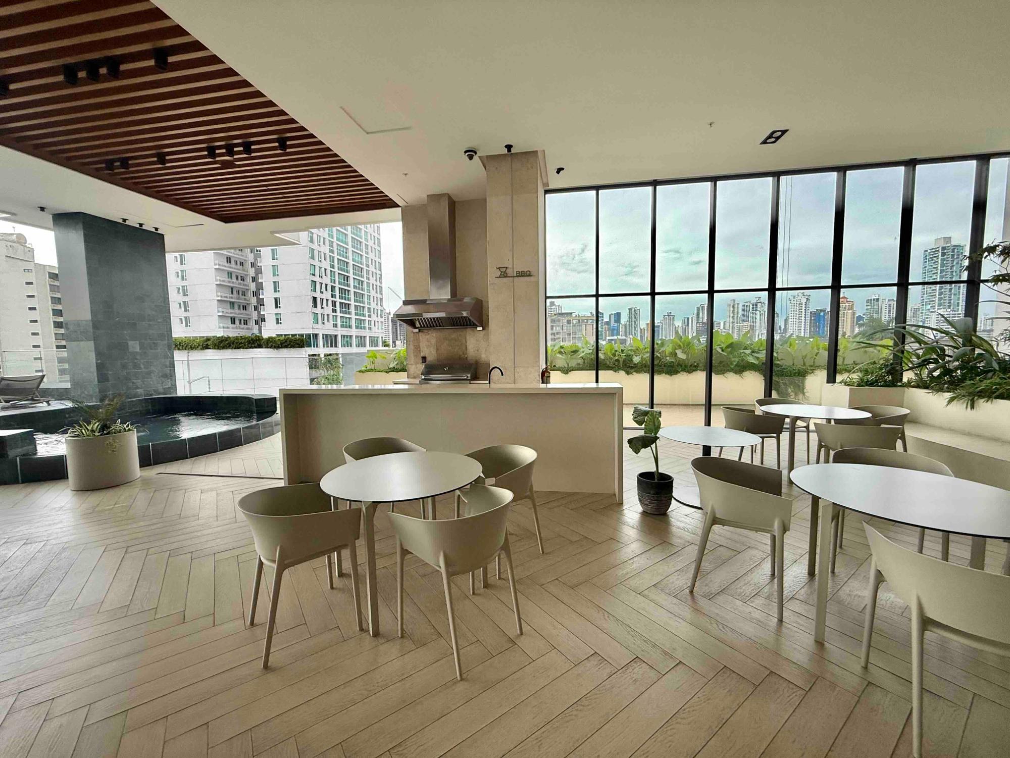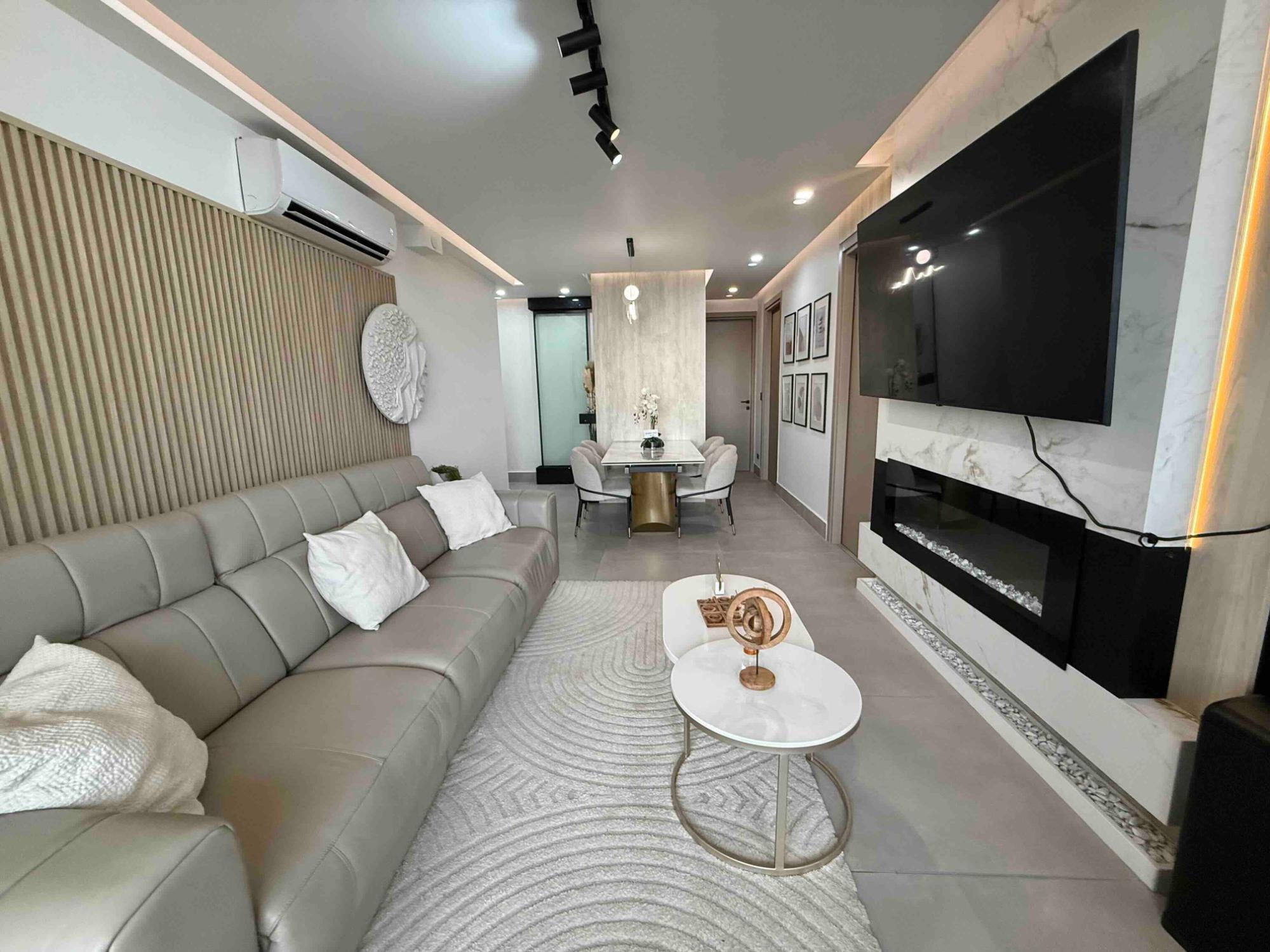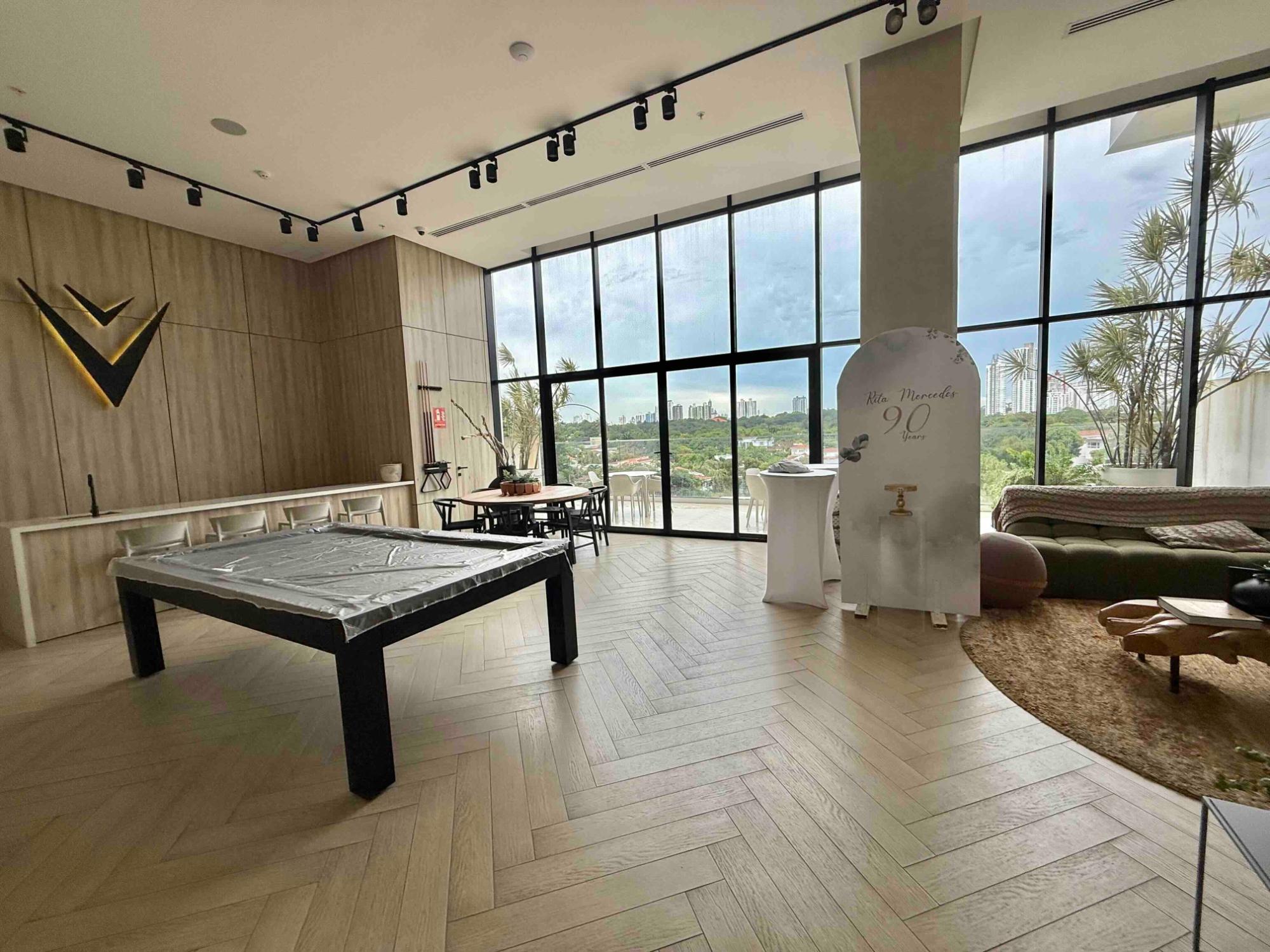 This apartment features 3 bedrooms, 2 bathrooms, a kitchen, a living/dining room, a balcony with ocean views, 2 parking spaces, and a storeroom. The building was constructed 3 years ago and offers numerous amenities, including an outdoor pool, gym, running track, tennis court, spa, movie theater, game room, billiards room, and a private social and coworking area.