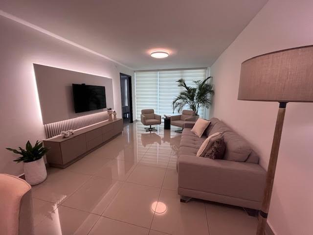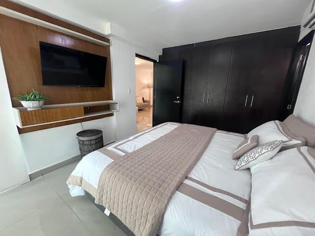 Beautifully furnished apartment for sale on 43rd street meters from Urraca Park and the Cinta Costera. The apartment consists of 3 bedrooms, 2 bathrooms, living room, kitchen, balcony, service room and bathroom and a parking lot. The building has a social area complete with swimming pool, party room, gym, game room, security and concierge.
