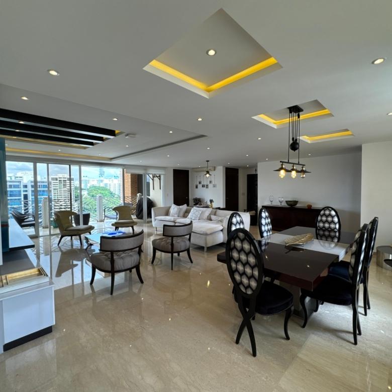 Furnished apartment for rent in PH Portanova – El Cangrejo, Bella Vista. Ideal for families who value space, comfort, and a strategic location. This elegant apartment in PH Portanova offers a practical and exclusive lifestyle in the heart of El Cangrejo, a quiet residential area with everything within reach: schools, supermarkets, restaurants, parks, and quick access to Via España and Transístmica. With only two apartments per floor, you'll enjoy greater privacy and tranquility in a safe and well-maintained environment.