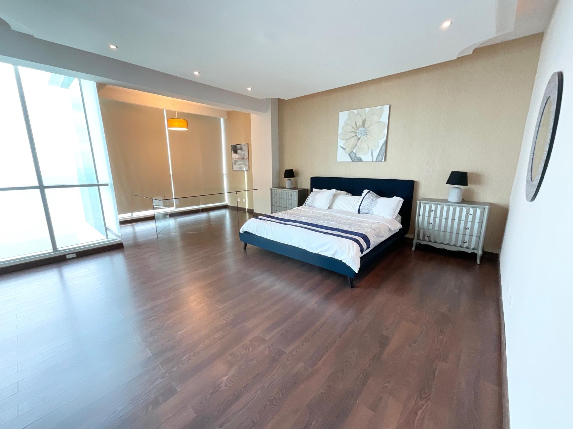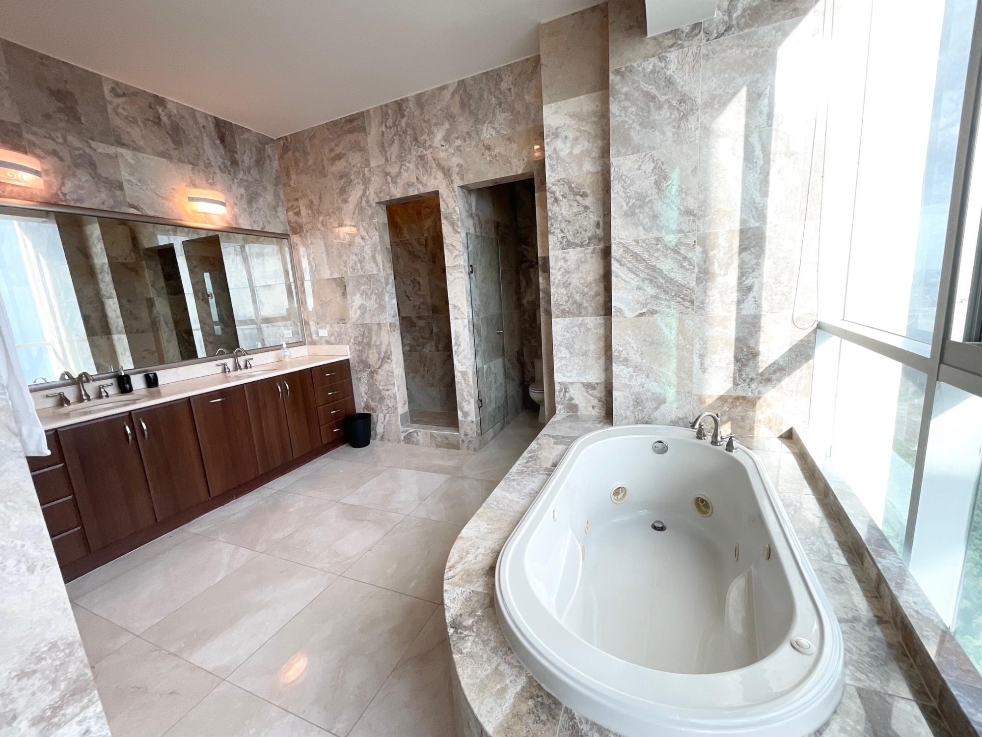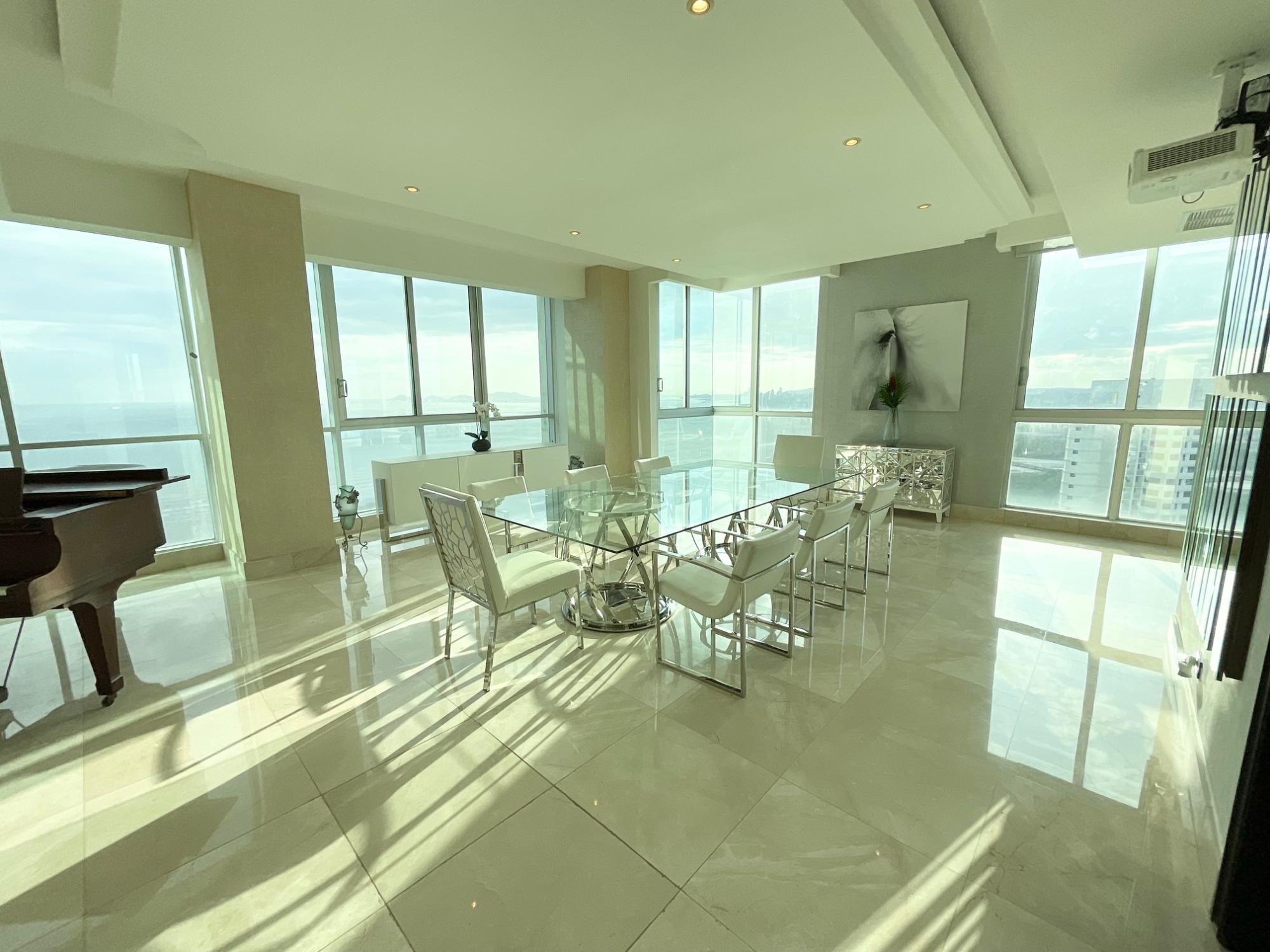 Spectacular fully furnished apartment for rent in the exclusive PH Ocean Two, Costa del Este, with 410 m² distributed in 4 bedrooms, 4.5 bathrooms, a spacious living and dining room, den, breakfast nook, equipped kitchen, laundry room, guest bathroom, and 3 parking spaces. It offers central air conditioning in the social areas and the master bedroom, as well as inverter air conditioning in the secondary rooms. This iconic building offers first-class amenities such as a pool, jacuzzi, sauna, gym, movie theater, sports courts, BBQ area, party room, and much more, ideal for a luxurious and comfortable lifestyle in a prime location in the city.