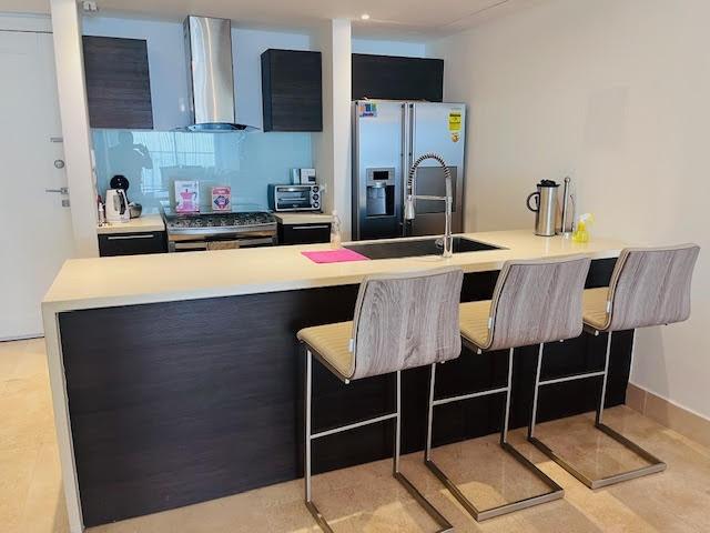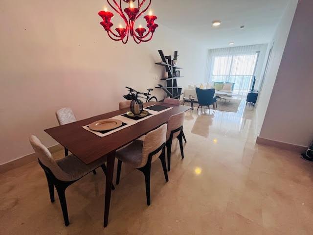 Imagine waking up to a hot cup of coffee and admiring the Bay of Panama from your 66th floor balcony; in one of the best buildings in Panama City and with an impressive view of the Bay of Panama. Furnished apartment with 1 bedroom, 1 bathroom, living room - dining room, guest bathroom, large balcony, 2 closets, kitchen, laundry area and parking. The building has Valet parking, reception, social area complete with swimming pool, gym, poker room, children's play area, restaurants, Spa and more. You should only bring your personal belongings. Don't miss the opportunity to visit before making a decision.