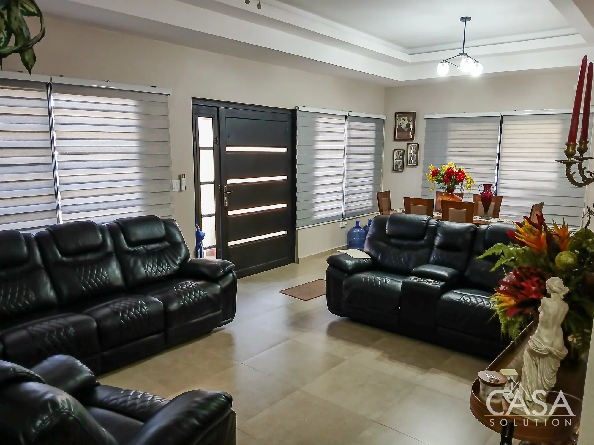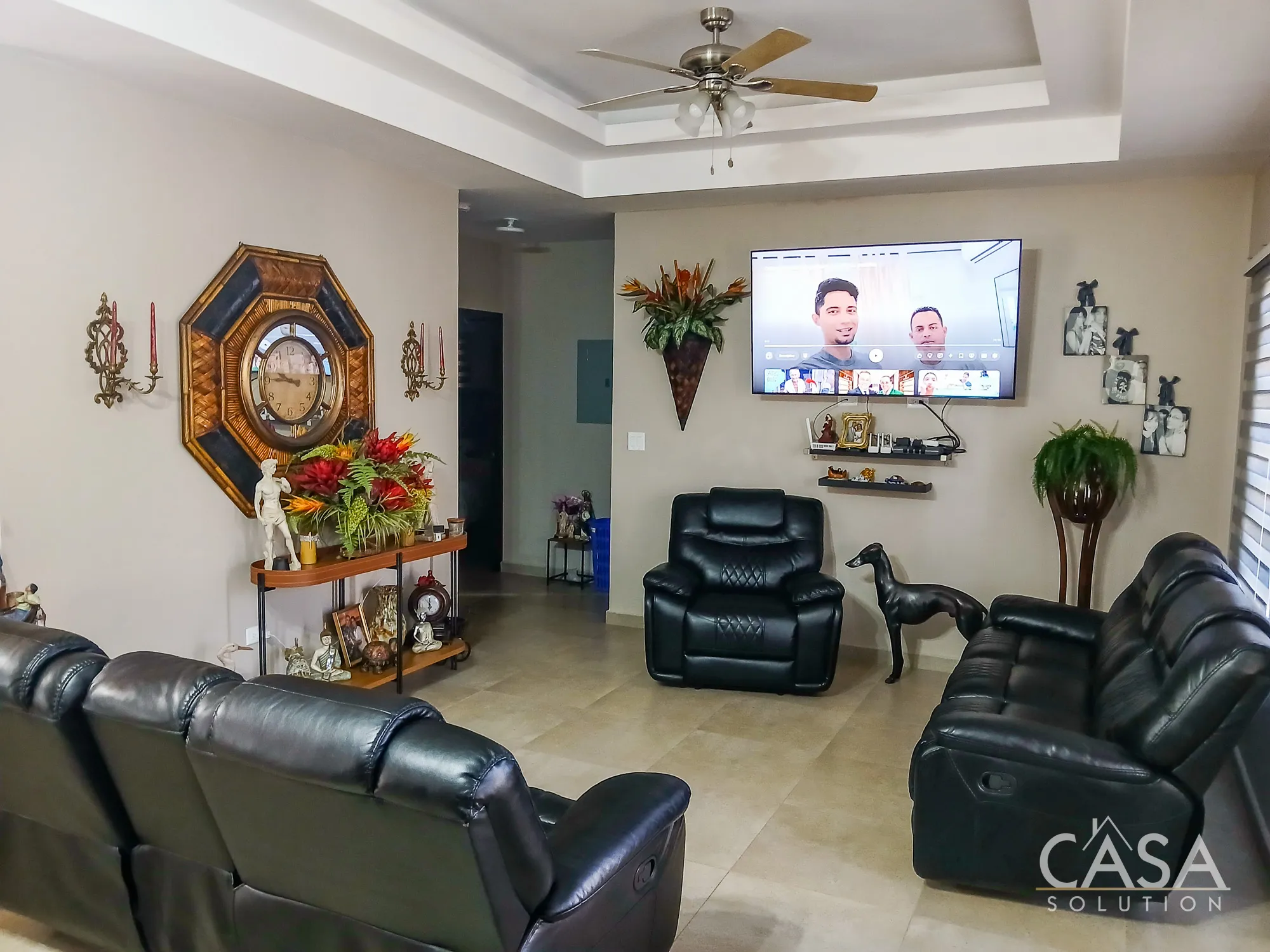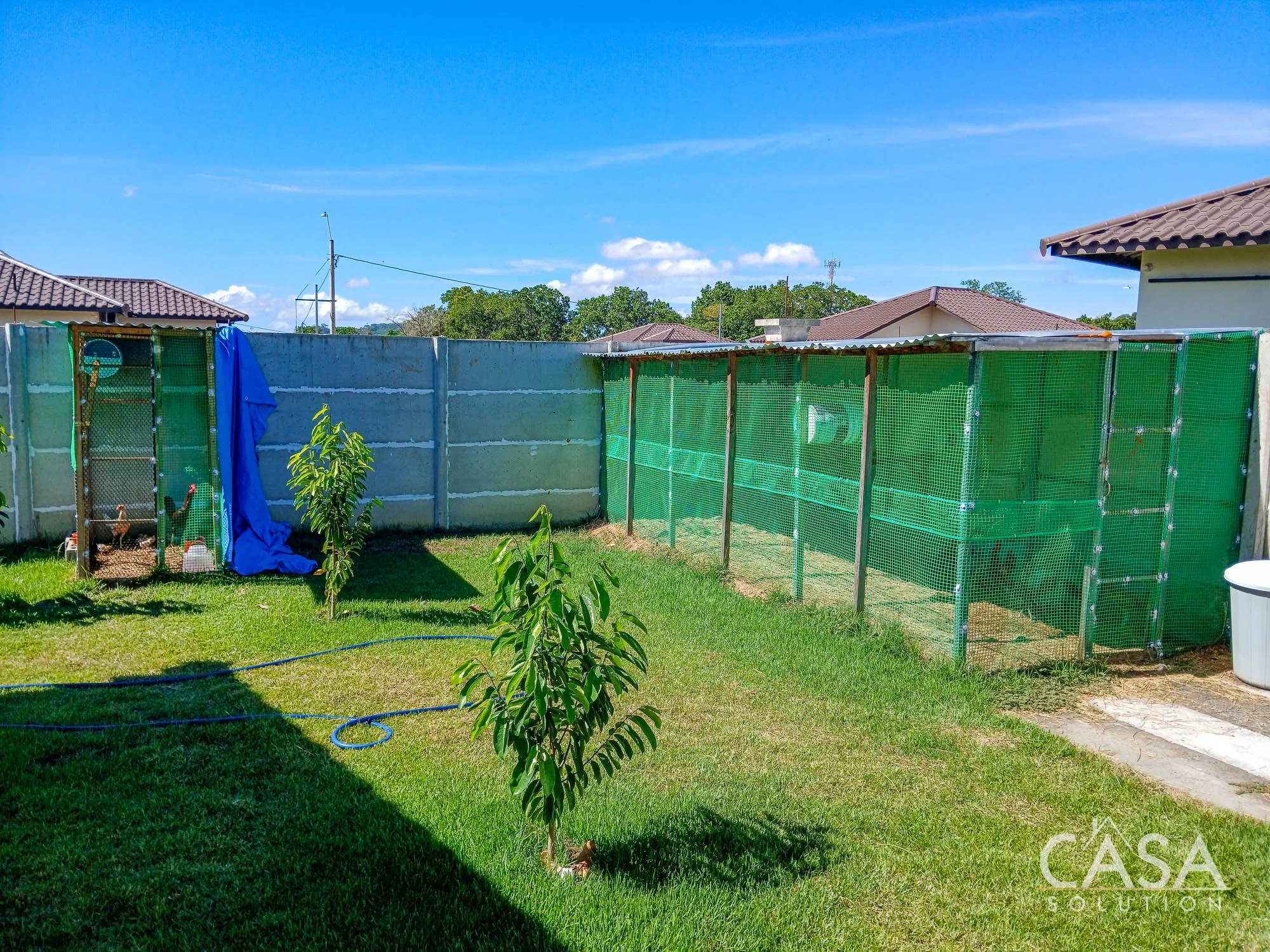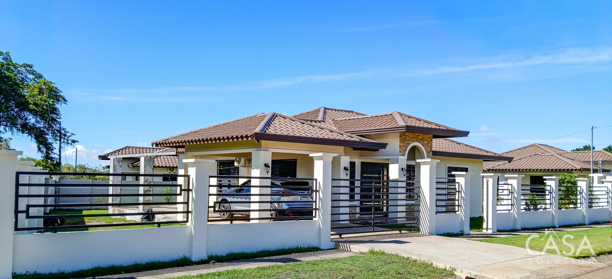 This 3-bedroom home sits in Los Algarrobos, Dolega, on a fully fenced, flat lot with a defined gated entrance and covered parking area. The flat topography makes day-to-day use easier and reduces ongoing maintenance compared to sloped properties.
