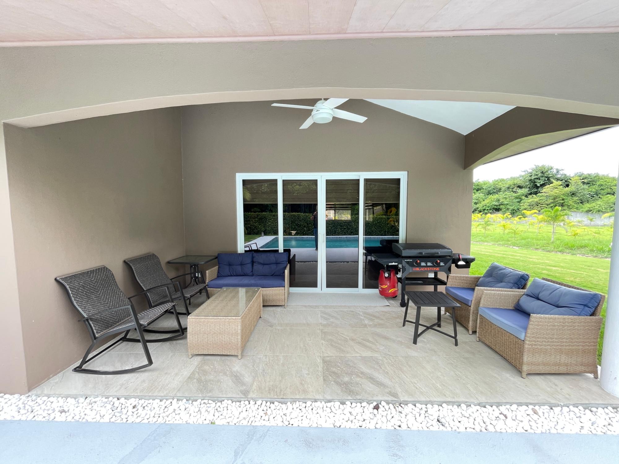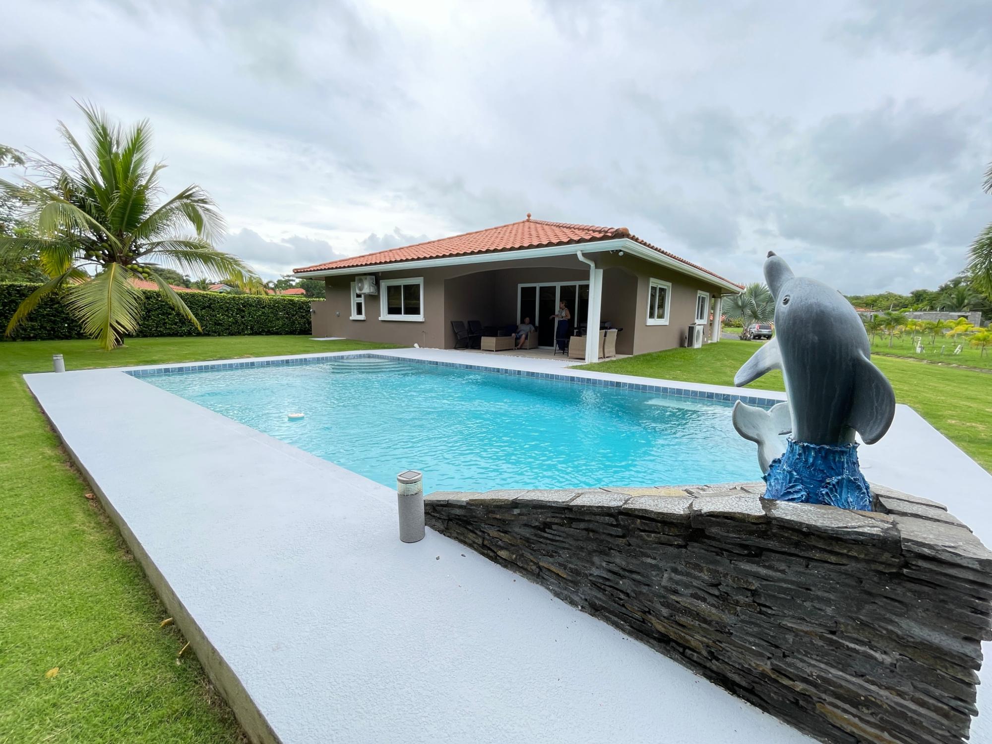 Fully furnished, turn-key home located in a private and secure residential community in Panama Oeste — just 5 minutes from Coronado, 10 minutes from the nearest beach, and 90 minutes from Panama City. Built on a flat 794.51 m² lot with 216.72 m² of living space, this property offers comfort, privacy, and a relaxed lifestyle surrounded by nature. This home features: 3 spacious bedrooms and 2 full bathrooms Open-concept kitchen fully equipped with modern appliances Covered garage for 2 cars Covered terrace Private swimming pool with waterfall surrounded by a tropical garden Automatic gas generator for uninterrupted power Water softener system The community provides well water and a septic system, in a peaceful and secure setting where you wake up to the sound of birds every morning. Perfect as a full-time residence, vacation home, or investment property. 📍 Prime Location: Close to beaches, shopping, schools, restaurants, and the Coronado golf course.