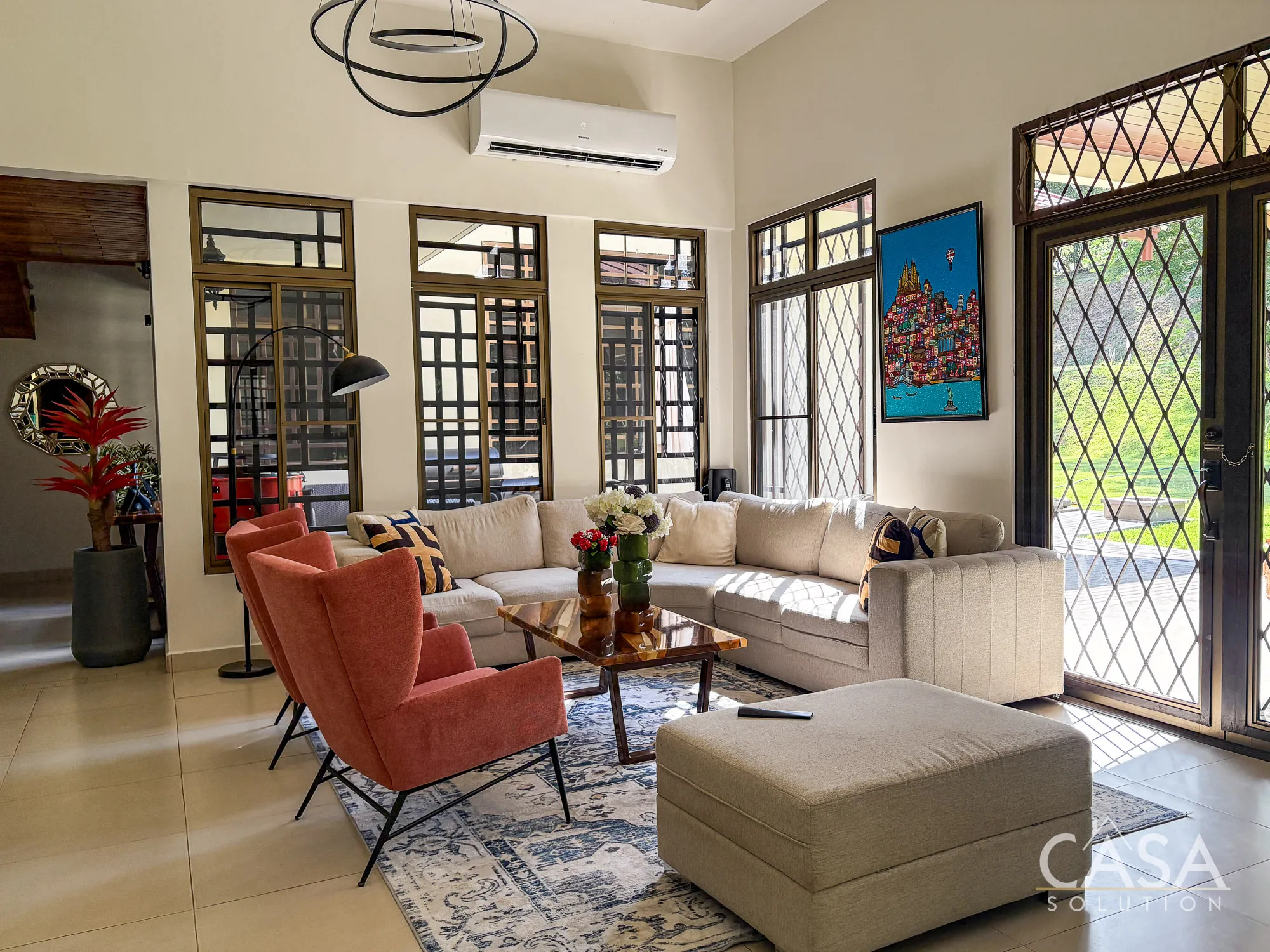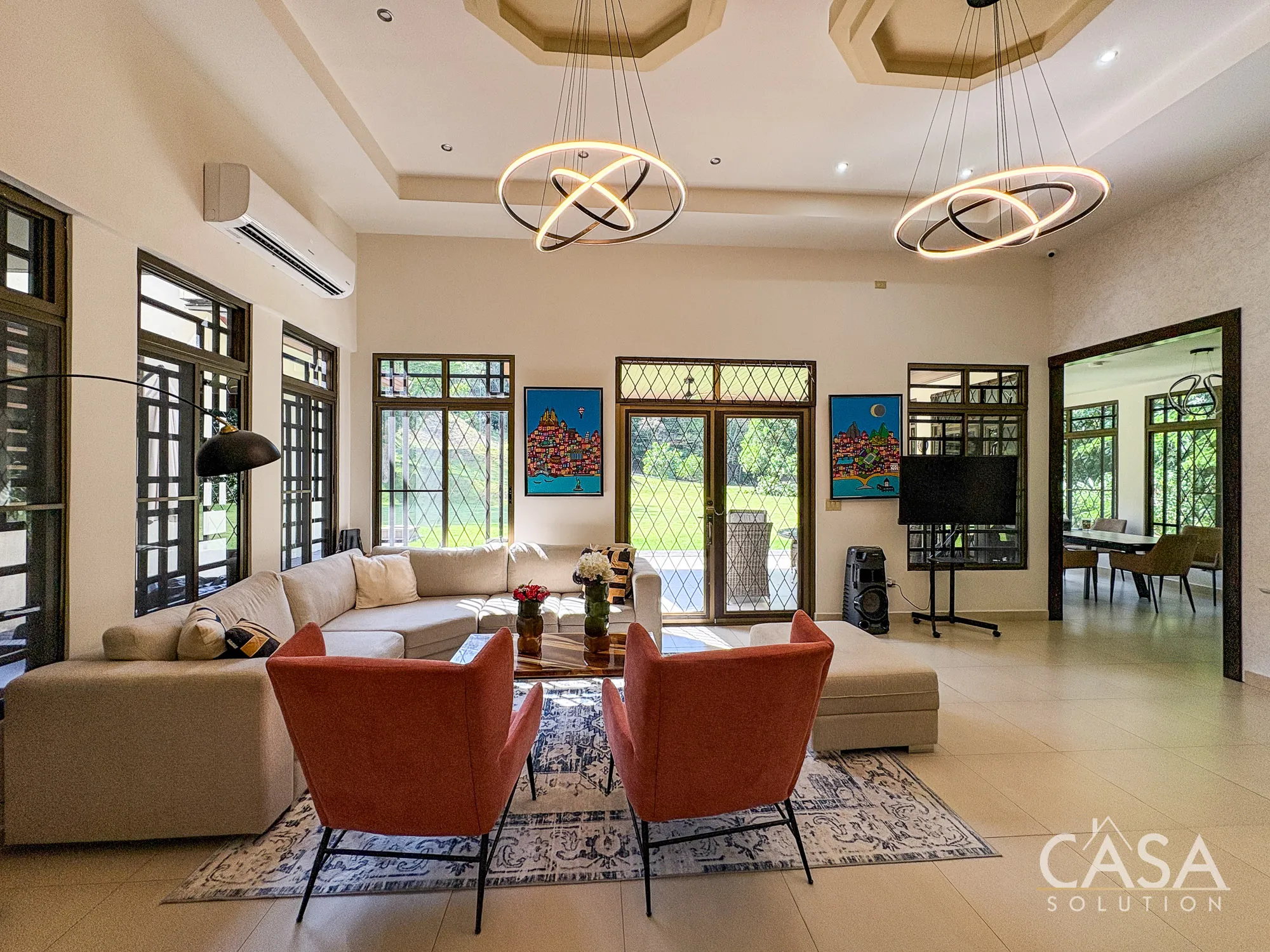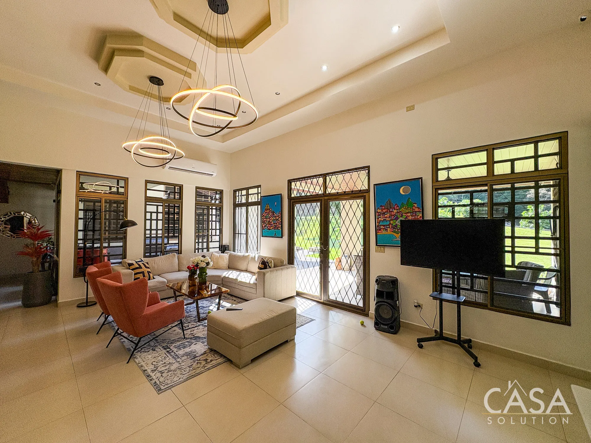 - Double-height ceilings in main living area