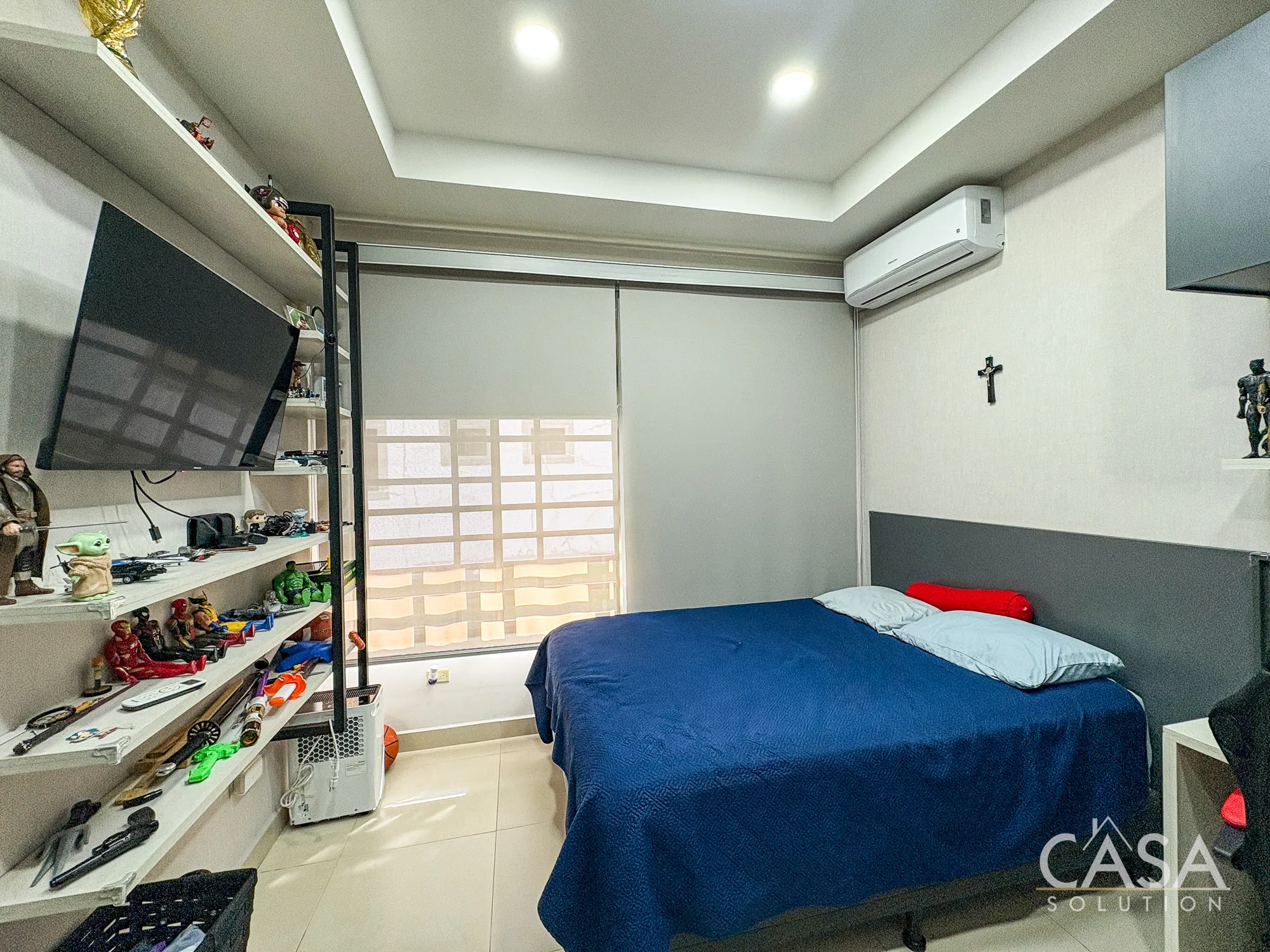 The main bedroom offers a comfortable layout with good natural light and a private bathroom. Additional areas throughout the home provide flexibility, including a separate TV or lounge area that can function as a family room or home office.