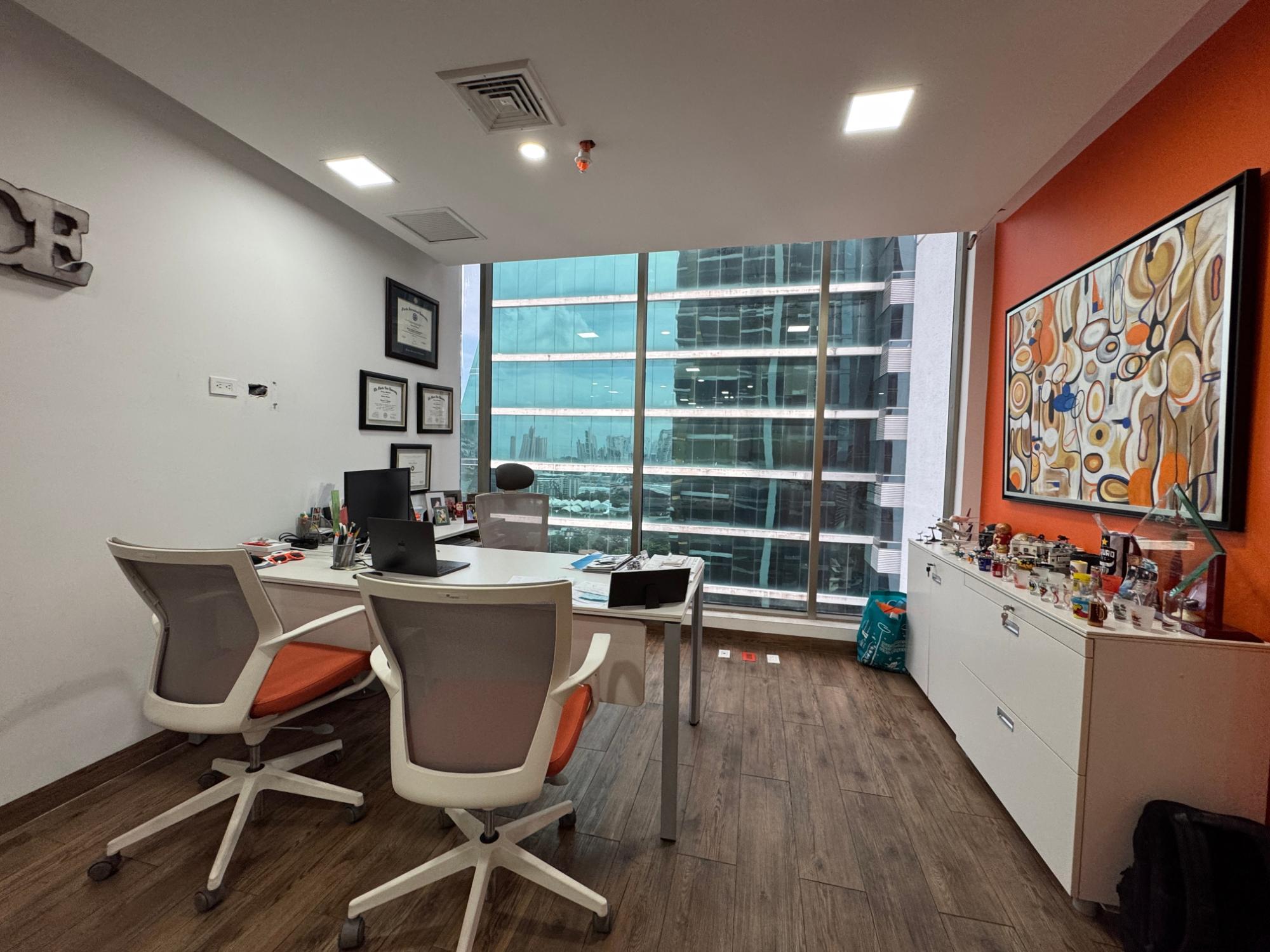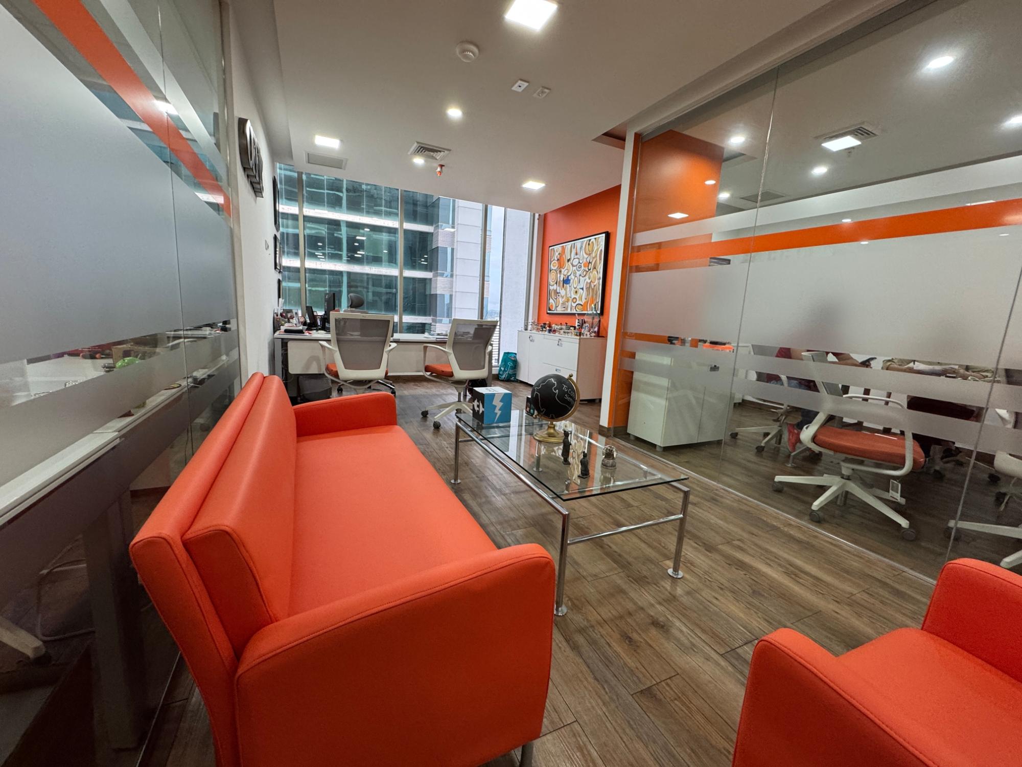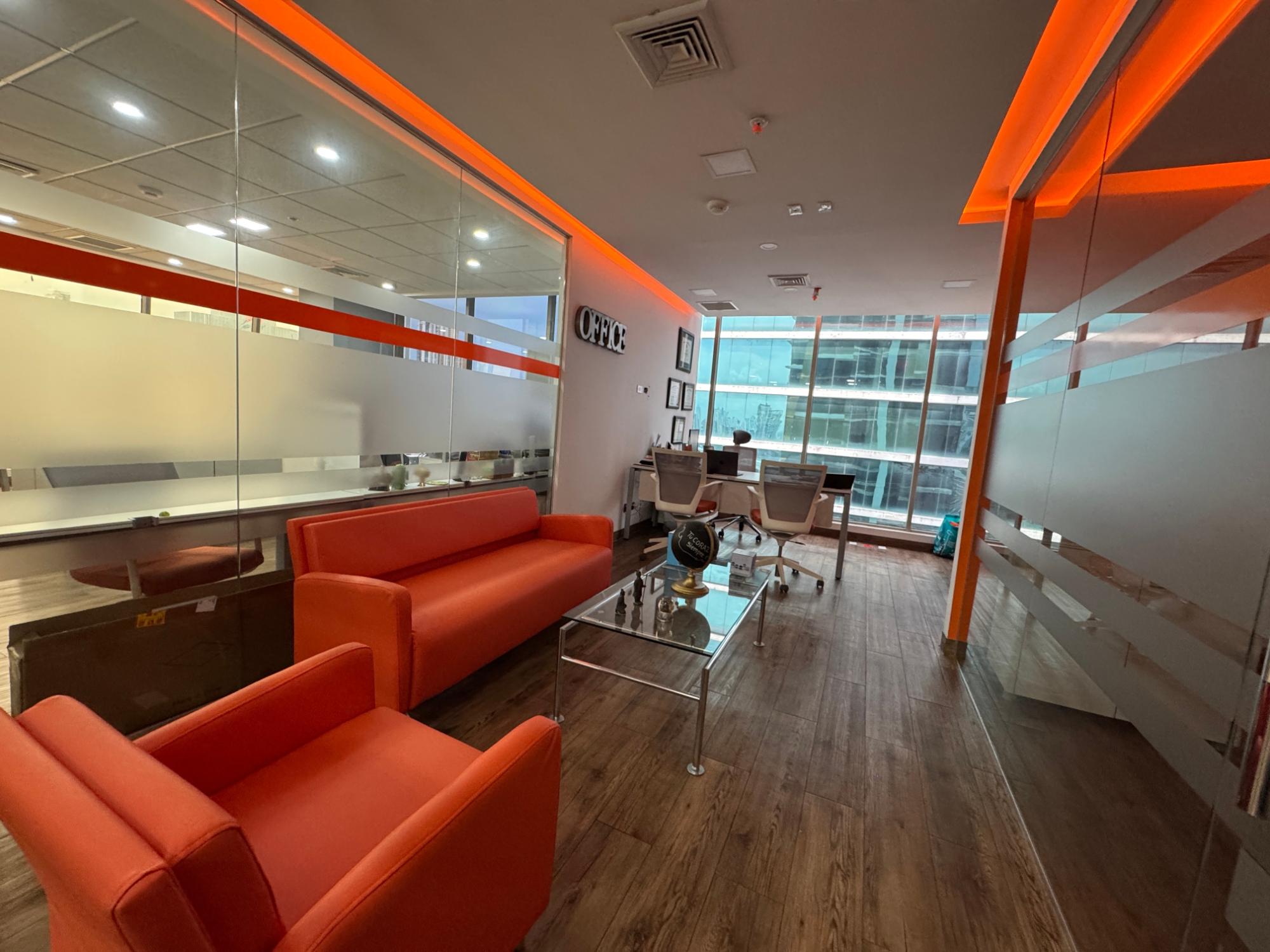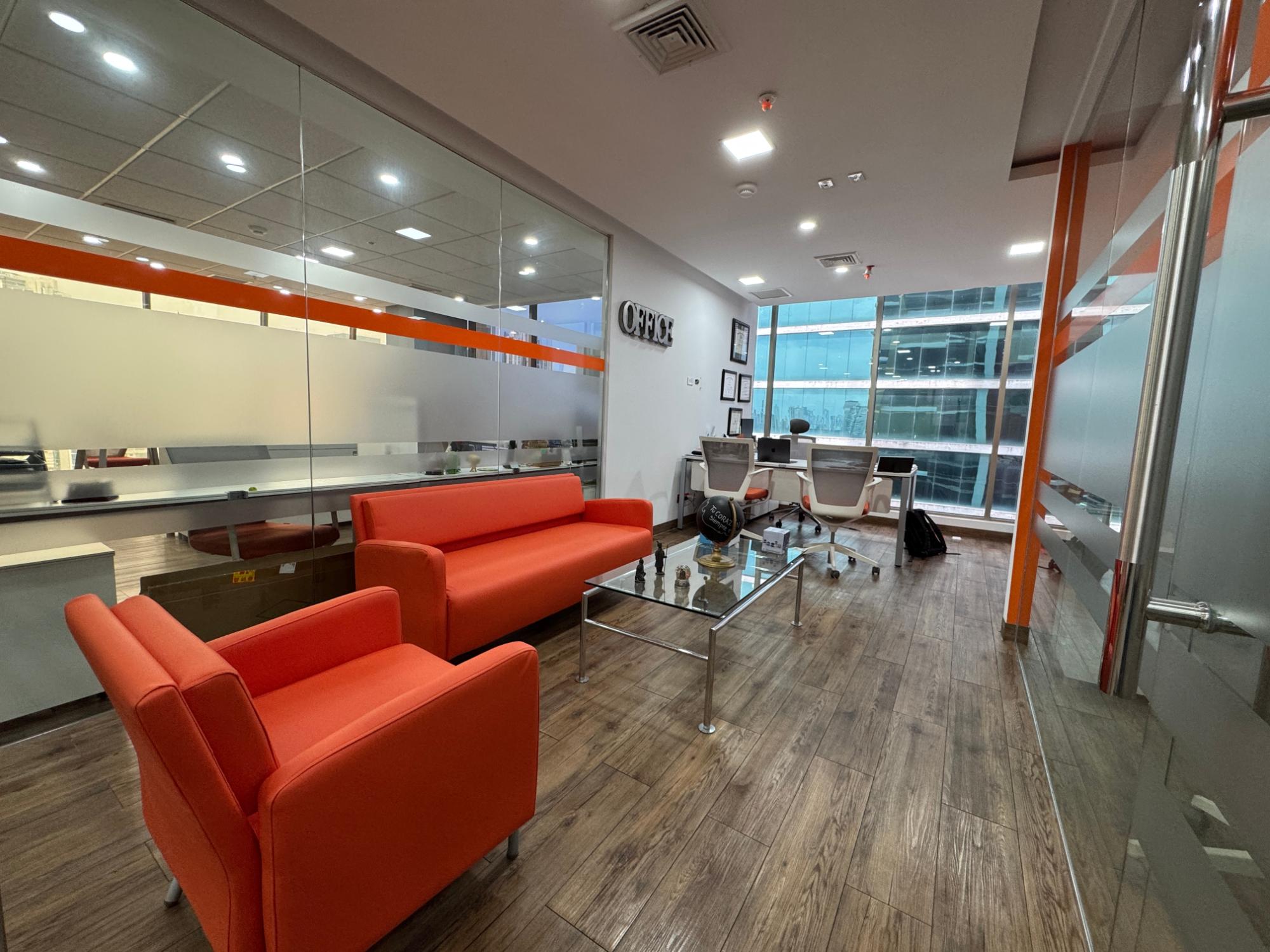 The office consists of a meeting room, manager's office, work area, bathroom and kitchenette.
