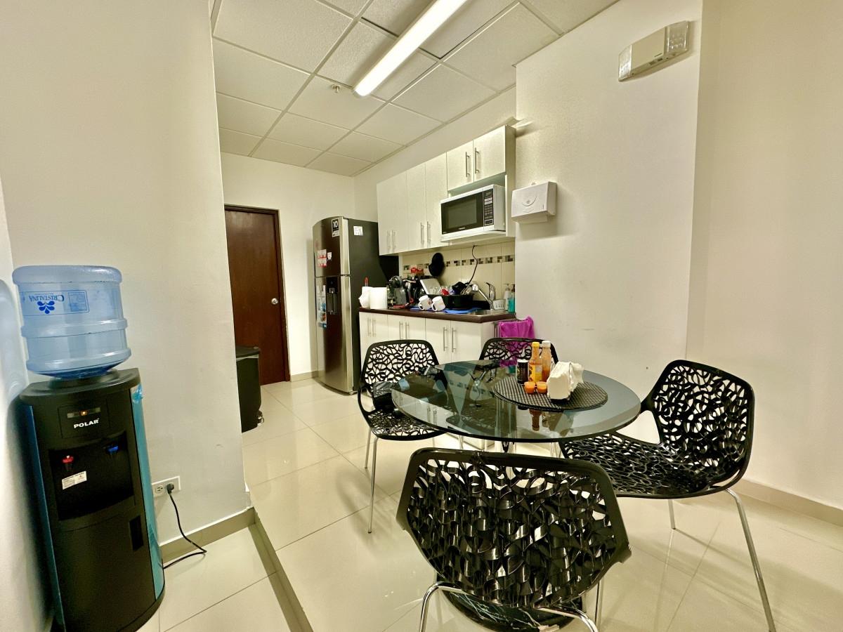 Discover this ready-to-move-in office in the prestigious Office One building, strategically located in Obarrio, near Calle 50. With a modern and functional design, this 173 m² office offers: 5 private parking spaces. 2 bathrooms for added convenience. Spacious 24.64 m² storage room for extra utility. Furnished spaces and multiple divisions for executive offices and workstations. The building features 24-hour security, a backup power generator, and visitor parking. Its prime location in the banking and commercial area is surrounded by restaurants, banks, and shopping centers. Perfect for companies seeking comfort and convenience in a premium space. Schedule your visit today and explore the potential of your next professional workspace!