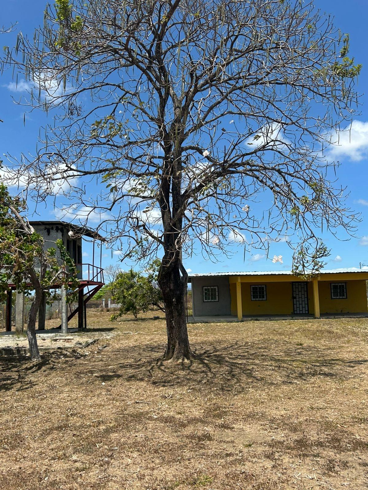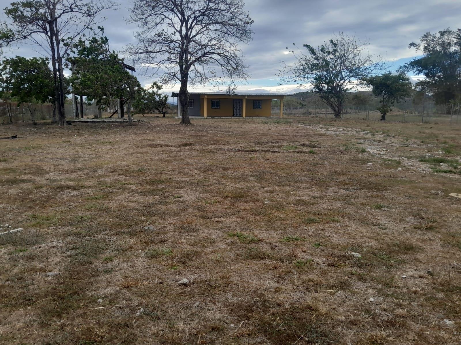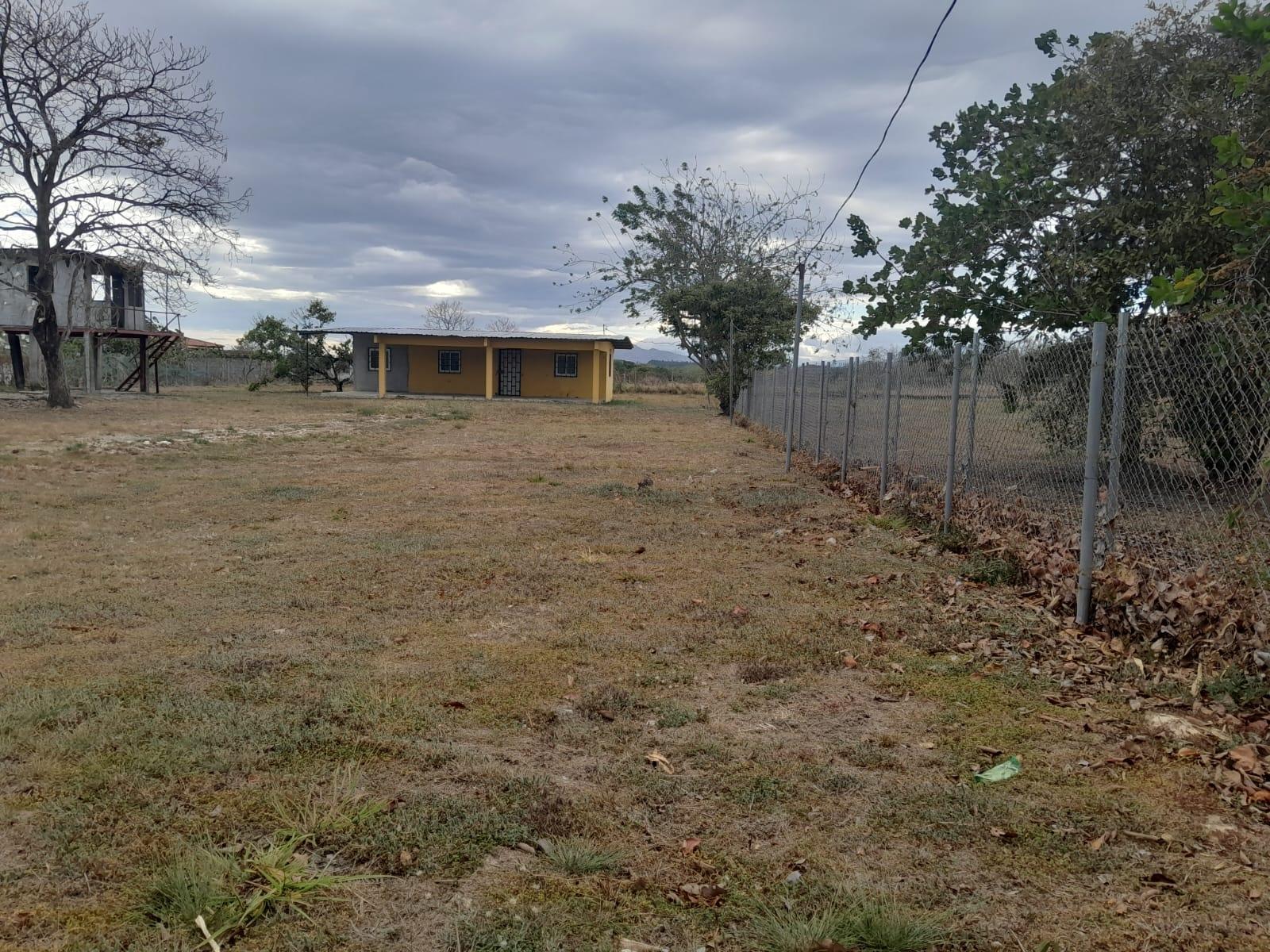 Spacious, completely flat, fenced lot with a 2-bedroom, 1-bathroom house. Conveniently located with easy access to main roads. Ideal for living surrounded by nature in a peaceful setting, just 10 minutes from shops, schools, banks, supermarkets, and more.