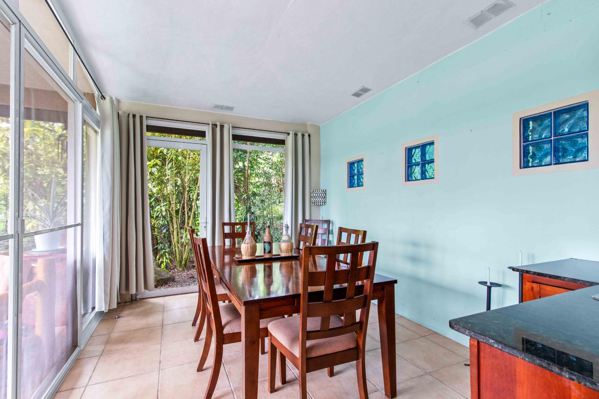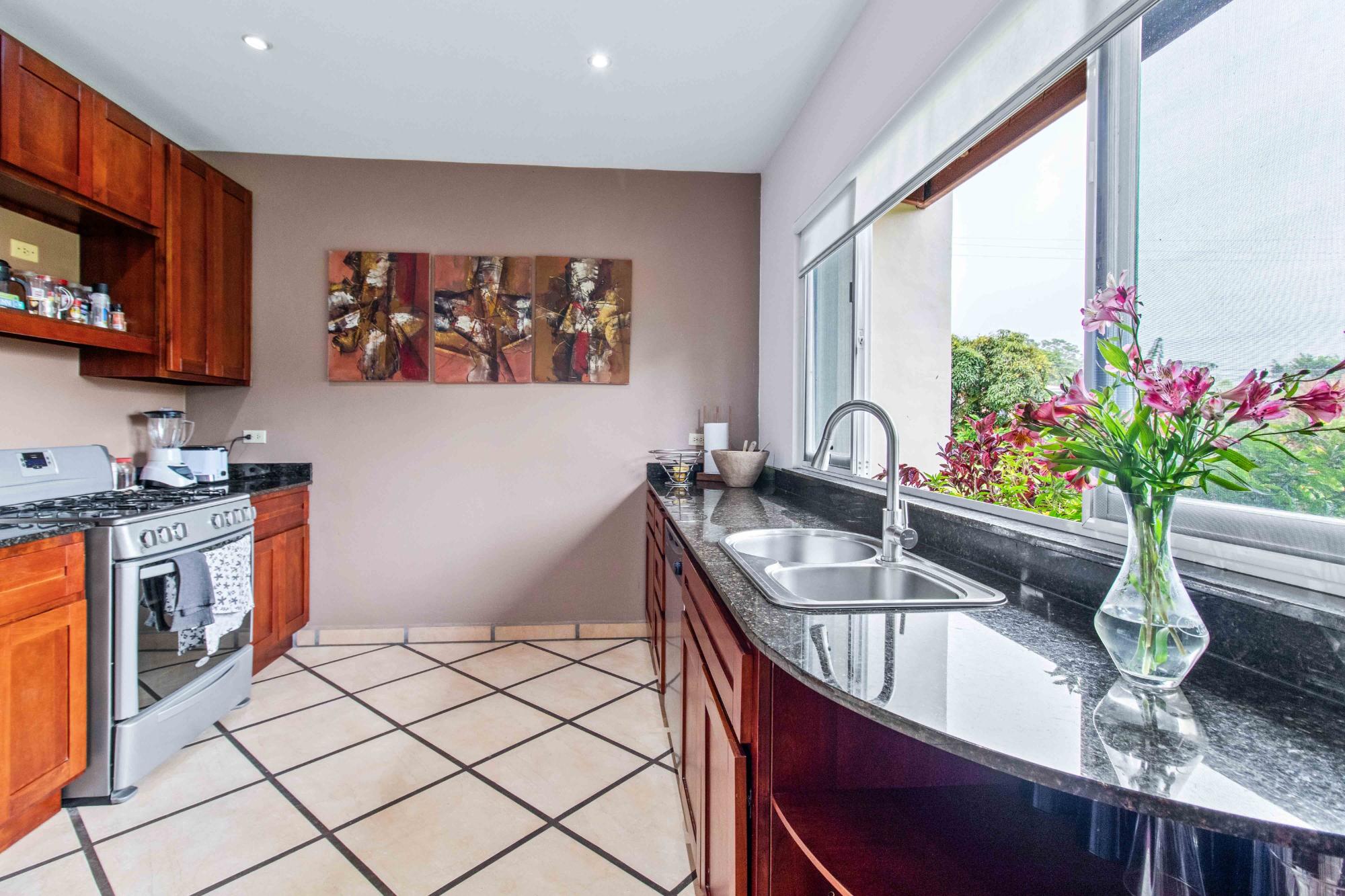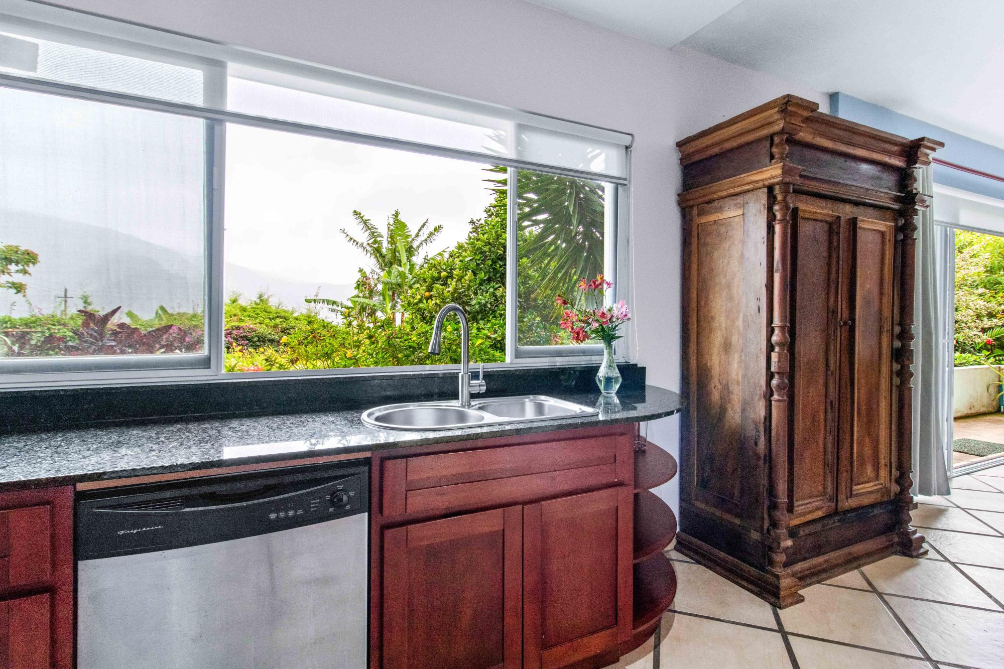 Discover Monte Verde, a hidden gem nestled in the lush greenery of Alto Lino, Boquete. This exclusive, private residence features just six condos, offering a tranquil retreat where comfort, privacy, and natural beauty blend seamlessly. Step into this ground-floor condo, where thoughtful design meets serene living. The spacious lounge leads to the main bedroom, complete with an en-suite bathroom and ample storage. The second bedroom also features an en-suite bathroom, offering generous cabinet space. Both bedrooms are equipped with 100% blackout blinds for restful sleep, while the living room boasts 95% UV-free pull-down blinds, complemented by curtains for complete darkness when needed. The comfortable sofa also doubles as a sofa bed, adding versatility to your living space. The kitchen, overlooking a lush garden, offers a peaceful backdrop for culinary adventures. From the kitchen window, enjoy stunning full double rainbows during the rainbow season, and let the soothing sounds of birdsong accompany your morning coffee on the patio. The separate dining room, with its cozy ambiance, comfortably hosts dinner parties for up to eight guests, featuring lovely views that transition into a warm and intimate setting after dark. For those who work from home, the dining area can easily be transformed into a functional office space, while the sofa bed makes hosting guests a breeze. The condo's covered terrace offers a private, quiet space perfect for barbecues, morning coffee, or simply unwinding with garden views. Enjoy sunrise and moonrise from the Jaramillo mountains through the front windows, with breathtaking full moons as a highlight.