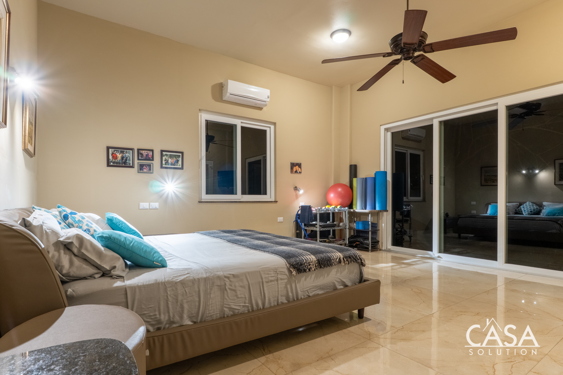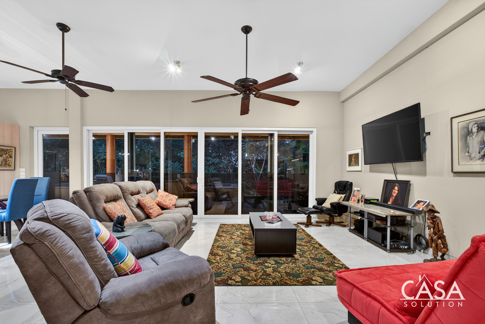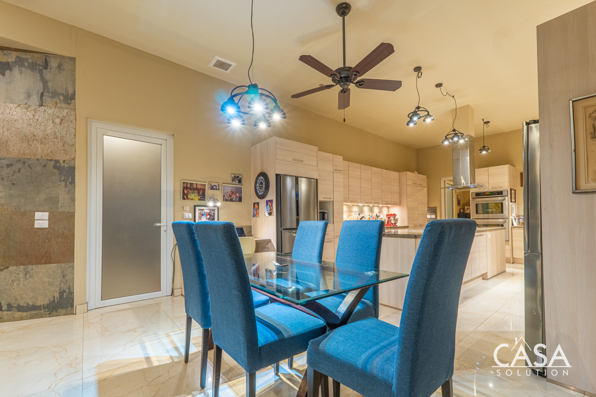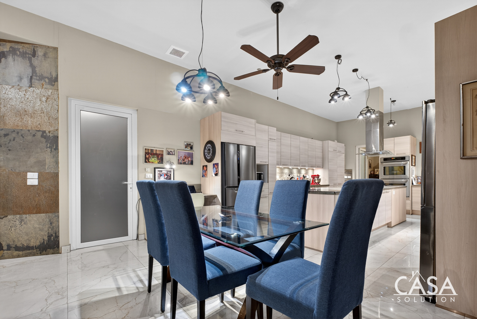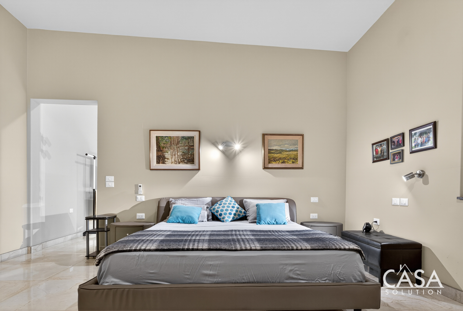 Inside, the home’s open layout emphasizes ease of movement and accessibility—it is wheelchair-friendly throughout. The interior finishes are refined yet practical, with marble-style floors and high ceilings that enhance airflow and light.