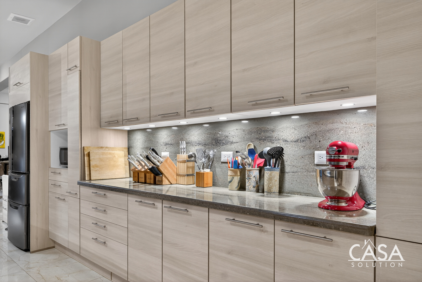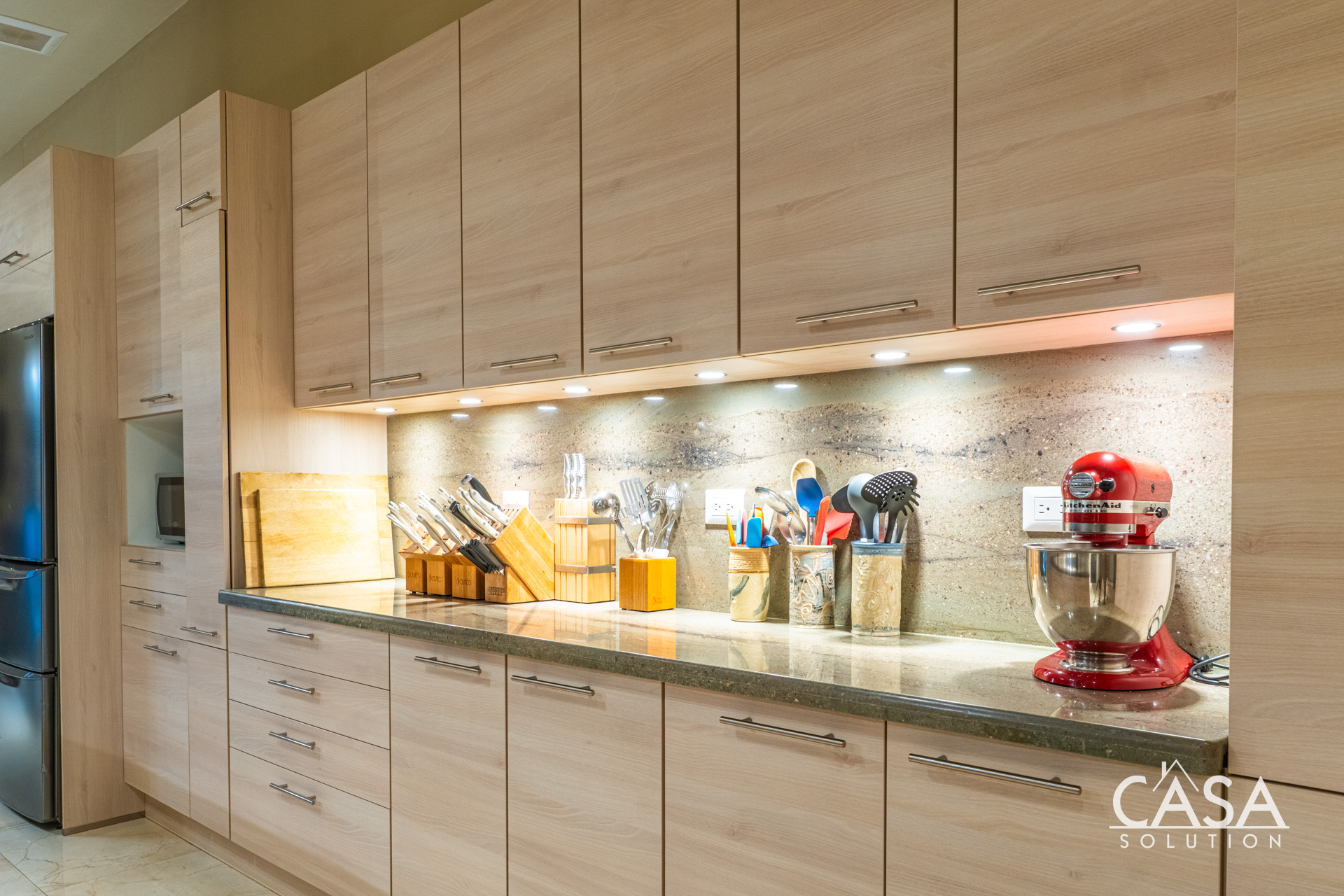 Thoughtfully placed outlets and task lighting throughout