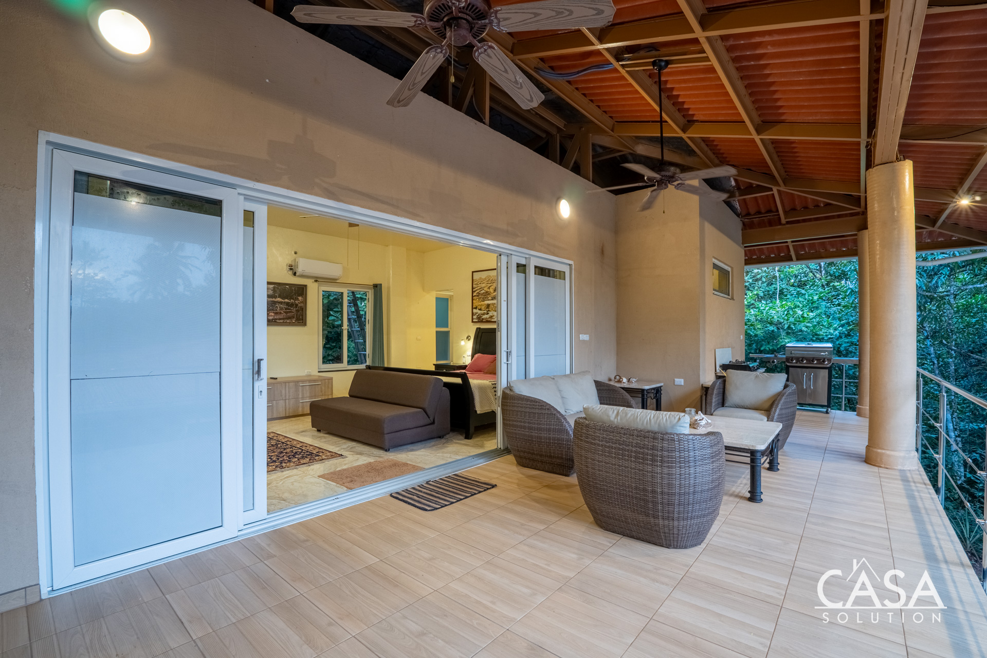 The property’s setting is what truly sets it apart. It functions as a small private wildlife sanctuary, where animals and birds live in harmony with the home. The owners have nurtured an environment of trust and non-interference, allowing daily close encounters with monkeys, iguanas, toucans, and many other species.