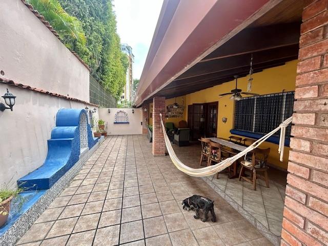 House on a quiet street near schools with 368.28 m2 of construction and 297.68 m2 of land with 4 bedrooms, 2.5 bathrooms, 2 parking spaces, maid's quarters and bathroom, storage room, covered terrace, brick BBQ, fountain, den, electric parking gate, 500-gallon water reserve tank, and appliances