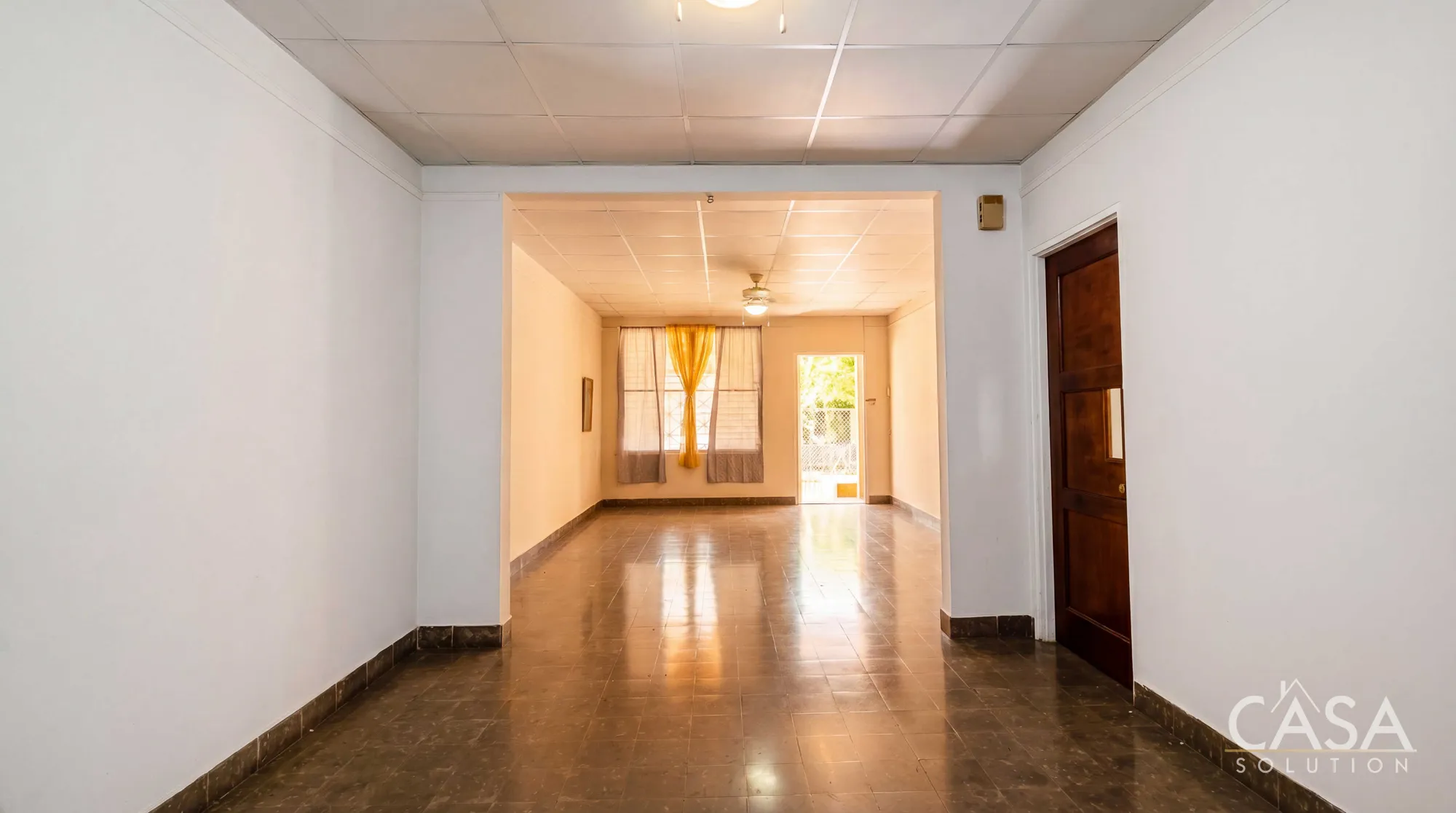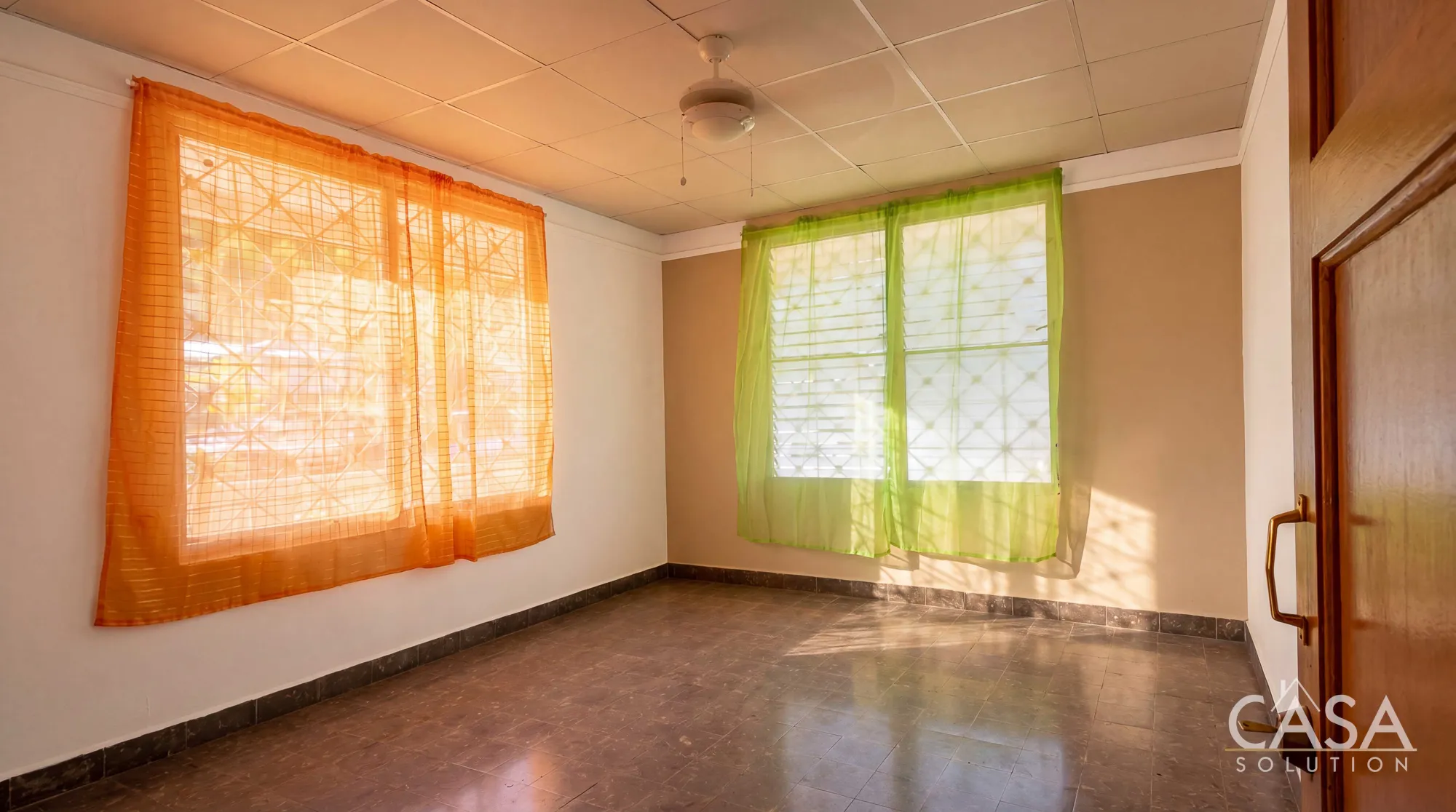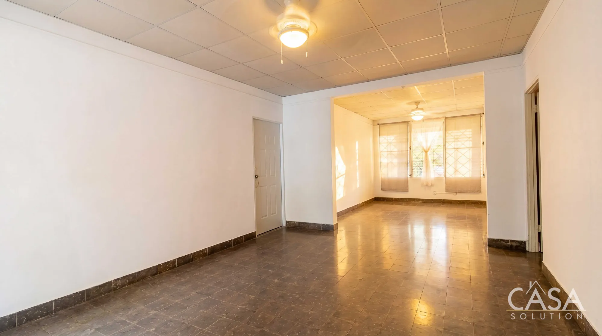 Inside, the home includes three bedrooms and two bathrooms arranged in a traditional residential layout that separates the private sleeping areas from the main living spaces. Multiple windows allow natural light and airflow to move through the interior, a characteristic common in homes built in this part of Panama City.