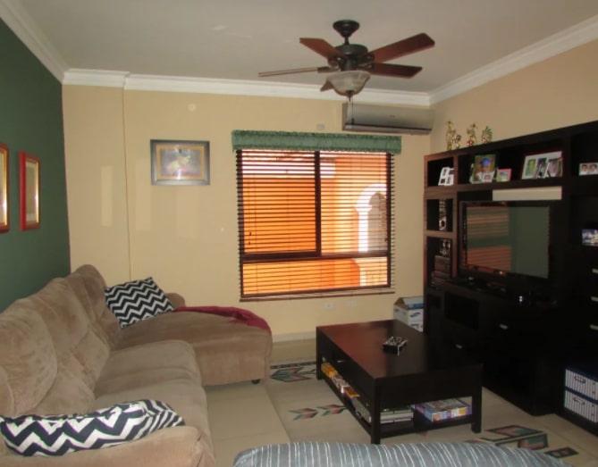 Tiene estacionamiento para 4 autos (2 bajo techo y 2 al aire libre), terraza, den, sala – comedor, estudio, lavandería y todo a un bajo costo de mantenimiento de $85.00 dólares.