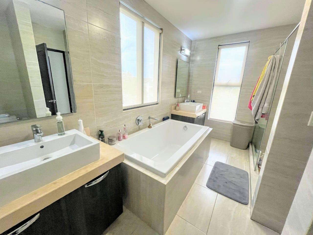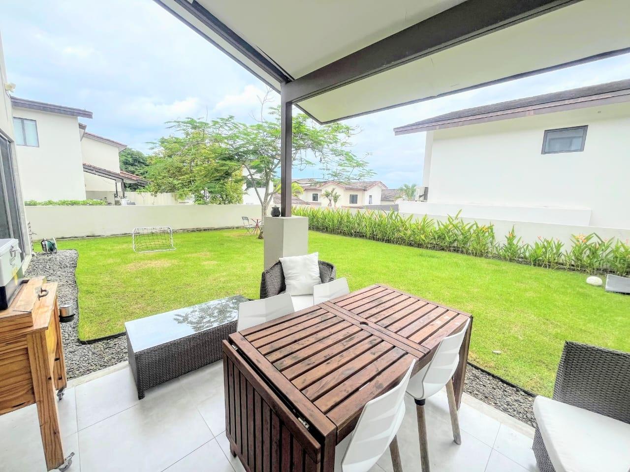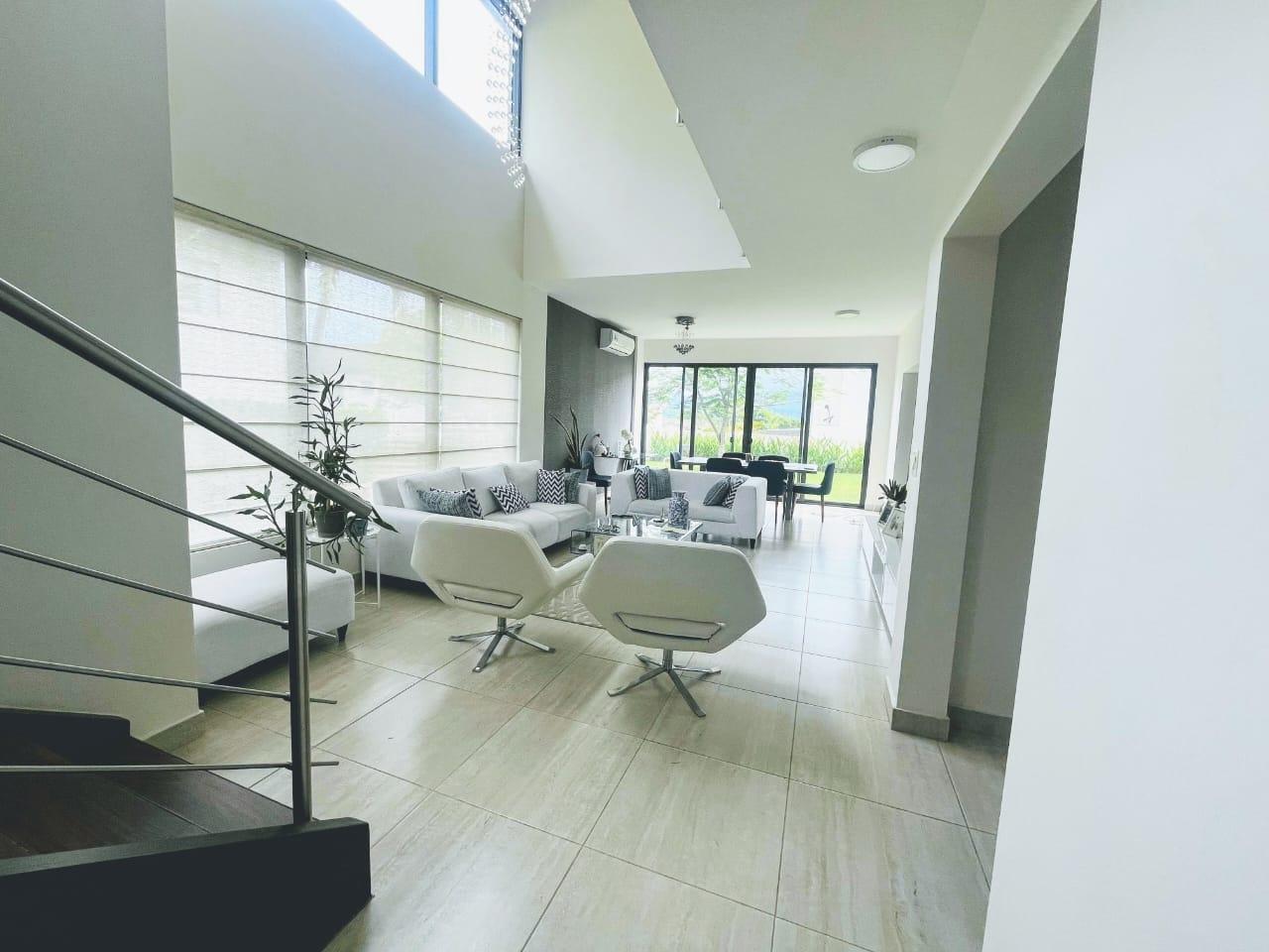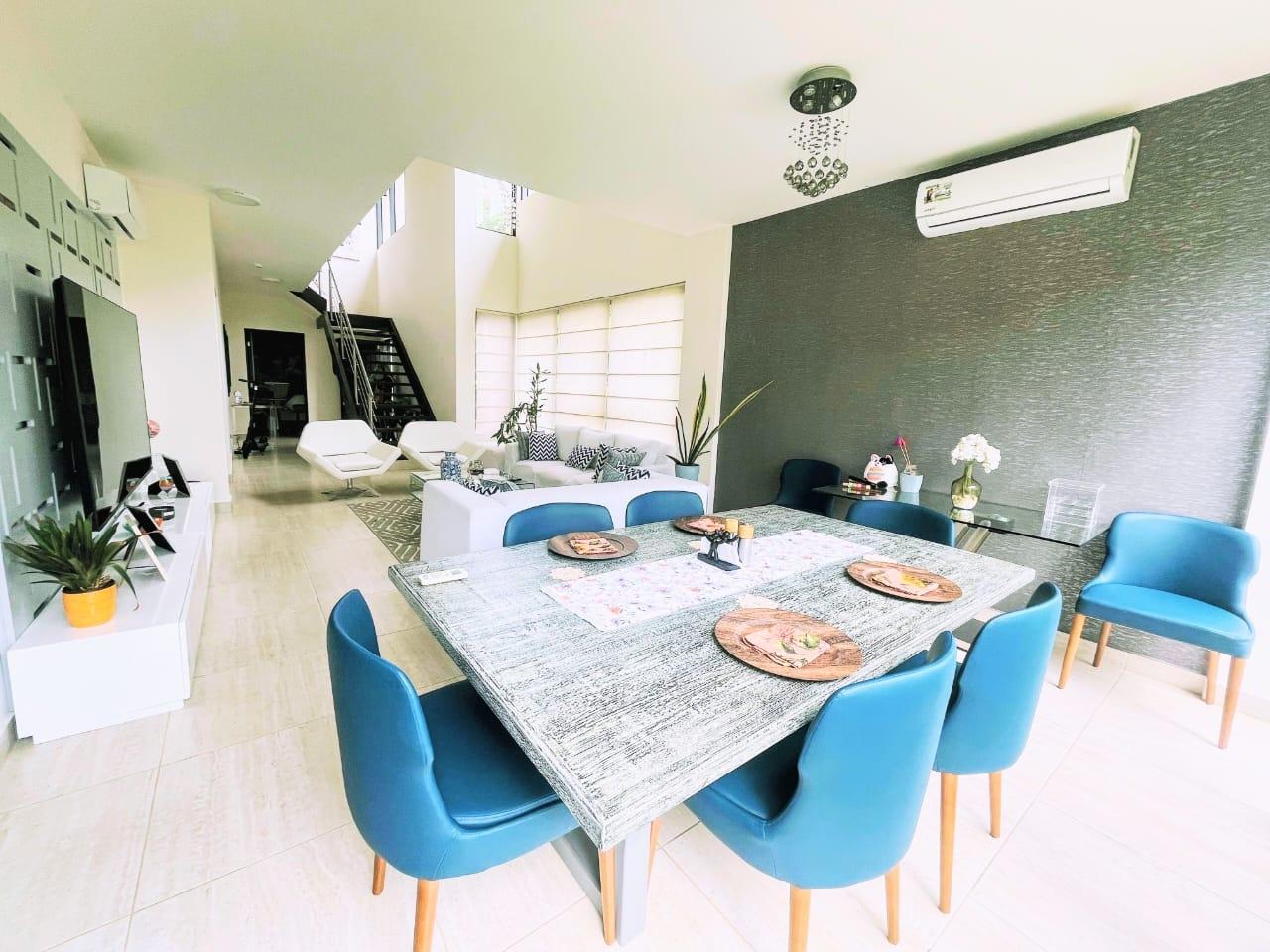 PH Nativa de Panamá Pacífico is the epitome of elegance and comfort. With a construction of 304 m2 and a lot of 402 m2, this two-level property offers ample spaces to live and enjoy. The house has: – 3 spacious and bright bedrooms – 3.5 bathrooms, including a service bathroom – 2 parking spaces – High-quality porcelain floors – 2 balconies with stunning views – Kitchen equipped with appliances – Dining room and family room to enjoy with family and friends – Study to work or study in tranquility – Service bedroom and bathroom for added comfort – 6 split air conditioners to maintain a cool and pleasant environment at all times. The property was built in 2016, guaranteeing the quality and modernity of its finishes. Additionally, the maintenance fee of $400 includes administration, maintenance of common areas and security, allowing you to enjoy community life without worries. Nativa, Panama Pacifico, is a prime area that offers everything you need to live a life of luxury. With its green spaces, parks, and high-quality services, this neighborhood is ideal for those seeking a peaceful and secure life. Don't miss the opportunity to live in one of the most exclusive areas of Panama. This house is perfect for you! Price: $574,500