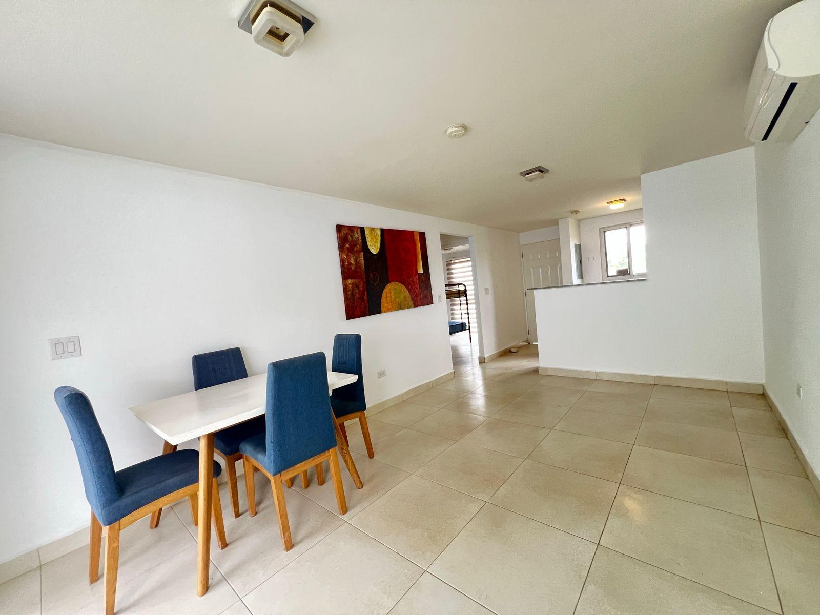 Your next home awaits you at Playa Dorada – Villa Marina II, Vista Alegre, Arraiján. Located in one of the most sought-after residential communities in western Panama, this charming property offers a functional and comfortable design. It features two bedrooms, an open-concept kitchen equipped with a refrigerator, built-in stove, and custom cabinetry, as well as a bright, integrated living and dining area. The home has two air conditioning units, one in the living room and one in the master bedroom, ensuring comfort in every room. It also includes a covered laundry area, a covered terrace ideal for entertaining, with a side area designated for drying clothes, and a patio perfect for enjoying the outdoors. Parking includes one space for your vehicle and an additional visitor parking space at the end of the street. Playa Dorada is a residential project renowned for its safe, peaceful, and family-friendly environment, with 24/7 security, playgrounds, sports courts, recreational areas with a swimming pool, a lake, and ample green spaces that promote an excellent quality of life. Its strategic location offers proximity to shopping centers, schools and essential services, making it an excellent option for both living and investing.