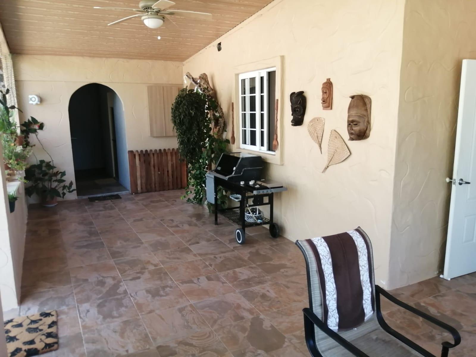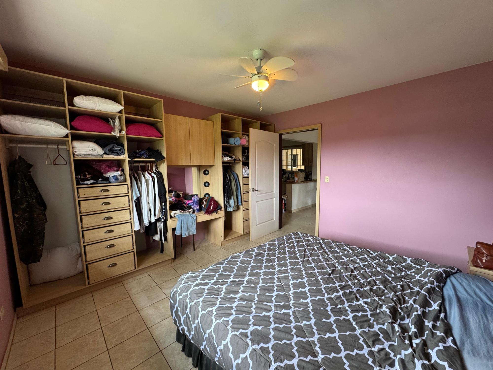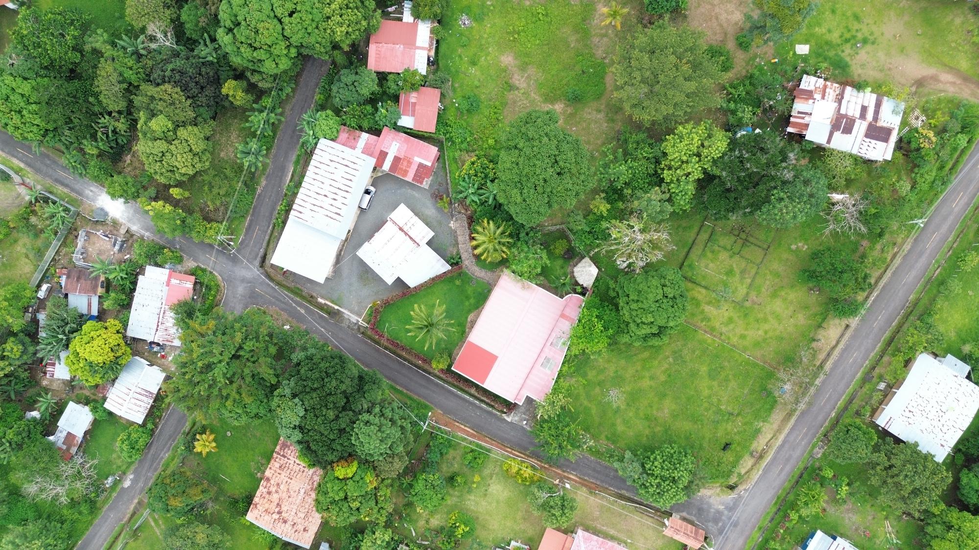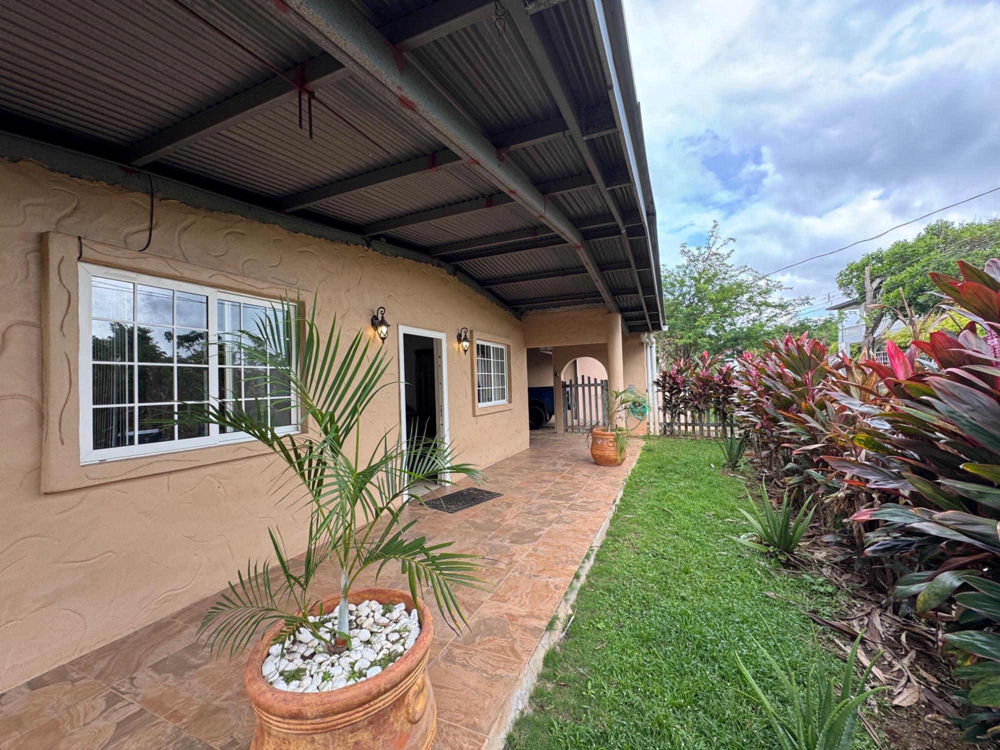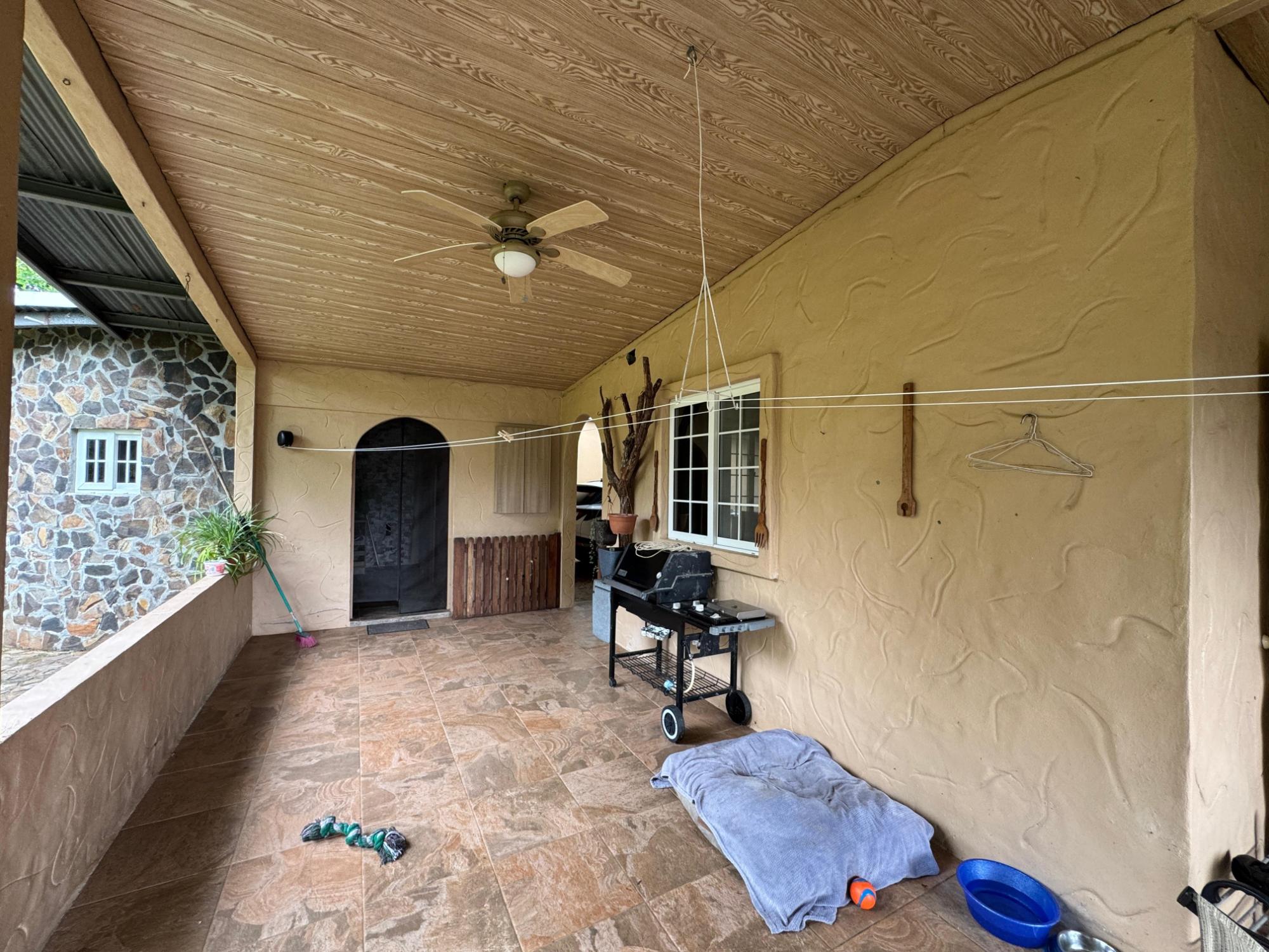 This house for sale in Sora, Chame, Panama sits about 150 meters from the Sora town park, 20 minutes from the Inter-American Highway, and 30 minutes from Coronado. The location provides quick access to supermarkets, restaurants, and medical services. The property enjoys a quiet residential atmosphere with mountain views and cooler temperatures common in this part of Panama. Property Overview The property covers 612.22 square meters of land with 307.71 square meters of construction. The layout includes the main house, a guest room, terrace, laundry area, two-car carport, and a pump room. The flat terrain allows easy access and low maintenance. The garden includes lemon and banana trees, creating a practical and pleasant outdoor space. Main House The main structure includes a living and dining room, kitchen, one bedroom, an office, and one full bathroom. The kitchen features granite countertops, a double stainless-steel sink, and modular cabinetry. PVC sliding windows bring in natural light and ventilation. Tiled floors run throughout the home, and gypsum ceilings give a clean and consistent finish. The living area connects easily to the dining and kitchen spaces, designed for comfortable everyday use. The office includes built-in furniture and large windows that open to mountain views, making it suitable for remote work or a personal project space. Guest Quarters and Additional Areas The guest room stands separate from the main house and includes a shower area with full-height wall tiles. It maintains the same solid construction quality, with PVC windows, tiled floors, and decorative wall finishes.
