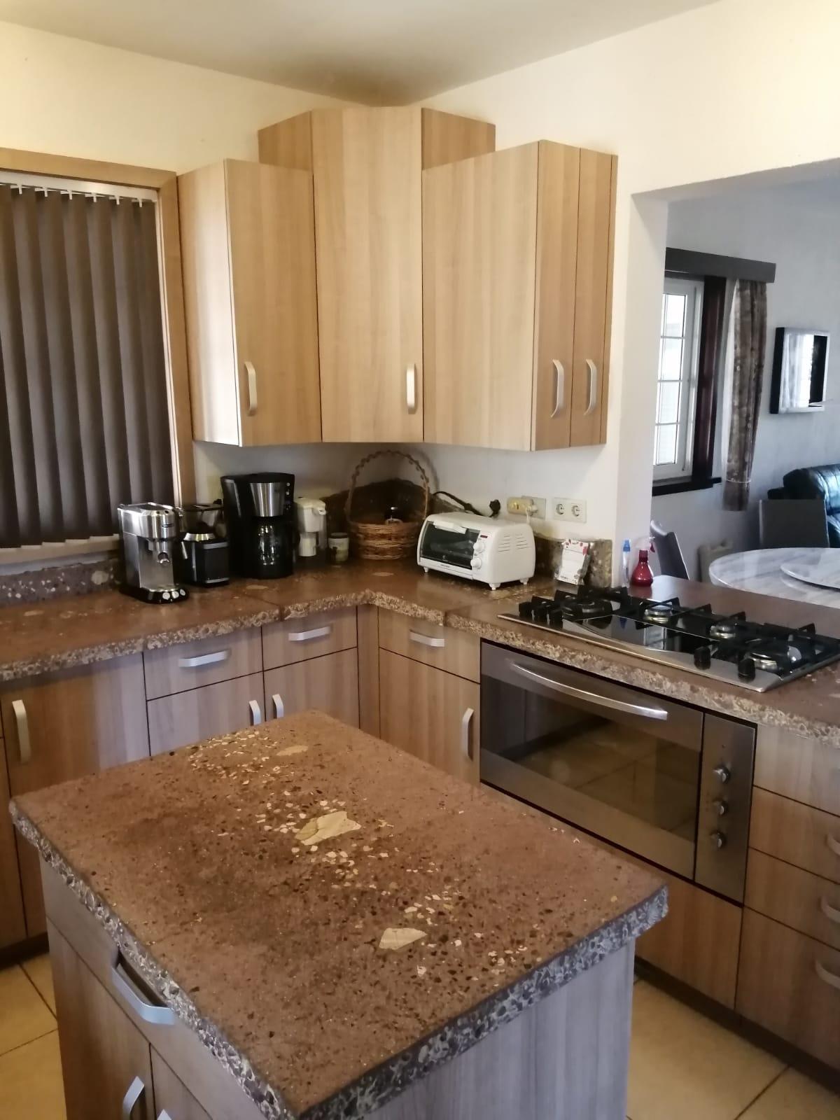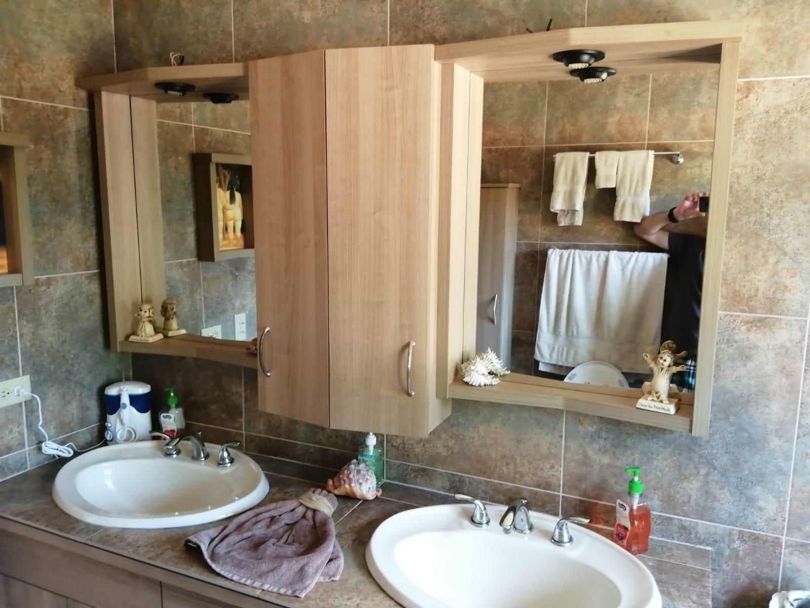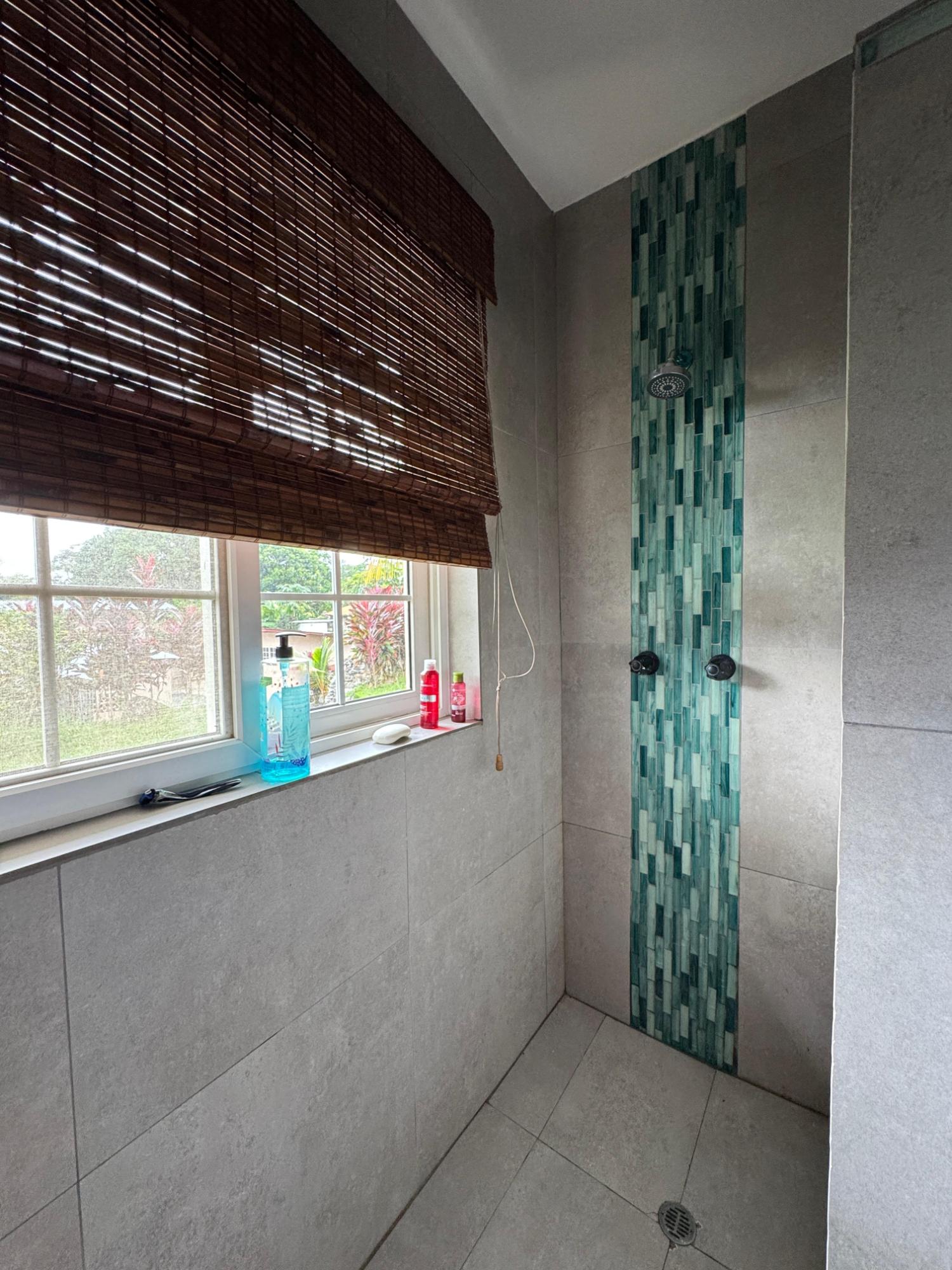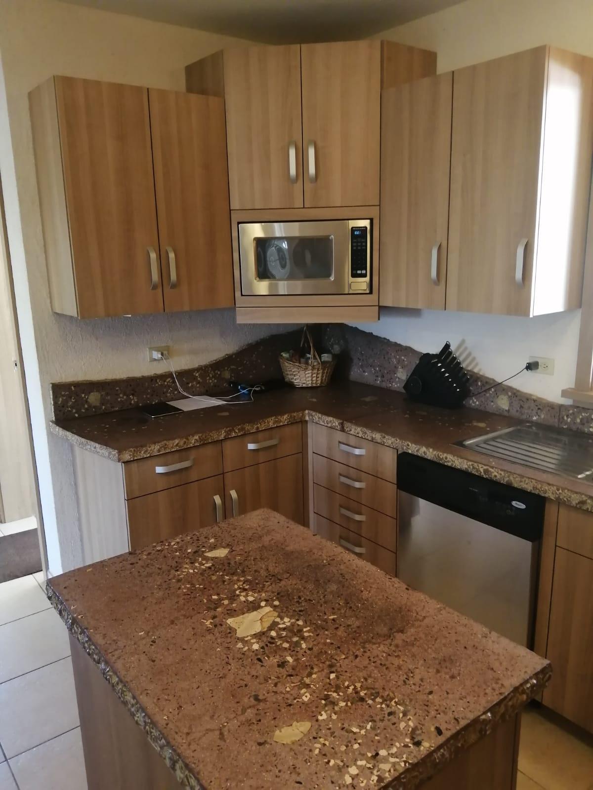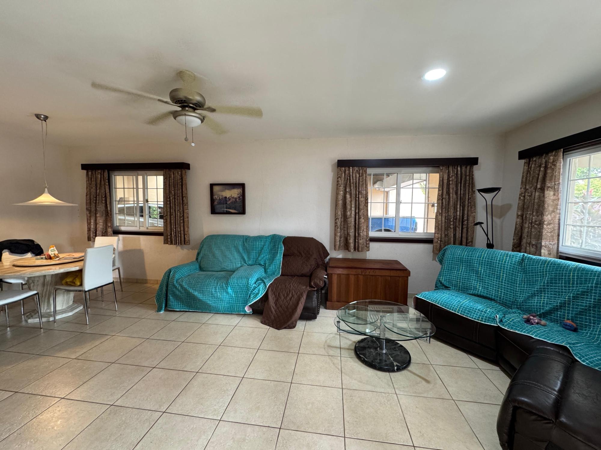 This house for sale in Sora, Chame, Panama sits about 150 meters from the Sora town park, 20 minutes from the Inter-American Highway, and 30 minutes from Coronado. The location provides quick access to supermarkets, restaurants, and medical services. The property enjoys a quiet residential atmosphere with mountain views and cooler temperatures common in this part of Panama. Property Overview The property covers 612.22 square meters of land with 307.71 square meters of construction. The layout includes the main house, a guest room, terrace, laundry area, two-car carport, and a pump room. The flat terrain allows easy access and low maintenance. The garden includes lemon and banana trees, creating a practical and pleasant outdoor space. Main House The main structure includes a living and dining room, kitchen, one bedroom, an office, and one full bathroom. The kitchen features granite countertops, a double stainless-steel sink, and modular cabinetry. PVC sliding windows bring in natural light and ventilation. Tiled floors run throughout the home, and gypsum ceilings give a clean and consistent finish. The living area connects easily to the dining and kitchen spaces, designed for comfortable everyday use. The office includes built-in furniture and large windows that open to mountain views, making it suitable for remote work or a personal project space. Guest Quarters and Additional Areas The guest room stands separate from the main house and includes a shower area with full-height wall tiles. It maintains the same solid construction quality, with PVC windows, tiled floors, and decorative wall finishes.