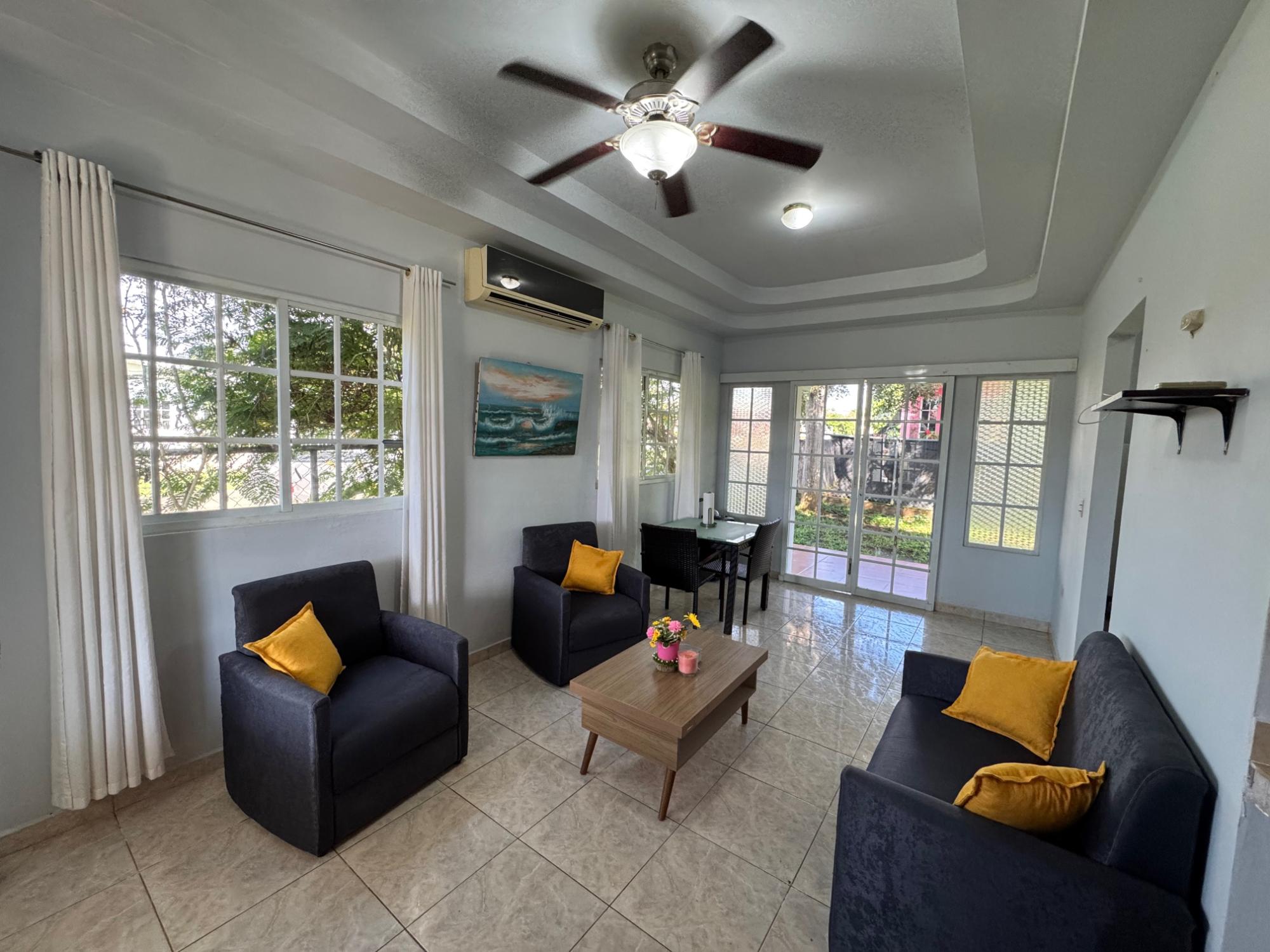 House for Sale in Residencial El Boulevard – Las Tablas, Los Santos Province. Discover your next home in Residencial El Boulevard, one of the quietest and most pleasant residential areas in Las Tablas. This neighborhood is known for its family atmosphere, safe streets, easy access, and a strategic location just 1.5 km from the city center, allowing you to enjoy the convenience of being close to supermarkets, schools, pharmacies, and health centers, without sacrificing the peace and quiet offered by a residential area. The property sits on a 350 m² corner lot, giving you greater privacy, better natural ventilation, and additional space for gardens, expansions, or simply enjoying the outdoors. The house has a built area of 108 m², distributed in a practical and functional way for the comfort of the entire family. House description: 3 comfortable bedrooms, ideal for a family or for those who want additional space for an office or guests. 2 full bathrooms, well ventilated and well lit. An open-plan living and dining room with direct access to the backyard through sliding glass doors allows for natural light. An open kitchen with a breakfast bar connects to the living room, ideal for sharing with family or guests. A convenient and secure indoor laundry area provides space for one vehicle. Covered parking is available for a rear terrace and garden, perfect for relaxing, planting, or creating your own green space. The interior design is highlighted by a ceiling with moldings at different levels, giving it a modern and elegant touch. Ceramic floors are featured throughout the home.