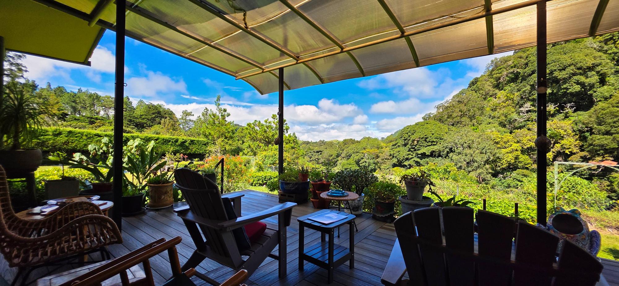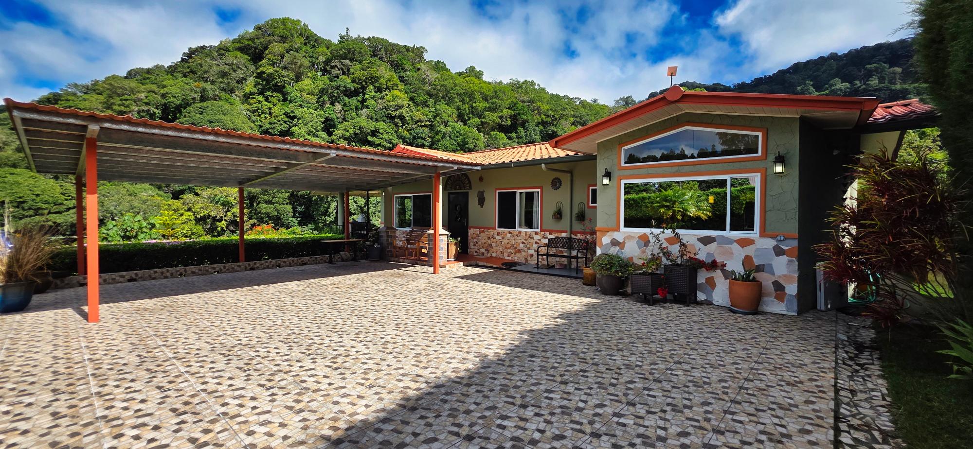 Discover this spectacular mountain residence located in Paso Ancho, Tierras Altas, one of the most coveted areas of Chiriquí. Situated at 1,524 meters above sea level, this property offers a year-round cool climate, fresh air, tranquility, and security in an exclusive gated community bordered by the Chiriqui Viejo River. The house has been completely remodeled to North American standards over the last 6 years, combining modern design with the natural charm of the region. Key Features: Land: 0.61 acres (2,474 m²) with tropical gardens and fruit trees. Total Construction: 316 m² (approximately 3,400 ft²). Enclosed (living) area: 180 m² (approximately 1,938 ft²). Bedrooms: 3 | Bathrooms: 4. Covered terrace with stunning views of the forest, river, and mountains. Featured Amenities: Independent apartment. High-speed internet. 2 backup power stations. Access for people with reduced mobility. Indoor Jacuzzi for 6 people. Outdoor toilet. 10' x 12' storage/wine cellar. Separate laundry room. Location Benefits: Security: Gated community with guaranteed privacy and tranquility. Proximity: Just minutes from downtown Volcán, with supermarkets, banks, restaurants, clinics, pharmacies, and more. Living Nature: Hummingbirds, tanagers, and tropical flora in a year-round spring-like climate. Lifestyle: Perfect for retirement, second home, or family living in a mountain setting with all modern amenities.