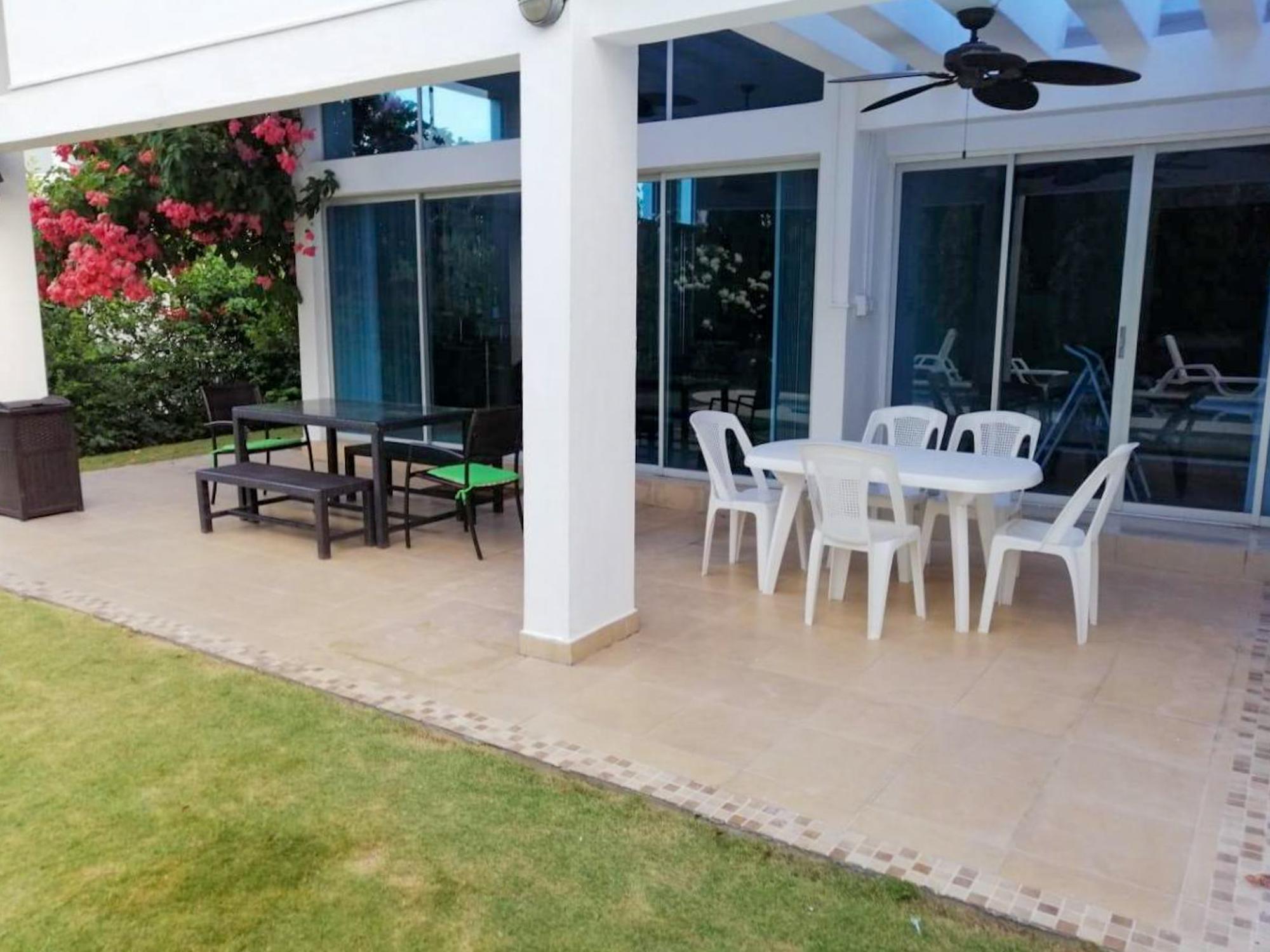 House in Playa Blanca Resort. Hotel resort with direct ocean access, gated community with security, and restaurants. Close to Mareas Mall, Buenaventura, Riu, Nikki Beach, Decameron, and Bijao. Exclusive 4-bedroom villa with 4 bathrooms, walk-in closets, and a tub. Spacious foyer, living, and dining areas. Fully furnished and equipped, open-plan American-style kitchen. Backyard with private pool, terrace, gazebo with bar and BBQ area, full bathroom, and outdoor showers. Ideal for families who want to enjoy the beautiful summer. Playa Blanca is located just west of Playa Farallón on Panama's central Pacific coast. This beautiful beach with soft, delicate sand is very pleasant and borders a fairly calm section of the ocean. Resort Amenities: Largest saltwater pool in Central America. Children's playground. BBQ area. Access to sports courts (soccer, basketball, tennis). Beach access. Asking price: $525,000. Rental price: $1,950.