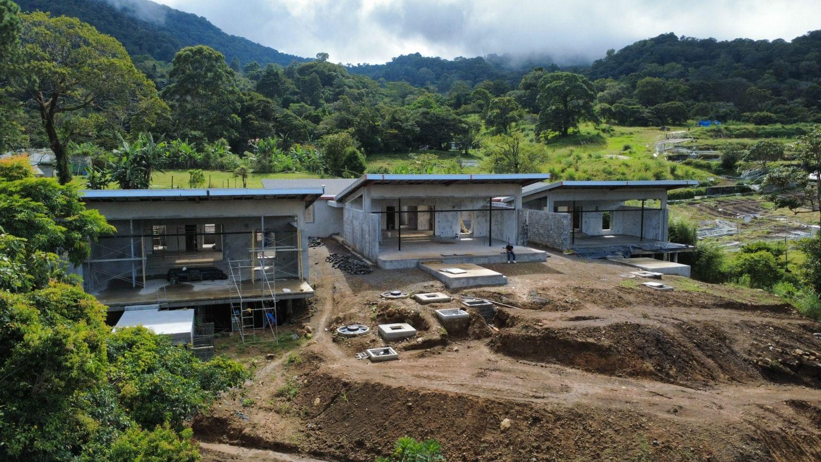 Located in the cool highlands of Jaramillo, just 5 minutes(2.8 km) by car from Boquete’s central park and close to restaurants, hotels, and the Mae Lewis Hospital emergency center. It’s also a 45-minute scenic walk to town with mountain views. On a 5,238 m2 private lot, the property features three contemporary homes designed for comfort, space, and panoramic views of Volcán Barú. Ideal for families wanting independent living within proximity or for investors seeking a retreat or rental project. Homes can be sold individually starting at $750,000 or together as a full compound; contact the agent for details. Highlights -Three modern homes, each approx. 280 m2 -3 bedrooms and 3 bathrooms per home -Private garage and entrance -Open-concept layout with seamless indoor–outdoor flow -Entry hallway dividing bedrooms from living areas -Large glass terrace and deck with Volcán Barú views -High ceilings and abundant natural light -Construction in progress; completion expected mid-2026 -Renderings and on-site updates available Designed by architect Carlos Raúl Ávila (TER.CIO) and built by architect Rene Bacil (Rene Bacil & Asociados), both known for innovative, high-quality work. The homes include premium finishes, excellent craftsmanship, and designs that maximize light, space, and the natural surroundings. Floor-to-ceiling windows frame iconic Volcán Barú views, and expansive outdoor terraces provide ideal areas for entertaining or enjoying Boquete’s year-round spring climate. A rare opportunity to secure a multi-home estate in one of Boquete’s most desirable areas, just minutes from cafés, restaurants, and amenities.
